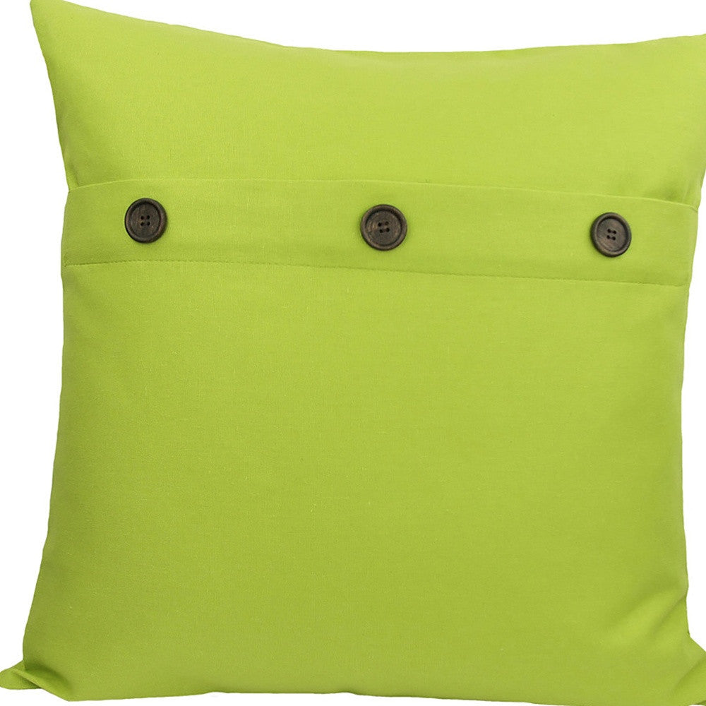 20" X 20" Green Linen Blend Zippered Pillow With Buttons
