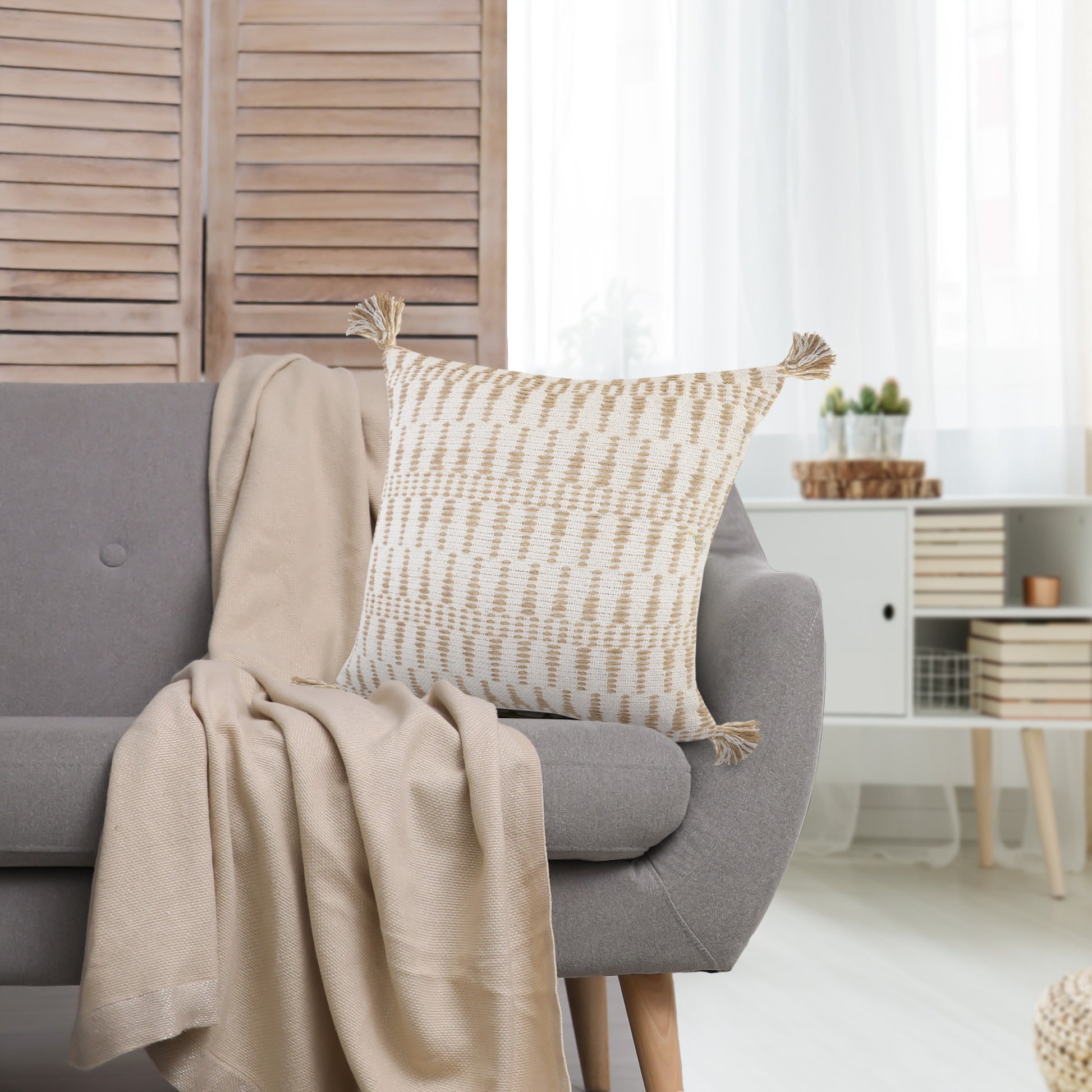 The 20" x 20" ivory and tan 100% cotton geometric zippered pillow is the perfect decorative accessory for your home. Soft and textural ivory and tan 100% cotton has been used to make this pillow look and feel like a real treasure. Decorative throw pillows not only add color and dimension to your space but can be comfy and supportive when you are lounging and cuddling as well. Decorative pillows are a great way to change up the look and feel of your space easily and quickly. 4" H x 20" W x 20" D