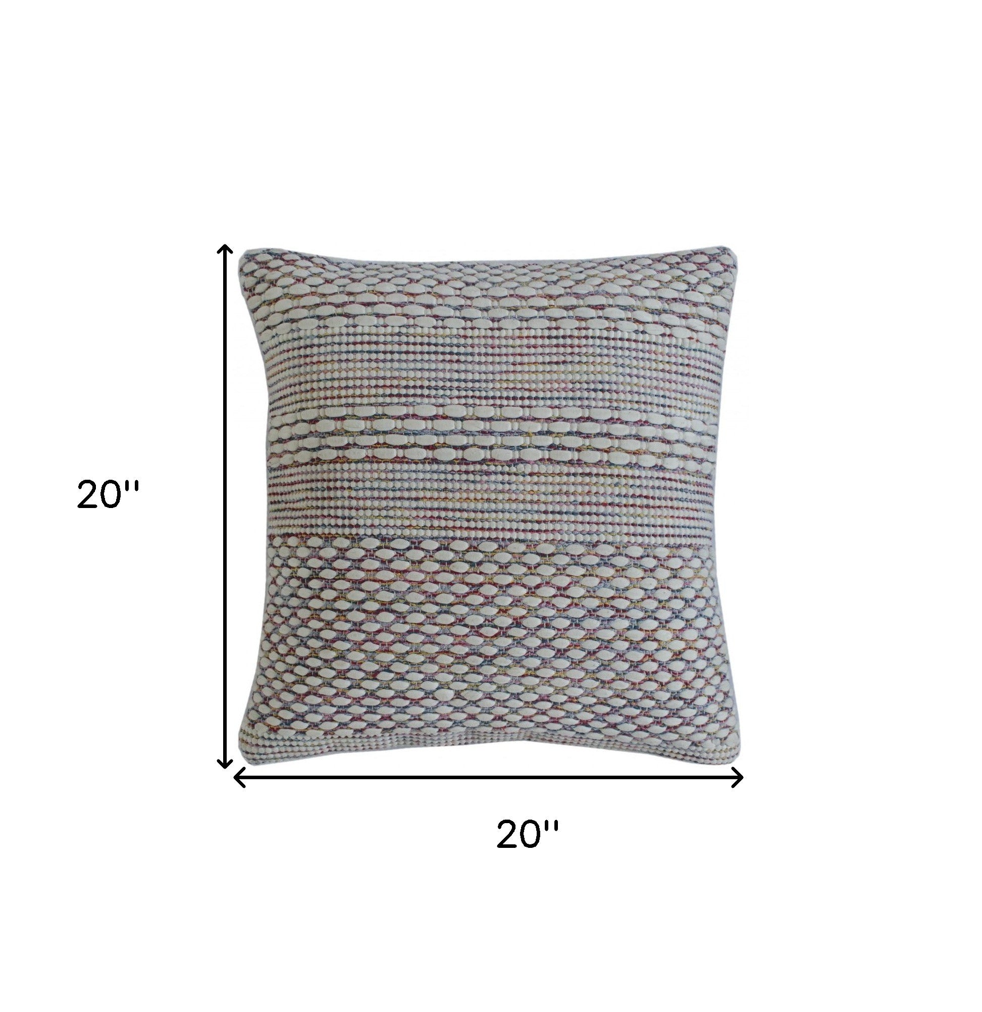 20" X 20" Ivory Red Green Blue Yellow And Orange 100% Cotton Geometric Zippered Pillow