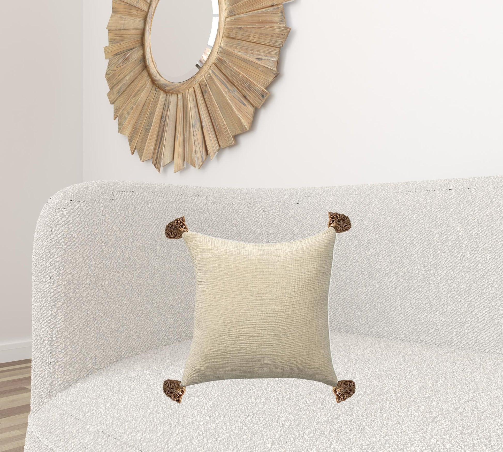 20" X 20" Light Beige And Dark Beige 100% Cotton Zippered Pillow