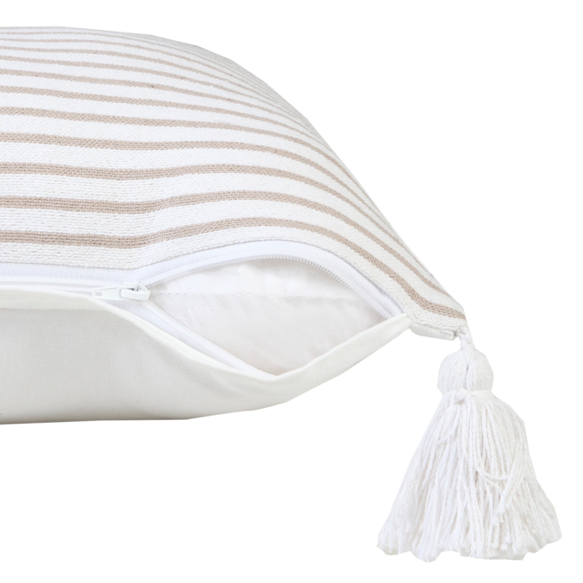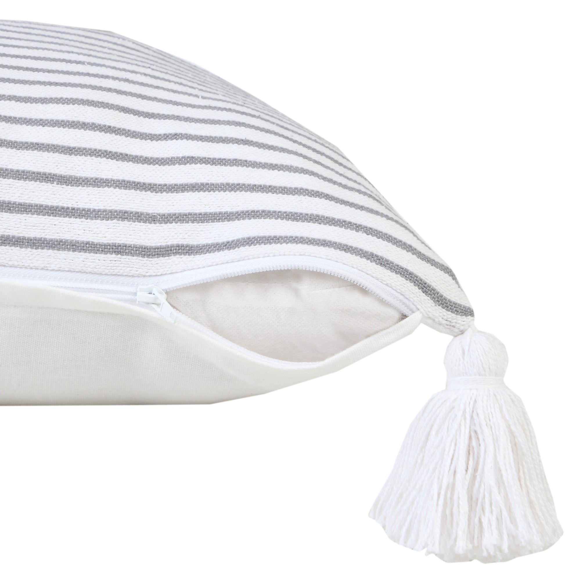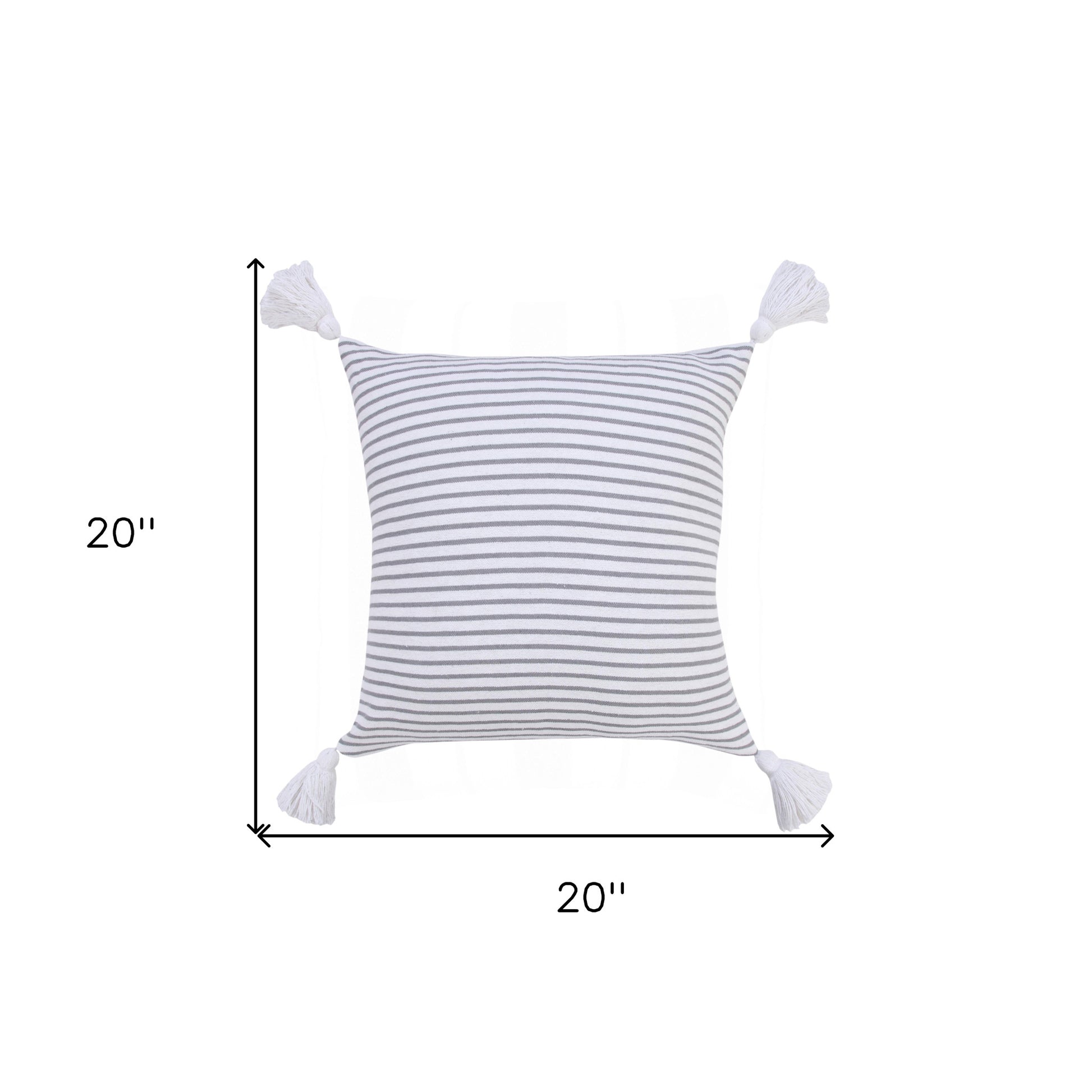 20" X 20" Light Gray And White 100% Cotton Striped Zippered Pillow