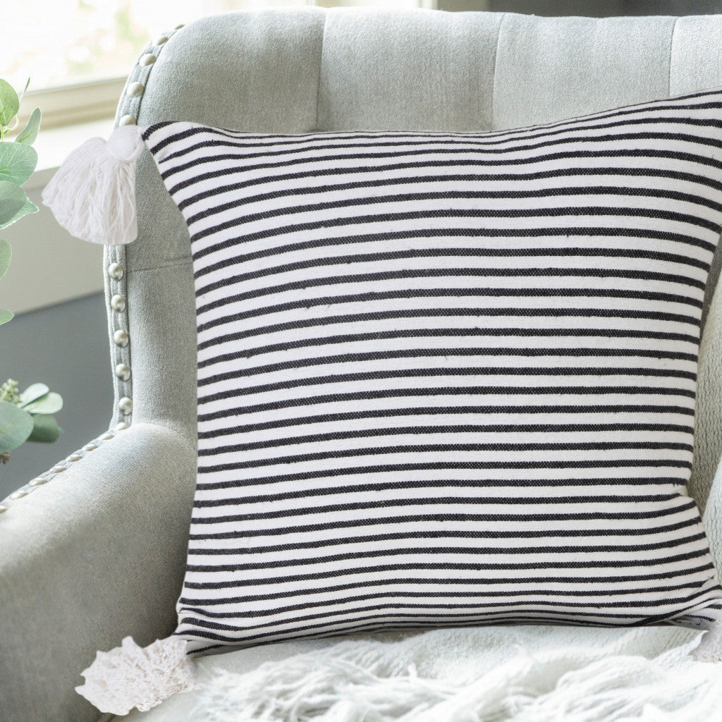 The perfect complement to your sofa, favorite chair, or bed, this 20" x 20" light gray and white 100% cotton striped zippered pillow is a great decorative accent. Soft and textural light gray and white 100% cotton has been used to make this pillow look and feel like a real treasure. Decorative throw pillows not only add color and dimension to your space but can be comfy and supportive when you are lounging and cuddling as well. A great decorative accessory for your favorite chair, to accent your sofa, or to use as part of your bed ensemble. 4" H x 20" W x 20" D