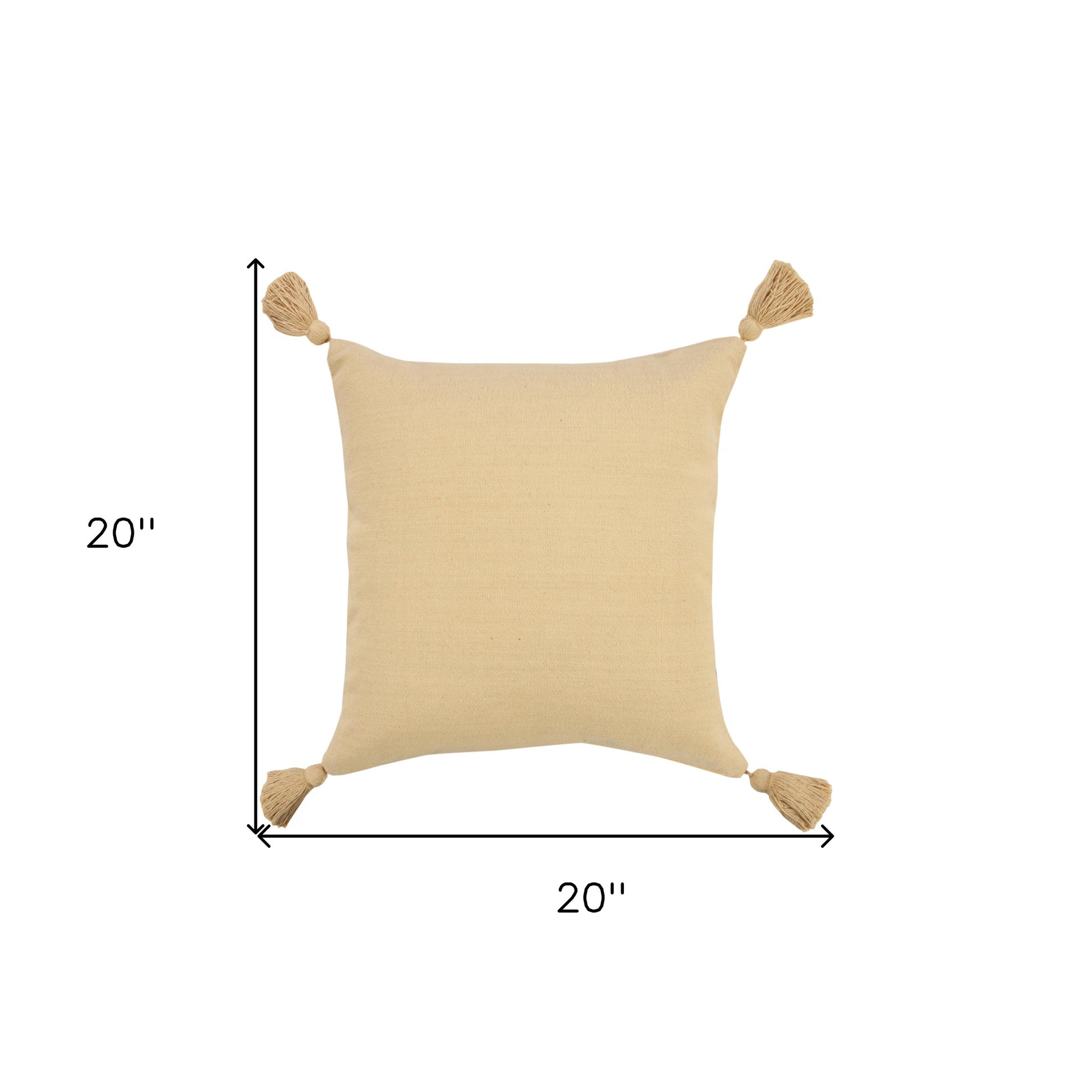 20" X 20" Light Yellow 100% Cotton Zippered Pillow
