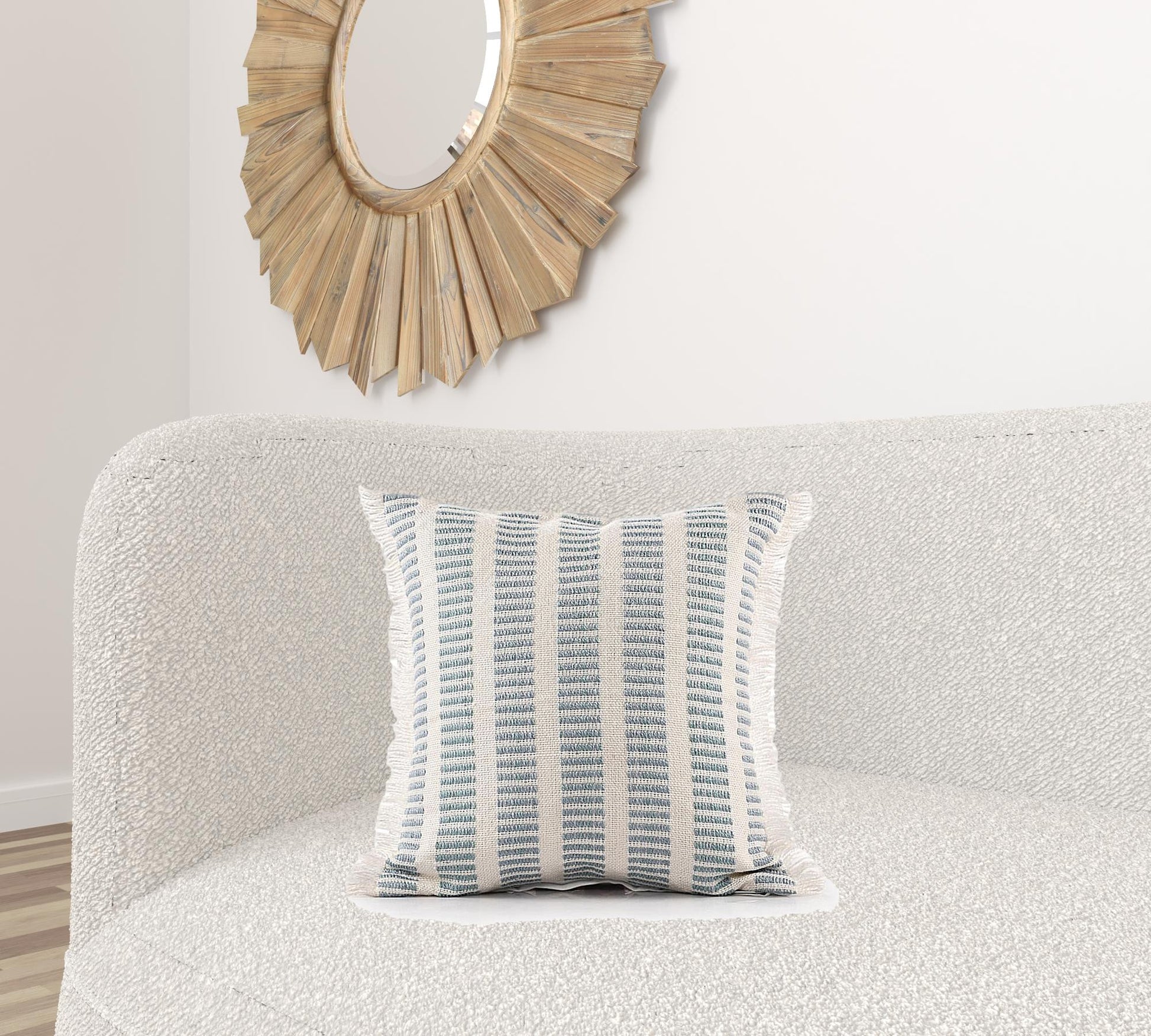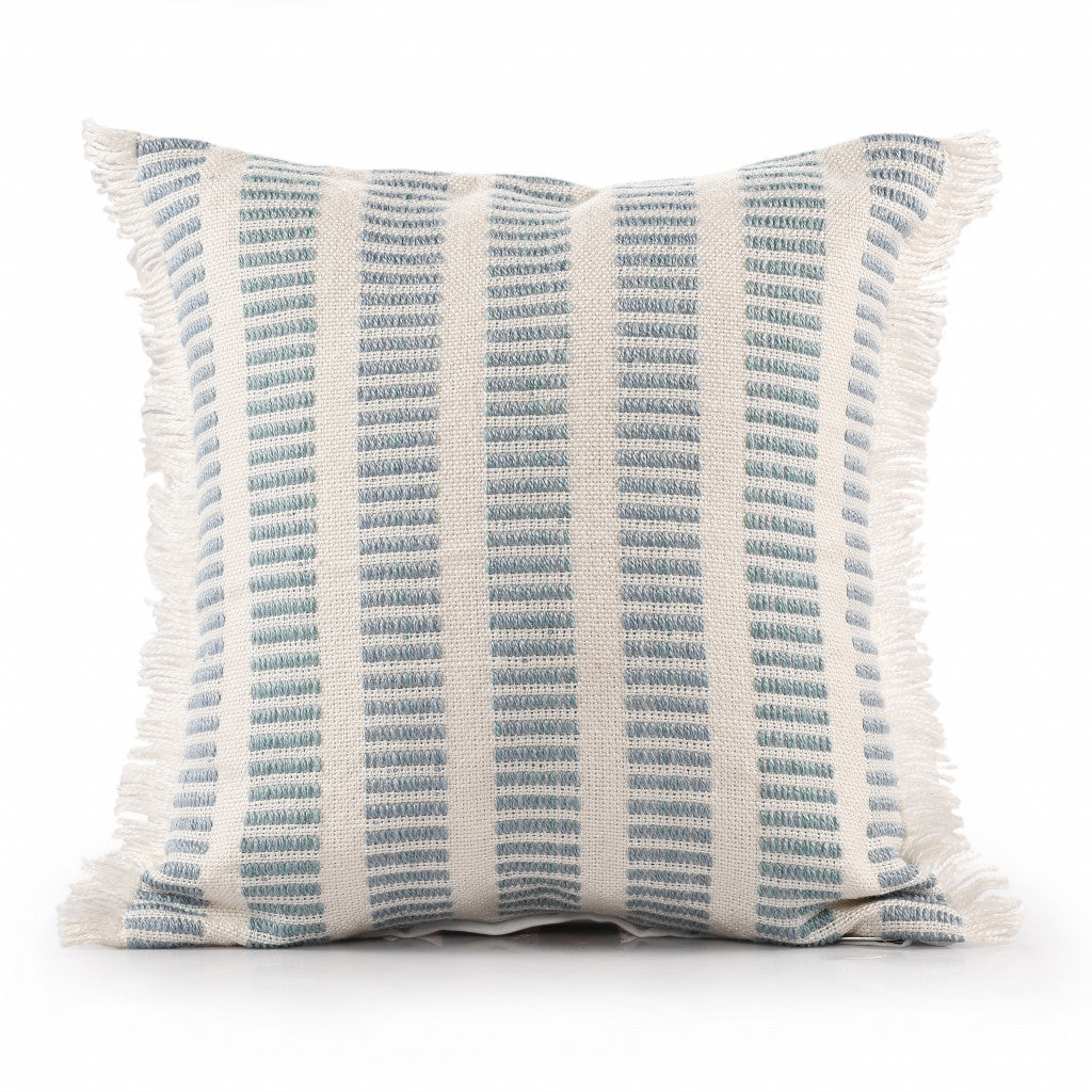 20" X 20" Medium Blue And Ivory Polyester Striped Zippered Pillow