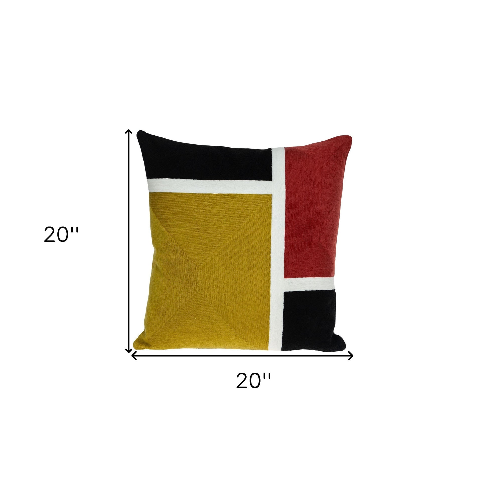 Unique and decorative, this comfortable 20" x 20" mustard yellow and black geometric zippered 100% cotton throw pillow will leave a lasting impression. Great to use on its own or mix with other decorations for the perfect look. A great decorative accessory for your favorite chair, to accent your sofa, or to use as part of your bed ensemble. 6" H x 20" W x 20" D