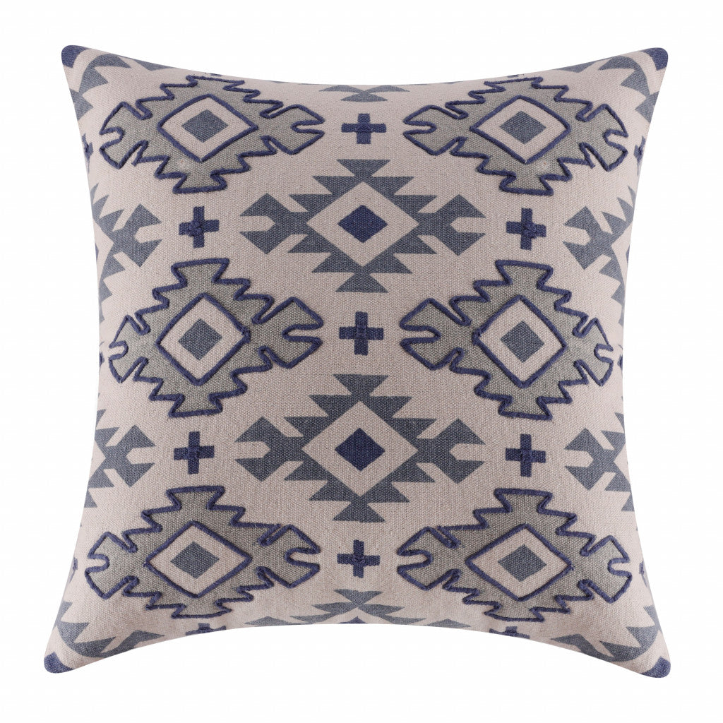 20" X 20" Navy And Light Gray 100% Cotton Geometric Zippered Pillow