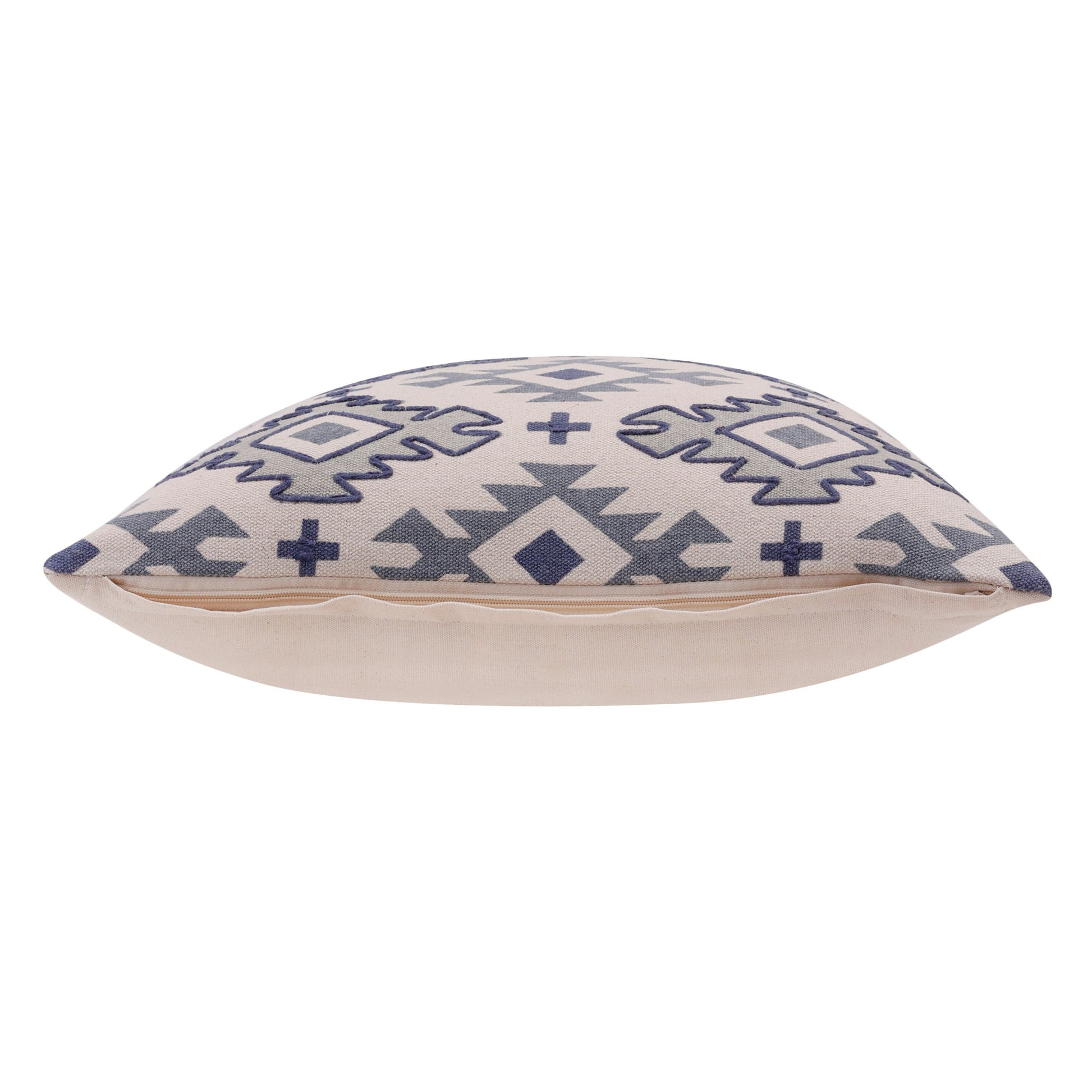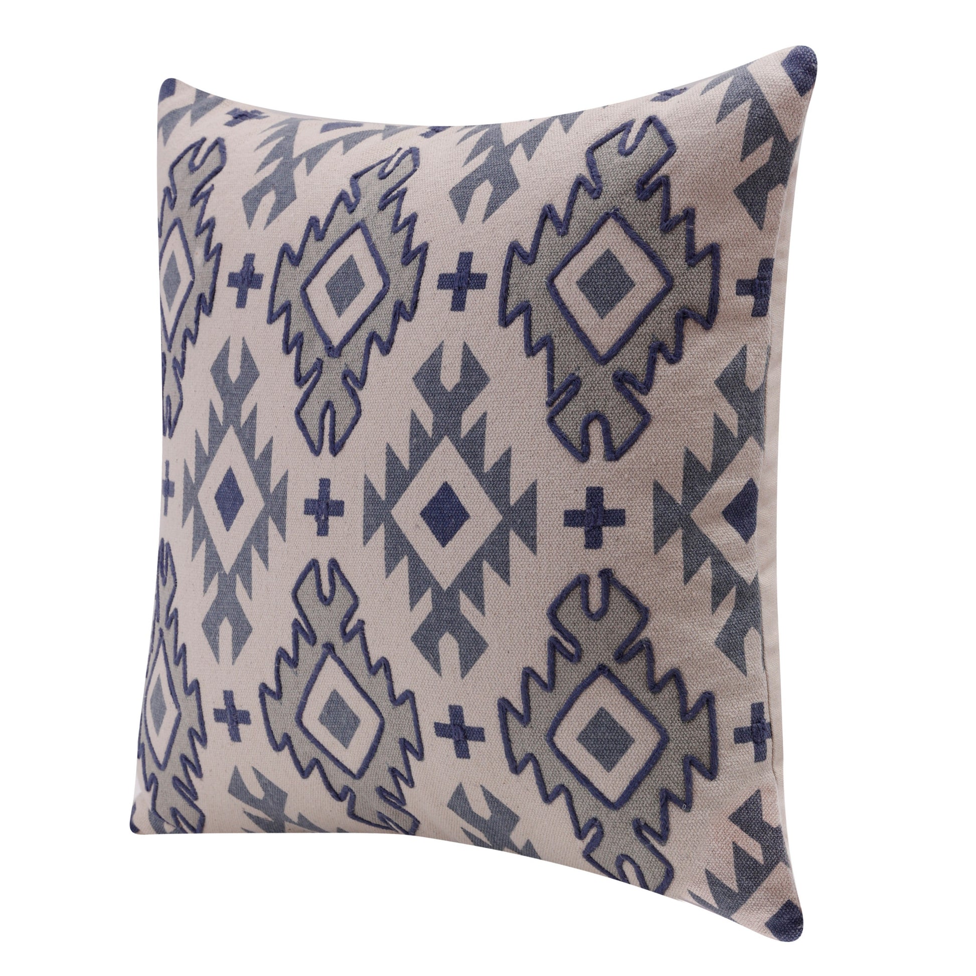 Bring a bit of fashion and zip to your space with this eye-catching and comfy 20" x 20" navy and light gray 100% cotton geometric zippered pillow. This navy and light gray colored decorative pillow is made from high grade 100% cotton that makes it super soft to the touch and long lasting. Great to use on its own or mix with other decorations for the perfect look. A great decorative accessory for your favorite chair, to accent your sofa, or to use as part of your bed ensemble. 4" H x 20" W x 20" D