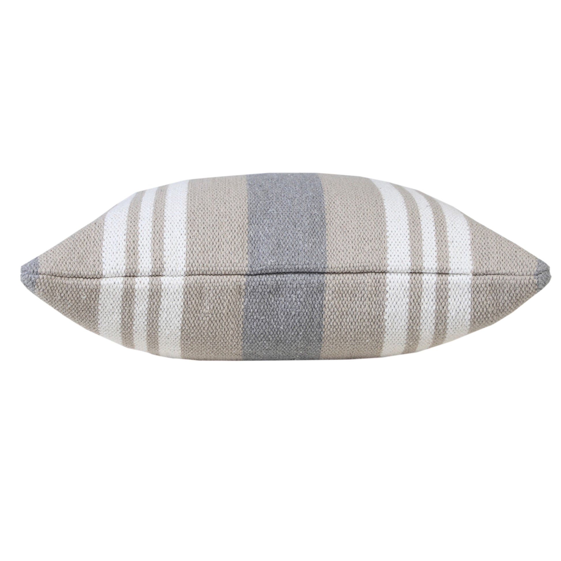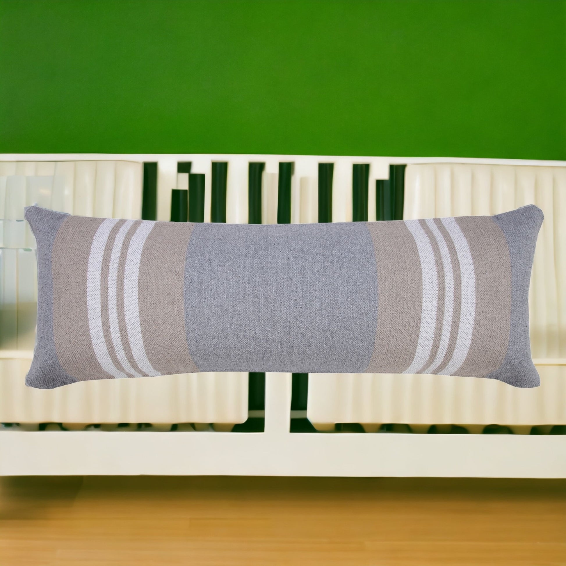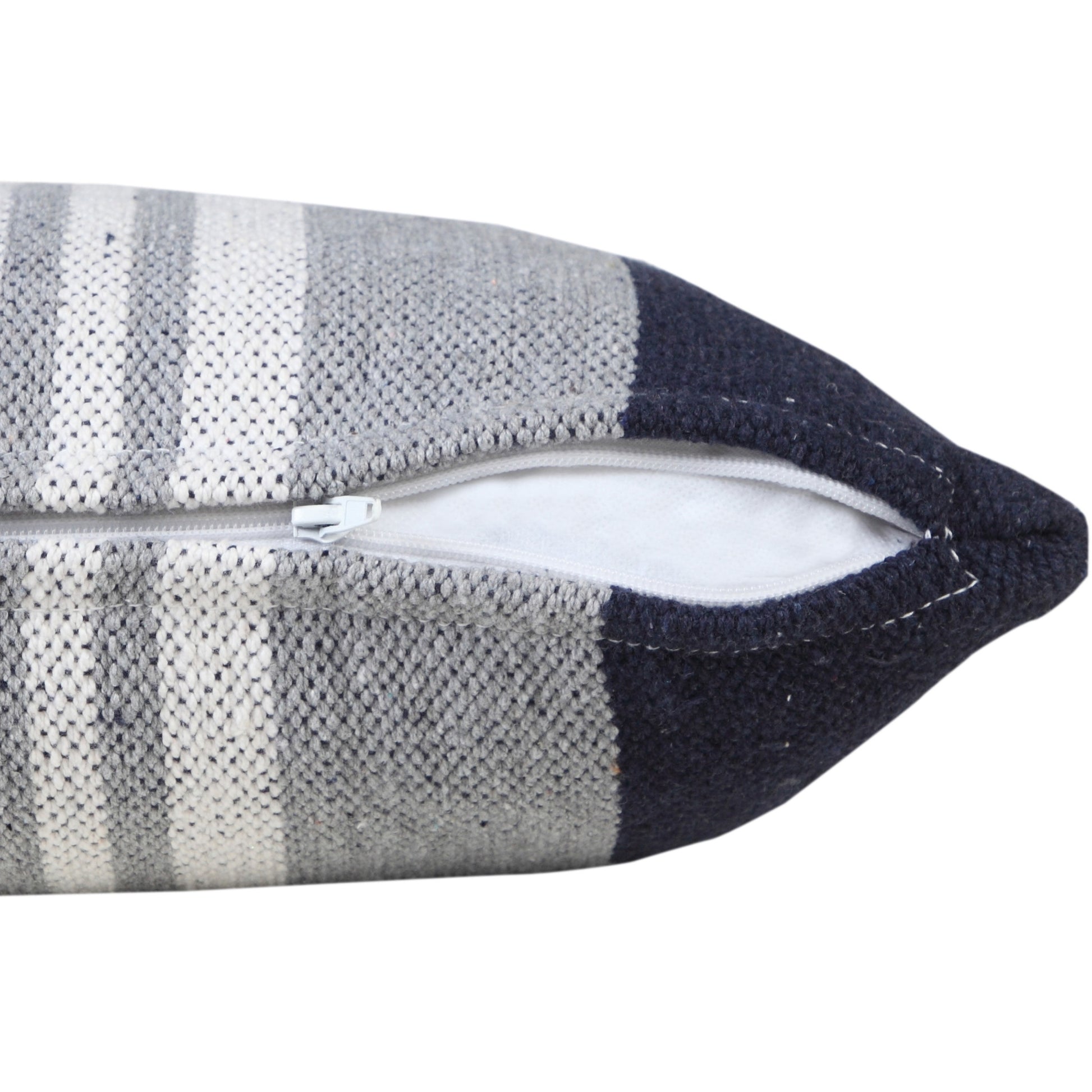 This 14" x 36" navy gray and white 100% cotton coastal zippered pillow will add a beautiful decorative accent to your decor. This super soft decorative pillow is expertly made of high grade, long lasting 100% cotton in a navy gray and white coloration. Decorative throw pillows not only add color and dimension to your space but can be comfy and supportive when you are lounging and cuddling as well. Decorative pillows are a great way to change up the look and feel of your space easily and quickly. 14" H x 14" W x 36" D