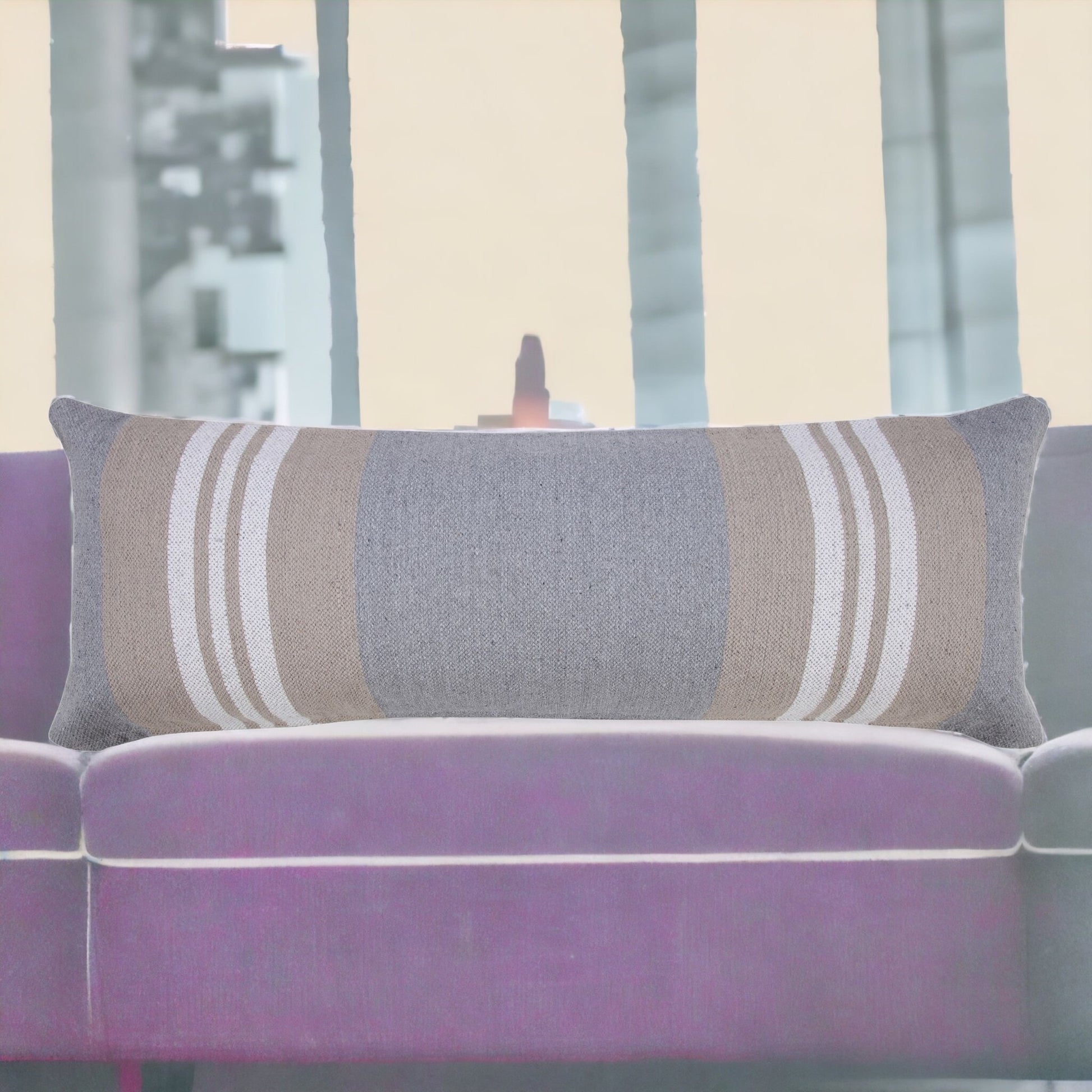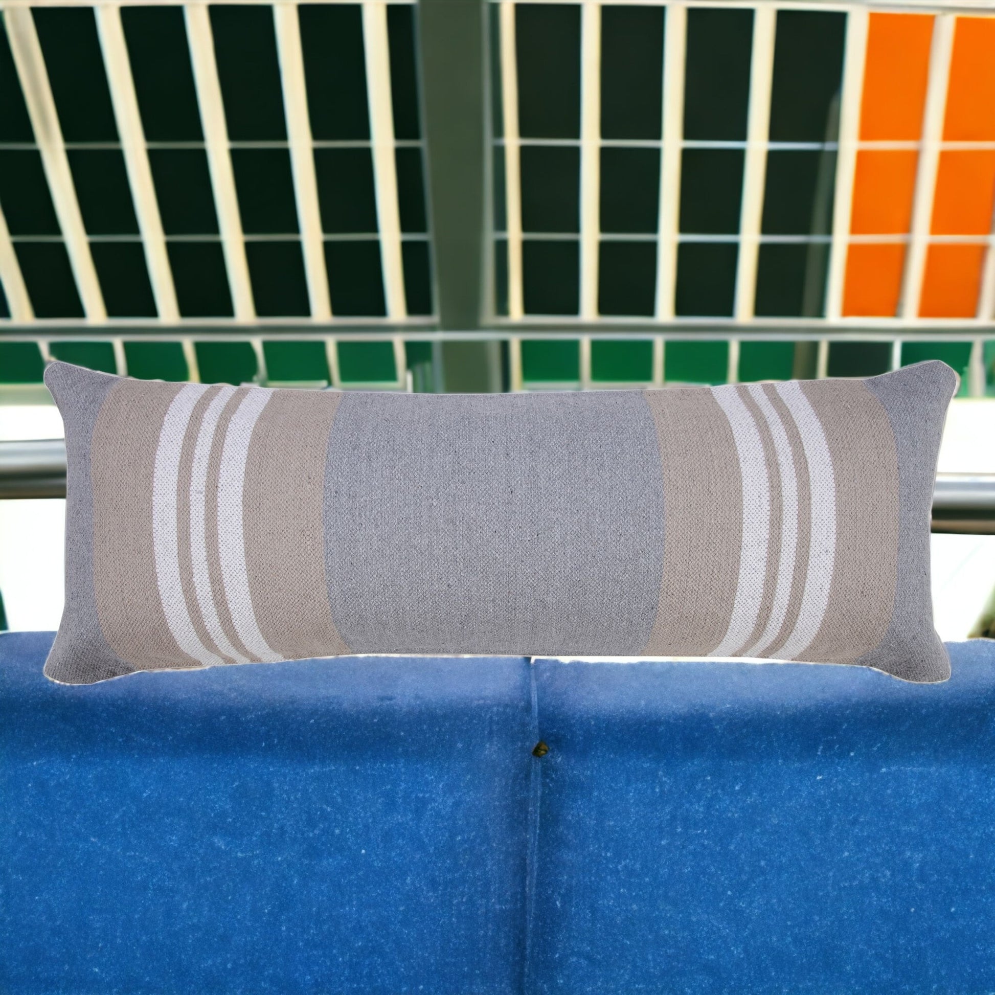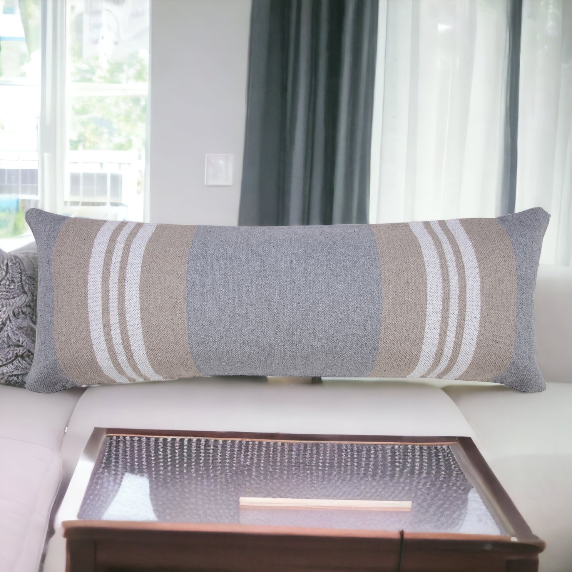 14" X 36" Navy Gray And White 100% Cotton Coastal Zippered Pillow