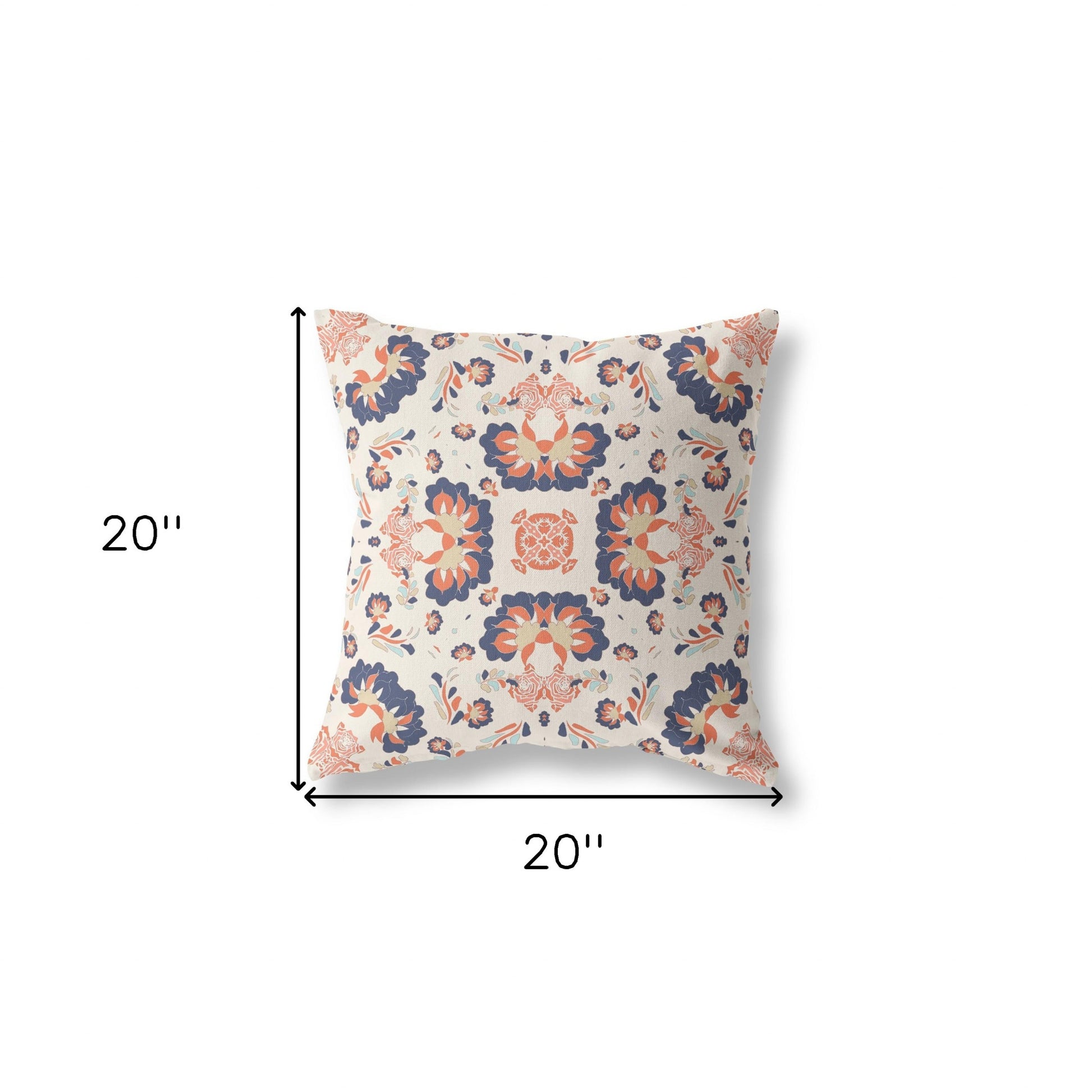 20" X 20" Off White And Blue Floral Zippered Suede Throw Pillow