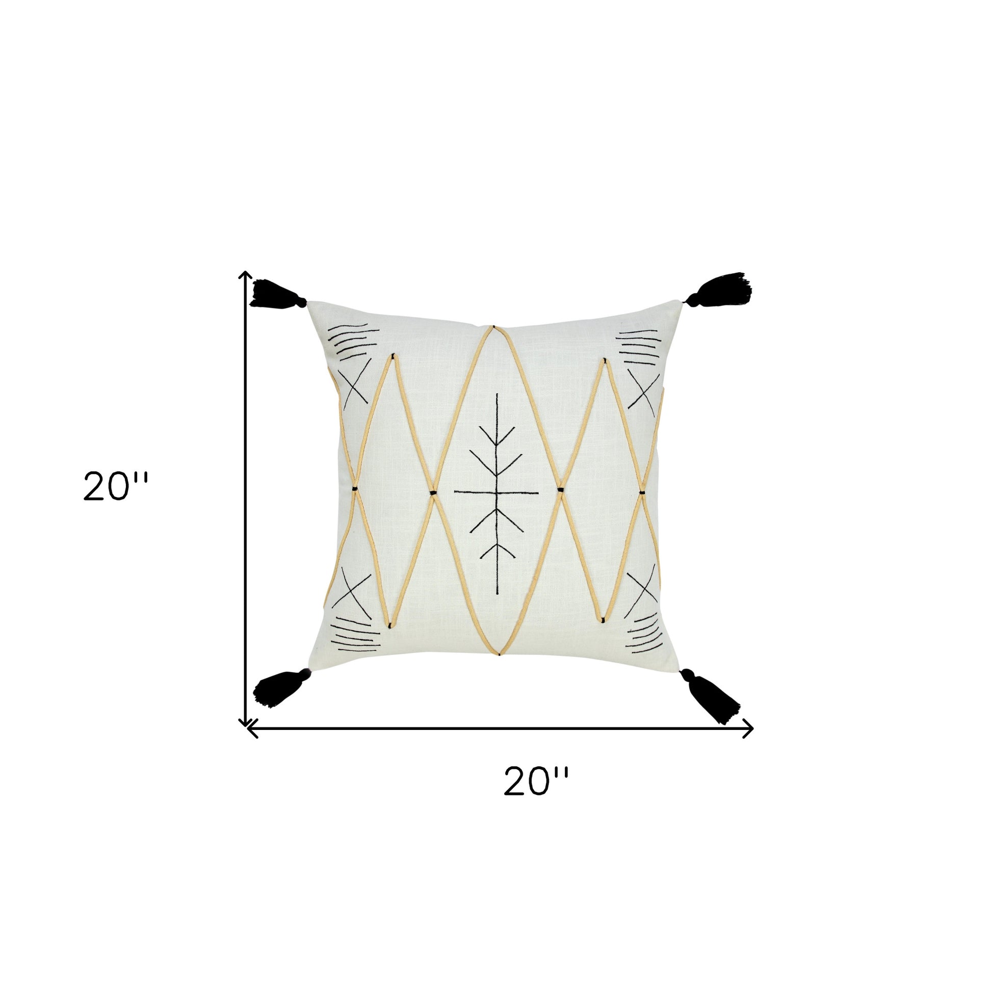 20" X 20" Off-White Black And Cream 100% Cotton Geometric Zippered Pillow