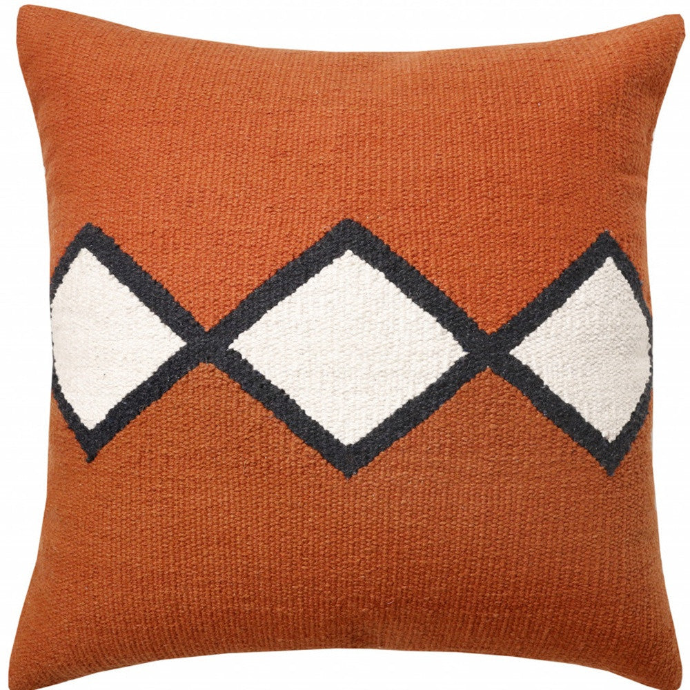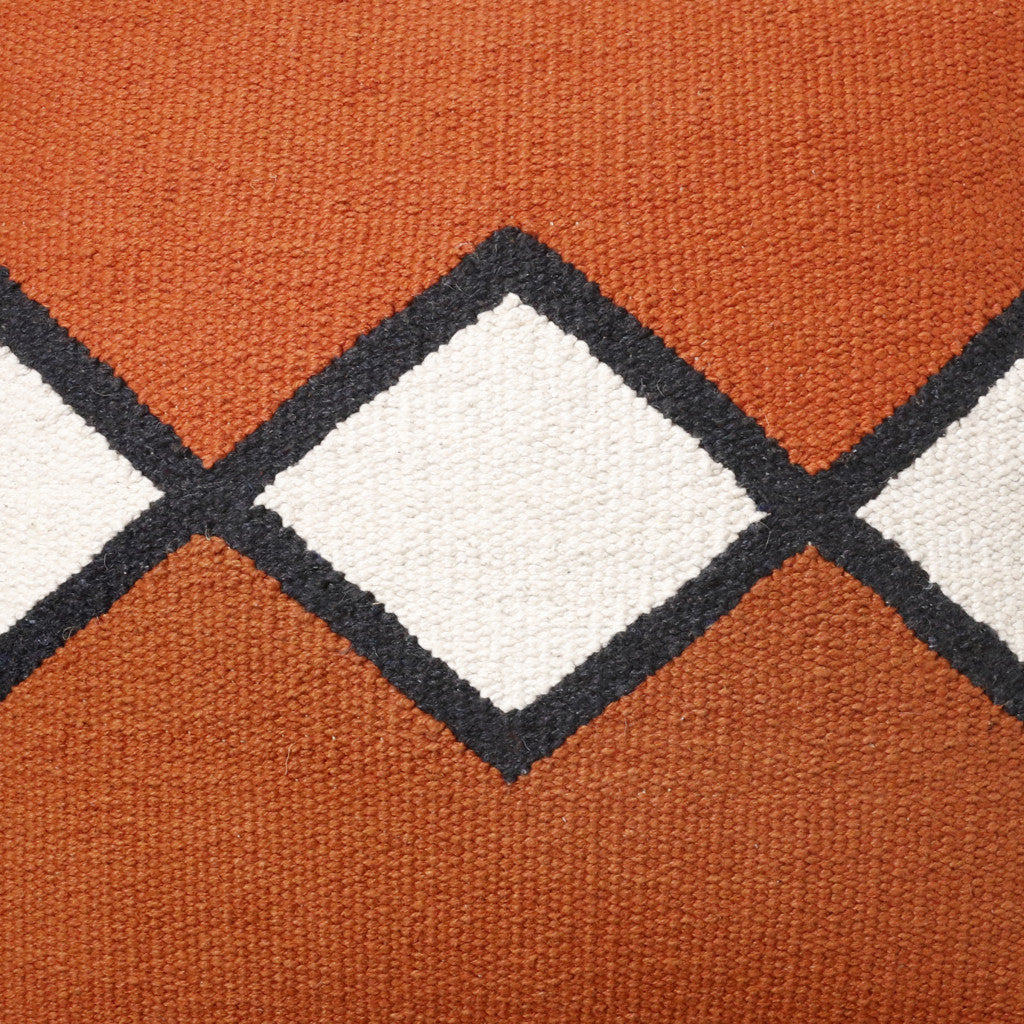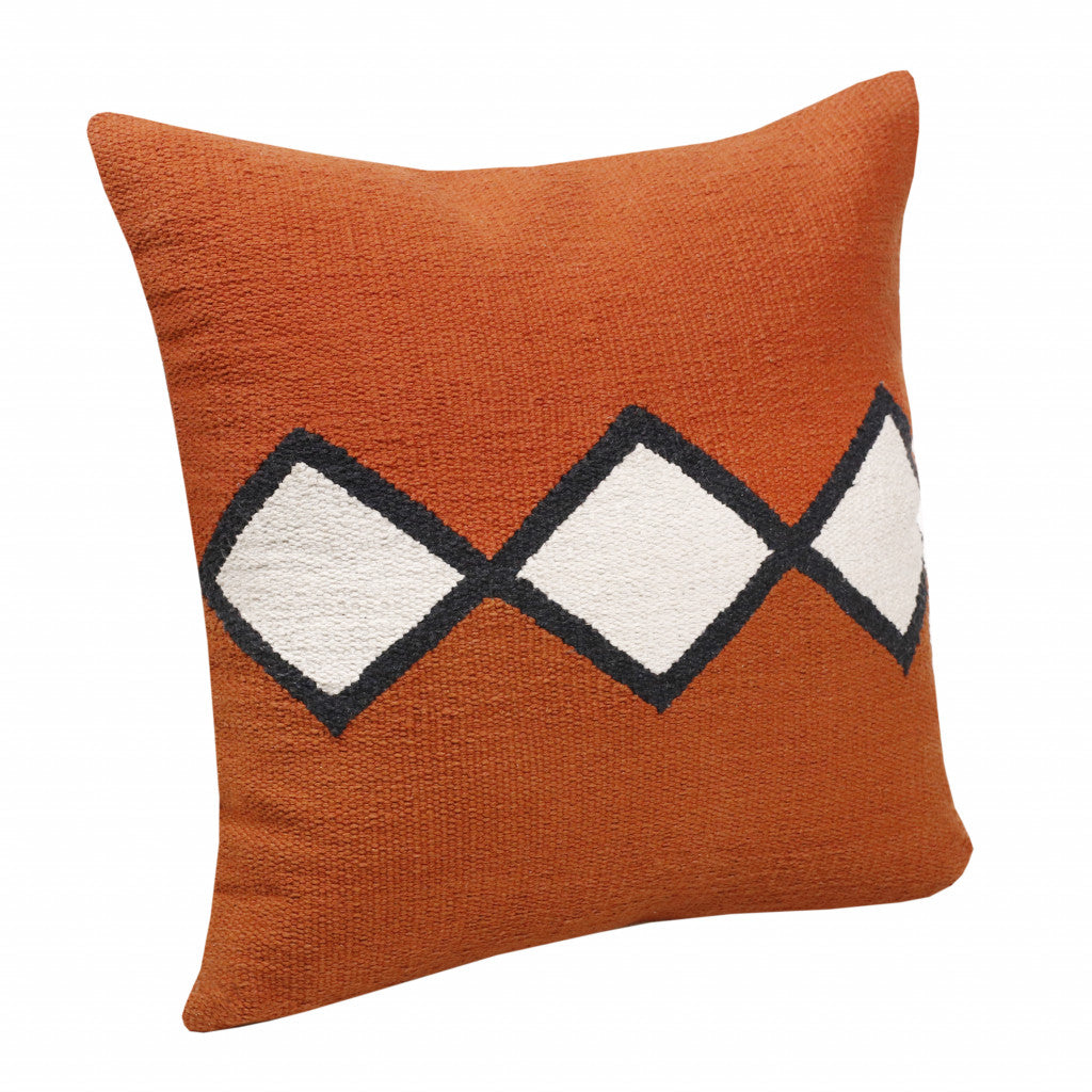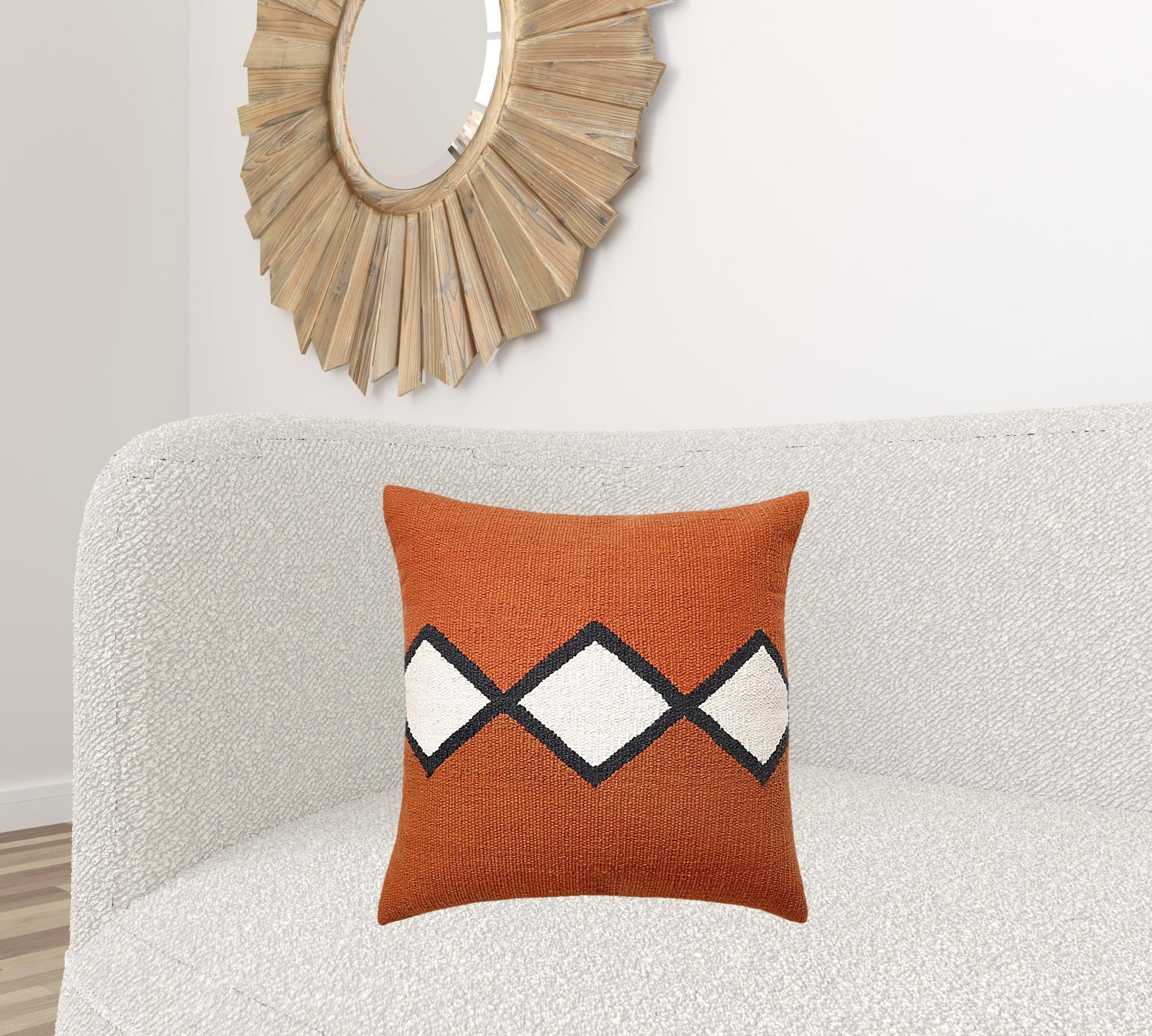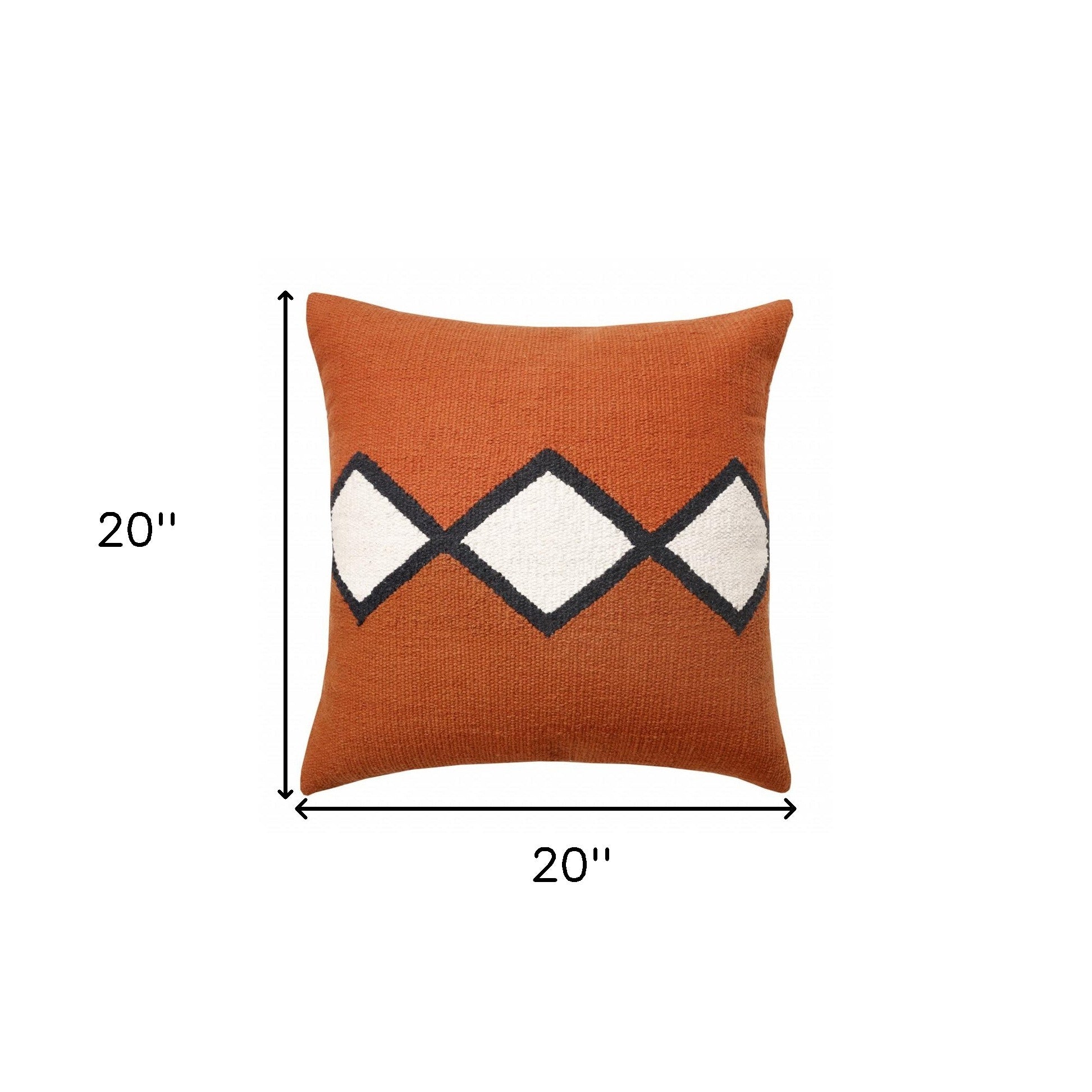 20" X 20" Orange White And Black 100% Cotton Geometric Zippered Pillow