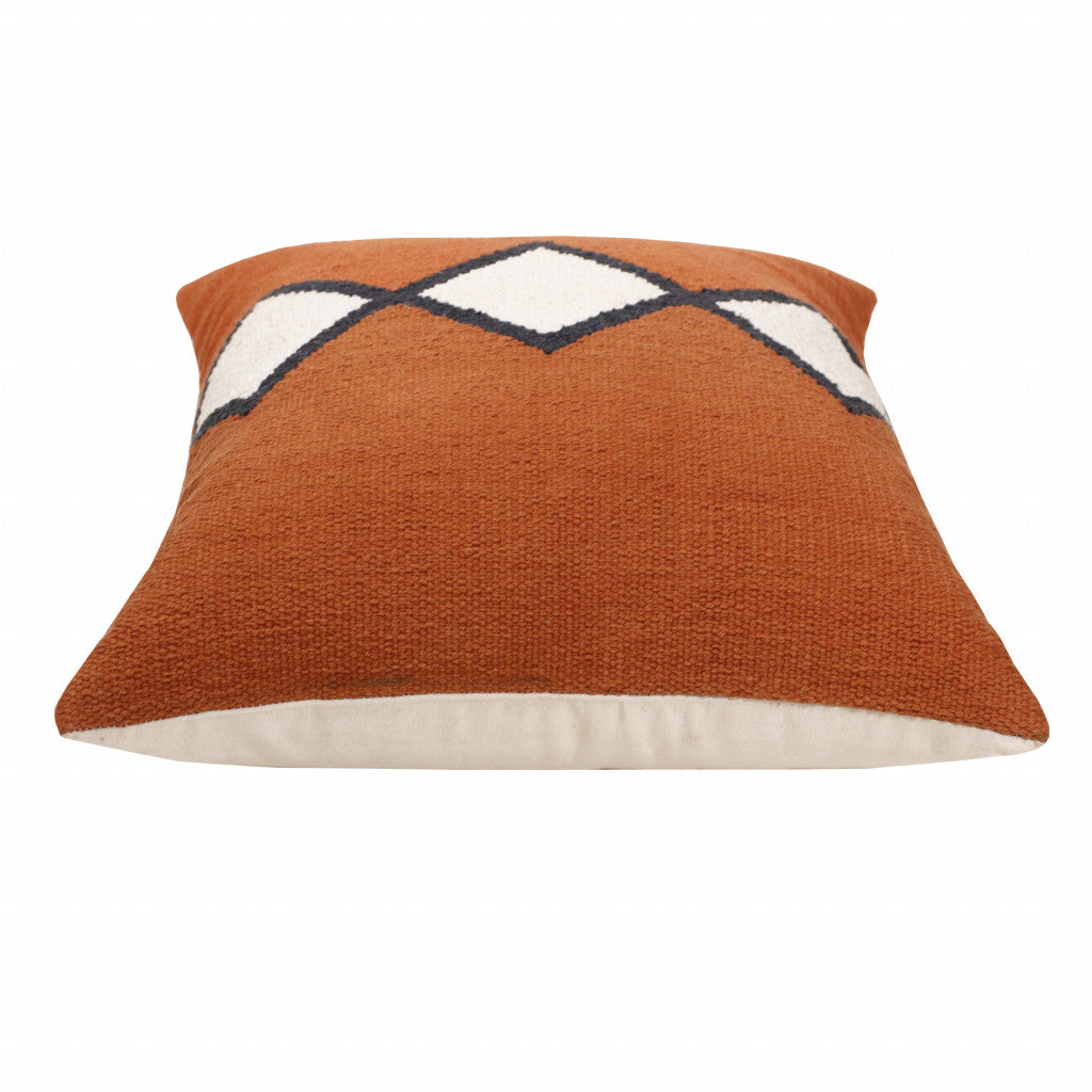 The perfect complement to your sofa, favorite chair, or bed, this 20" x 20" orange white and black 100% cotton geometric zippered pillow is a great decorative accent. This super soft decorative pillow is expertly made of high grade, long lasting 100% cotton in a orange white and black coloration. Decorative throw pillows not only add color and dimension to your space but can be comfy and supportive when you are lounging and cuddling as well. Decorative pillows are a great way to change up the look and feel of your space easily and quickly. 4" H x 20" W x 20" D