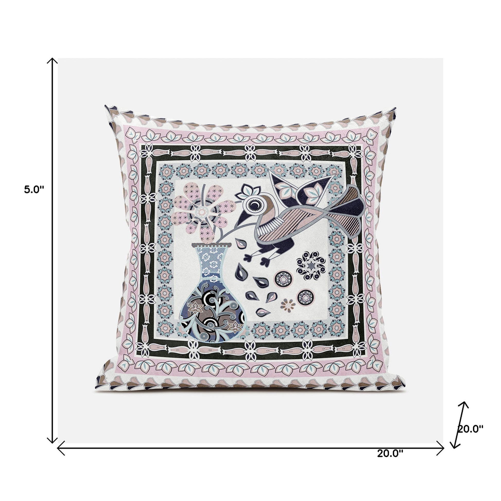 This 20" x 20" pink and black peacock broadcloth floral zippered pillow will add a beautiful decorative accent to your decor. This pink and black hued piece represents quality construction, expertly made from durable broadcloth that is not only long lasting but soft to the touch as well. For anyone that loves to decorate or accent their space with color and texture. A great decorative accessory for your favorite chair, to accent your sofa, or to use as part of your bed ensemble. 5" H x 20" W x 20" D