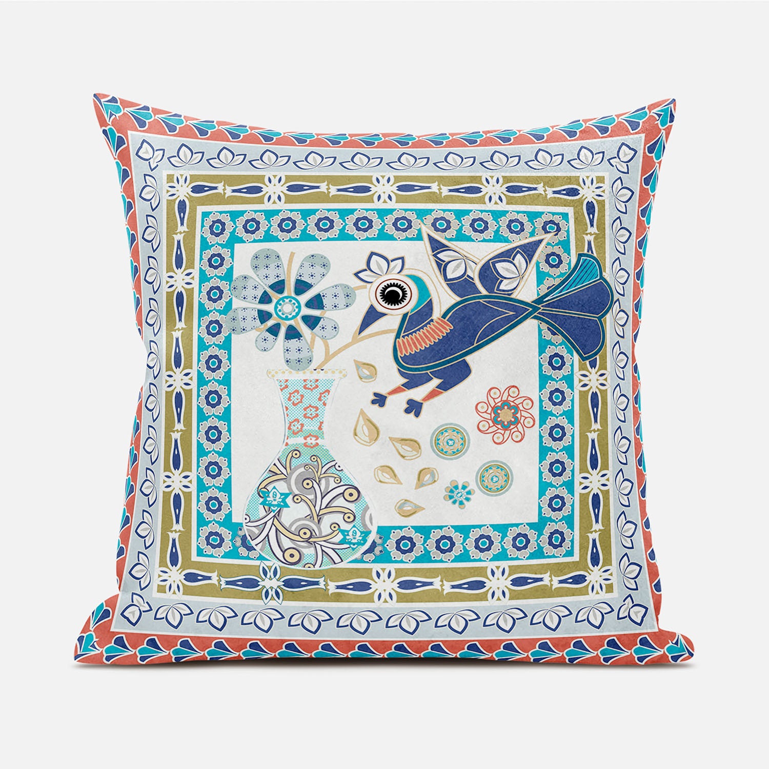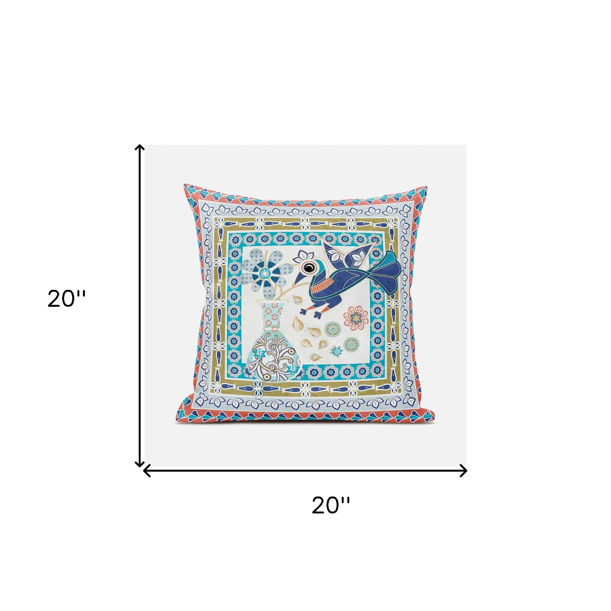 20" X 20" Pink and Green Peacock Broadcloth Floral Zippered Pillow