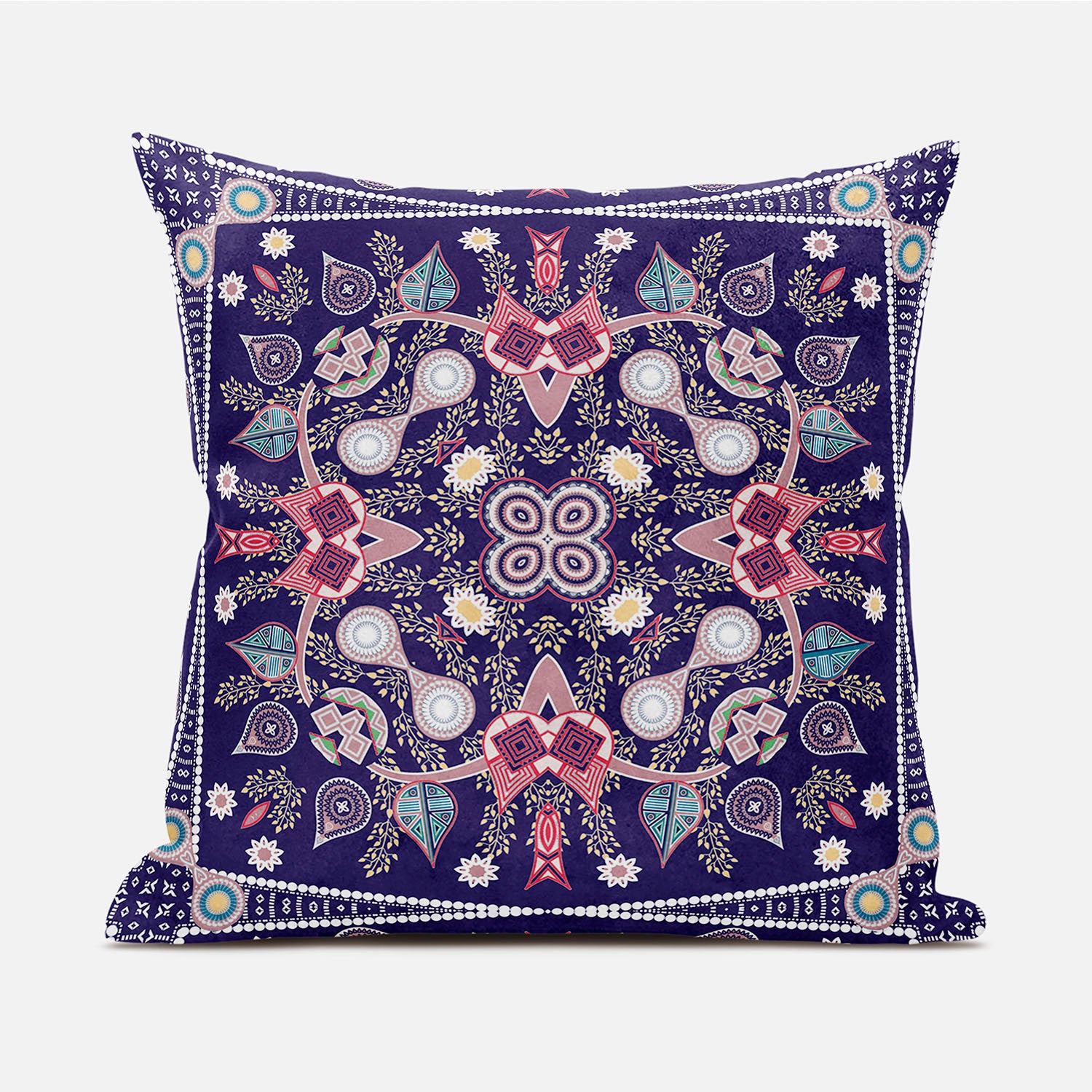 20" X 20" Pink and Purple Broadcloth Paisley Zippered Pillow