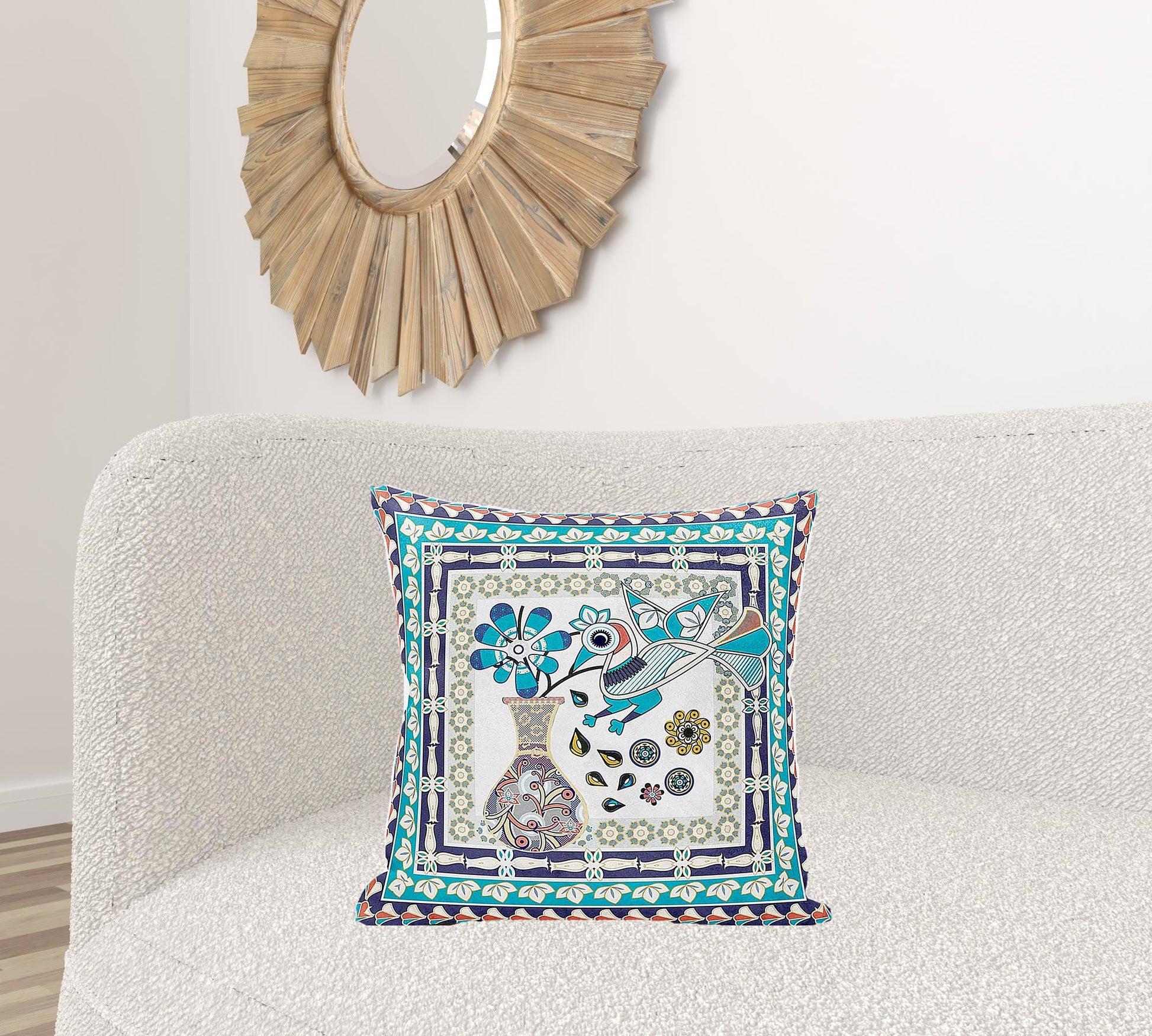 20" X 20" Pink and Purple Peacock Broadcloth Floral Zippered Pillow