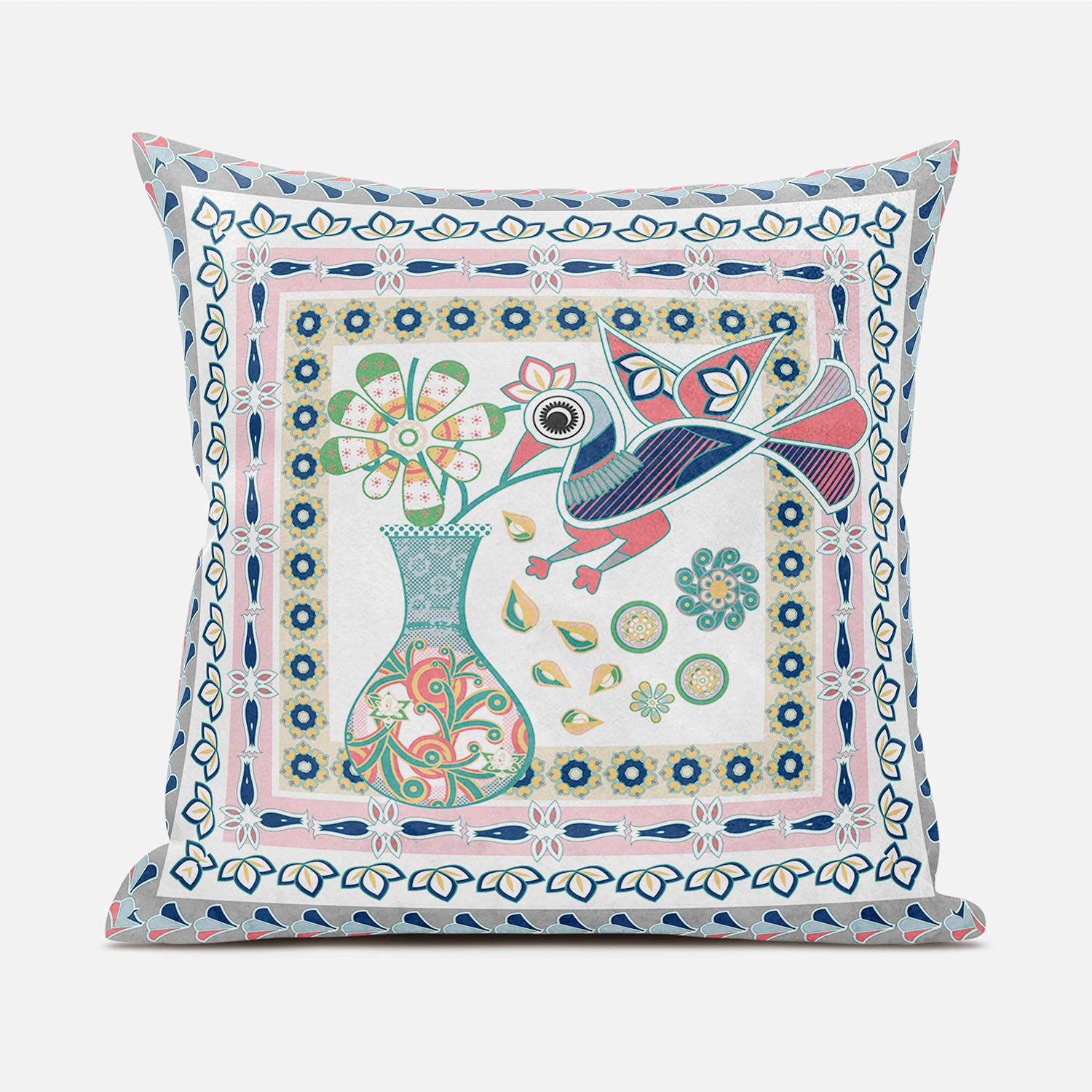 20" X 20" Pink and White Peacock Broadcloth Floral Zippered Pillow