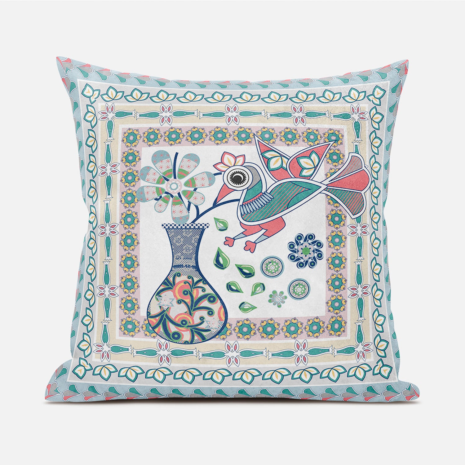 20" X 20" Pink and White Peacock Broadcloth Floral Zippered Pillow