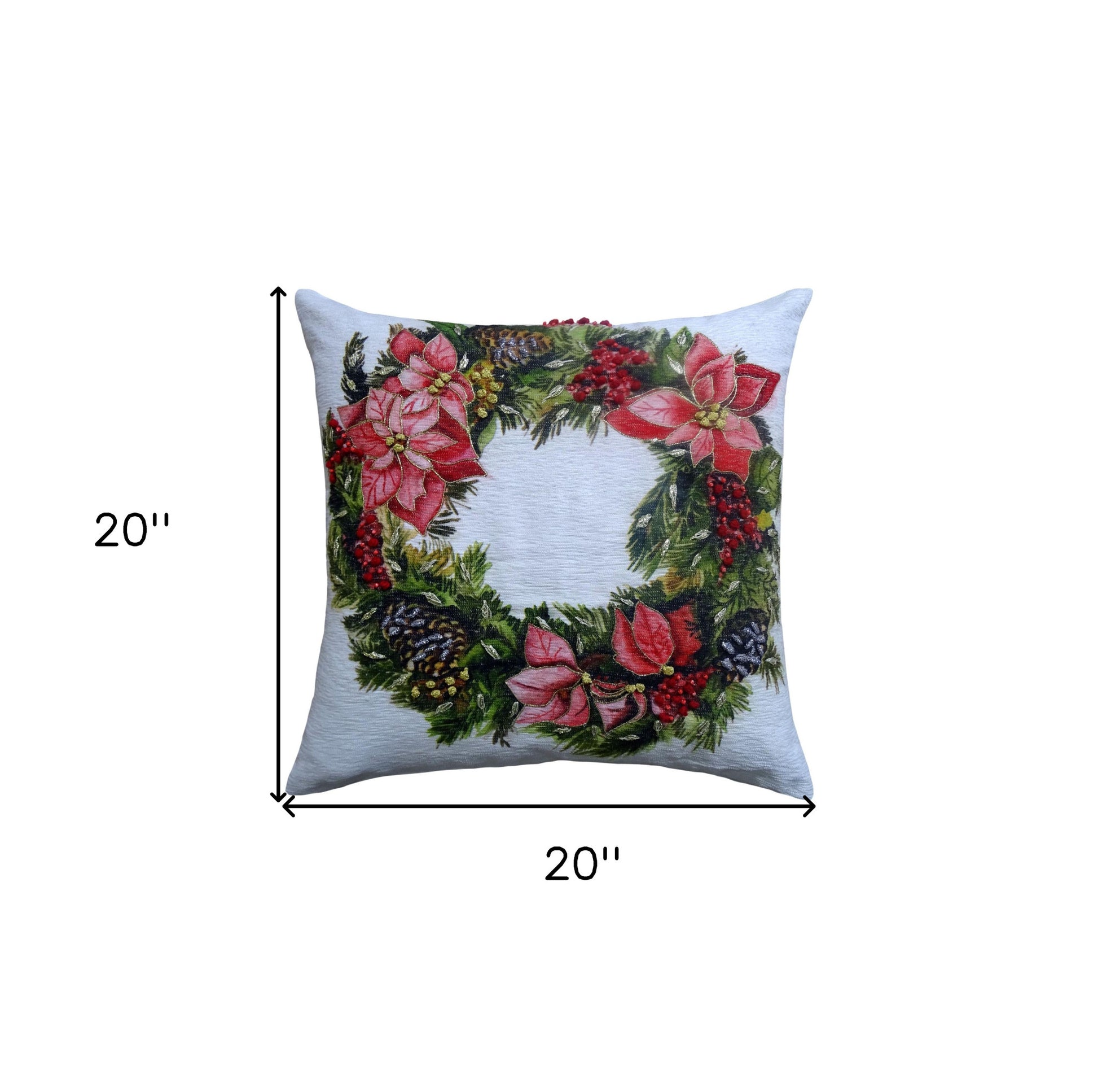 20" X 20" Red And Green Text Zippered Cotton Blend Christmas Wreath Throw Pillow