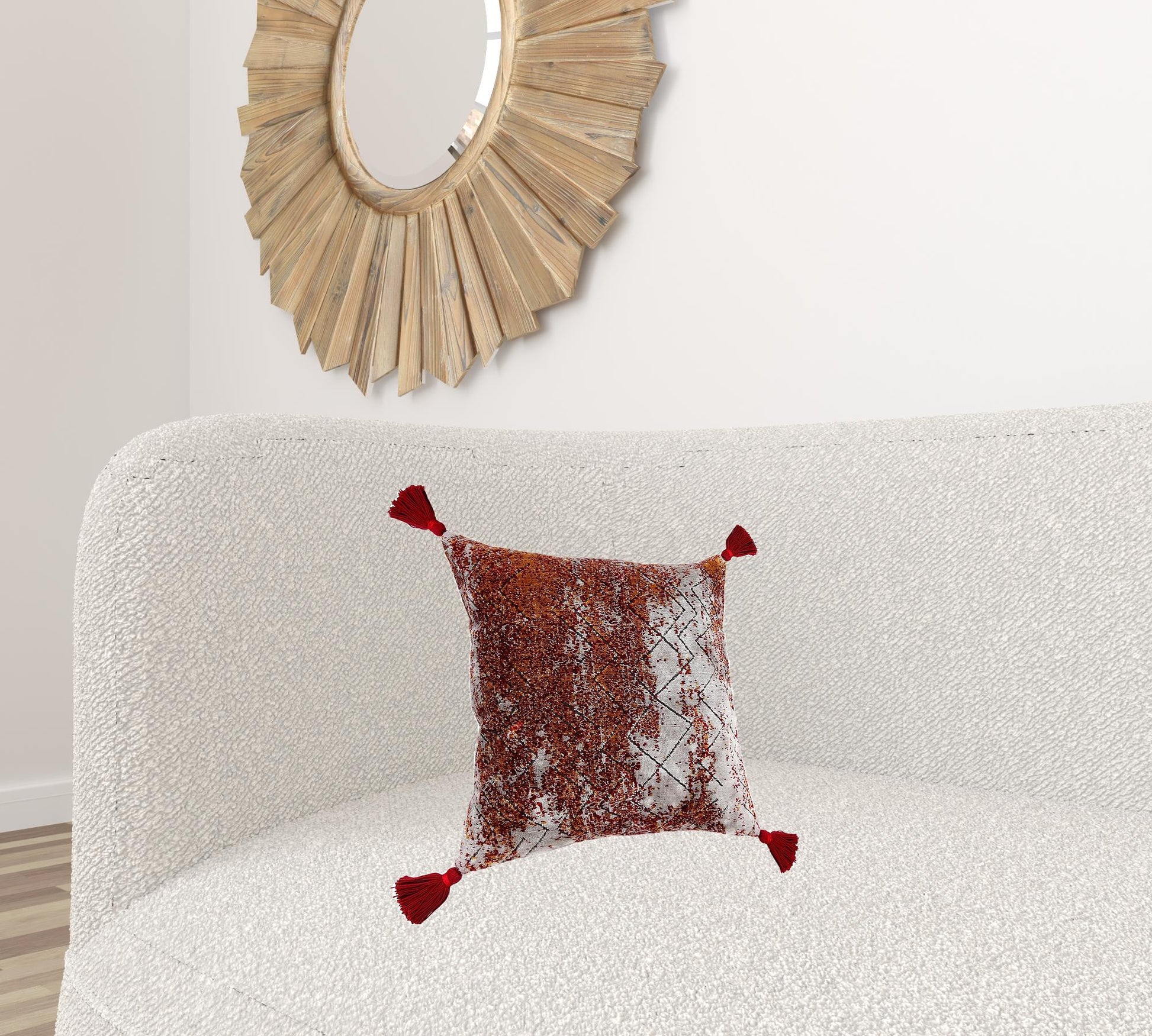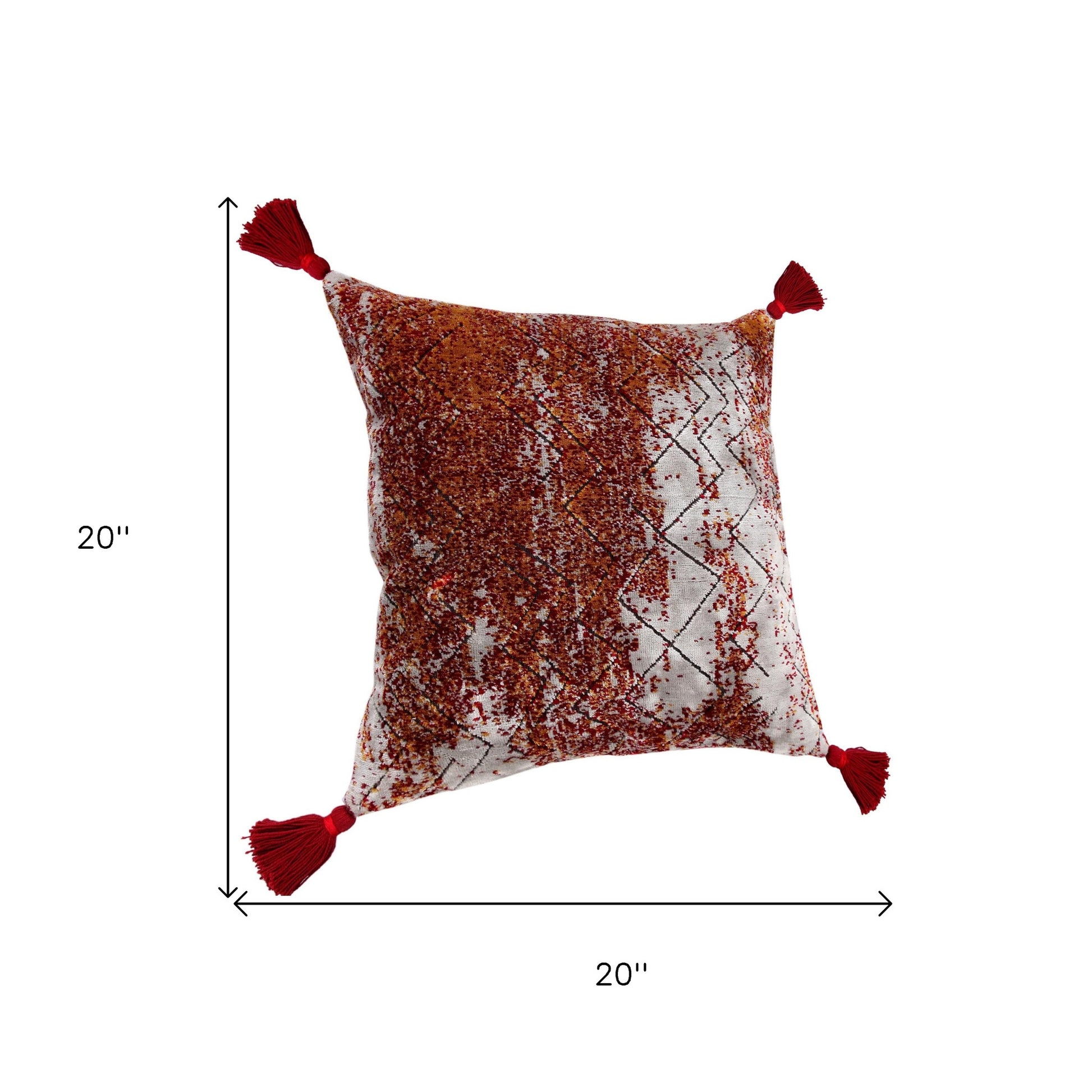 The 20" x 20" red orange and silver viscose geometric zippered pillow is the perfect decorative accessory for your home. This red orange and silver hued piece represents quality construction, expertly made from durable viscose that is not only long lasting but soft to the touch as well. For anyone that loves to decorate or accent their space with color and texture. Decorative pillows are a great way to change up the look and feel of your space easily and quickly. 4" H x 20" W x 20" D