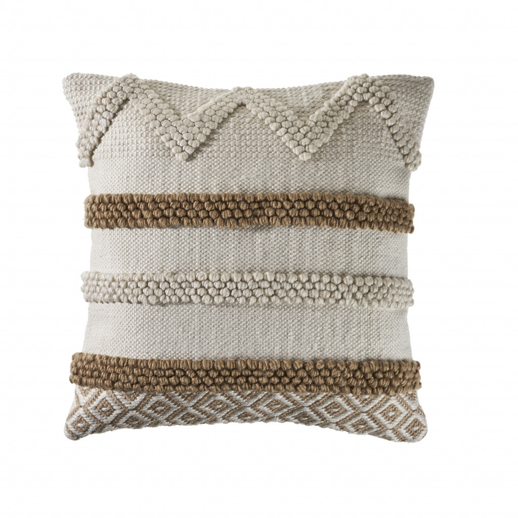 20" X 20" Tan And Beige Polyester Geometric Zippered Pillow