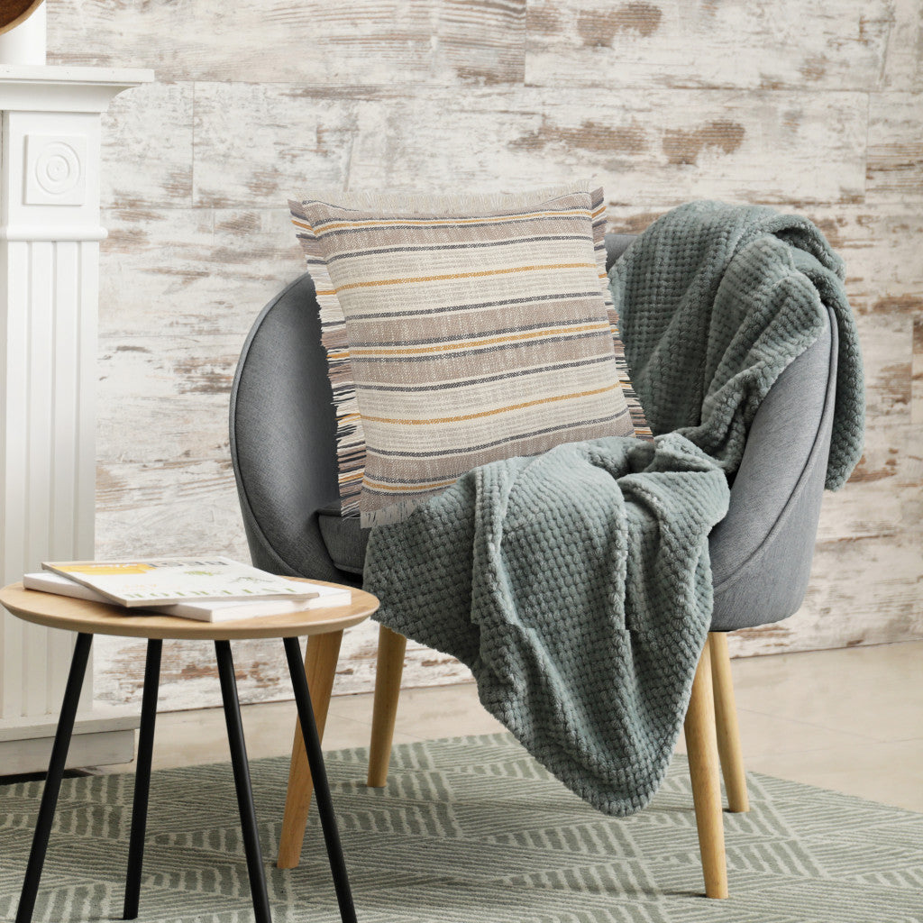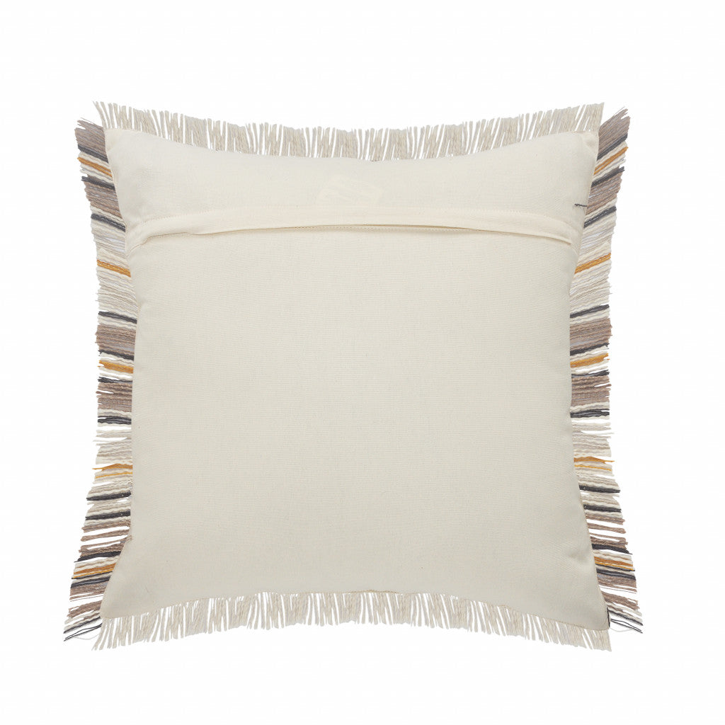 Add an air of fashion to your room and rejuvenate the space with this cute and fashionable 20" x 20" taupe gray yellow and navy 100% cotton striped zippered pillow. This taupe gray yellow and navy colored decorative pillow is made from high grade 100% cotton that makes it super soft to the touch and long lasting. Decorative throw pillows not only add color and dimension to your space but can be comfy and supportive when you are lounging and cuddling as well. A great decorative accessory for your favorite chair, to accent your sofa, or to use as part of your bed ensemble. 4" H x 20" W x 20" D