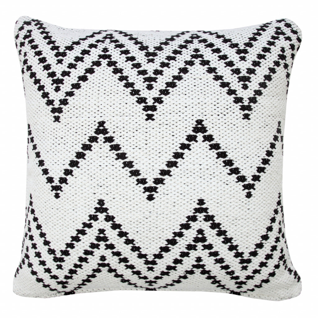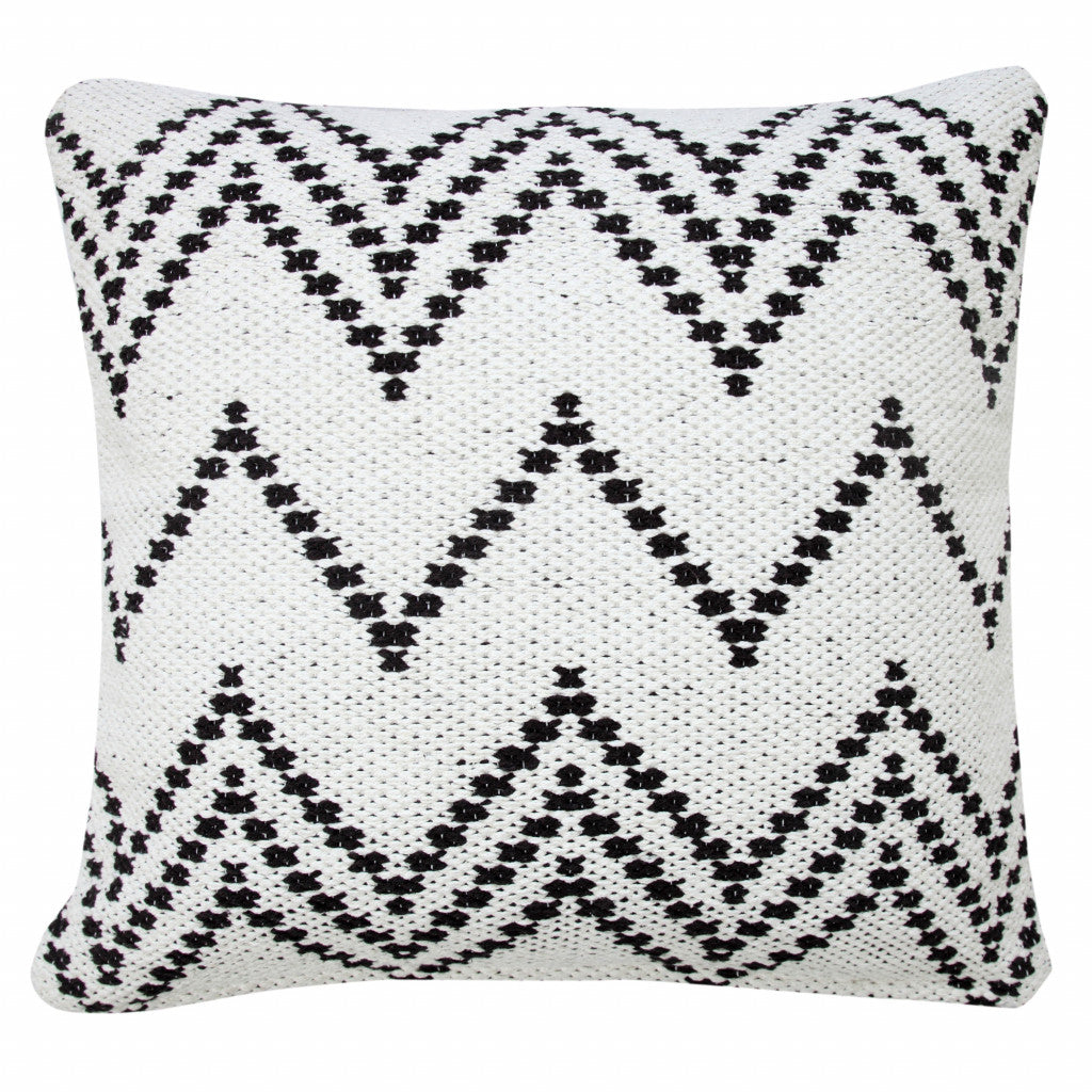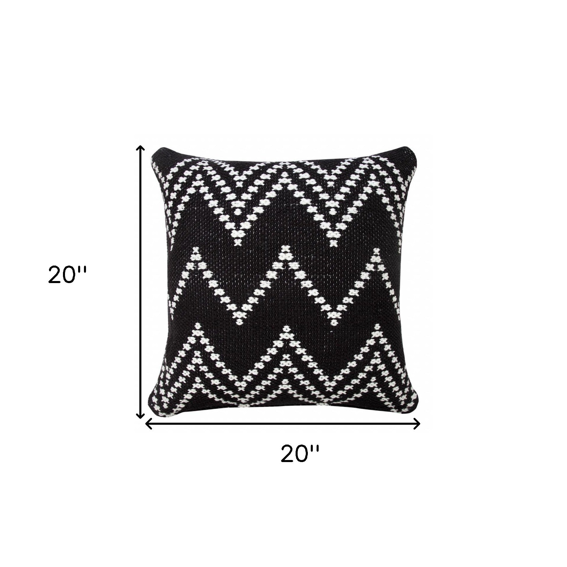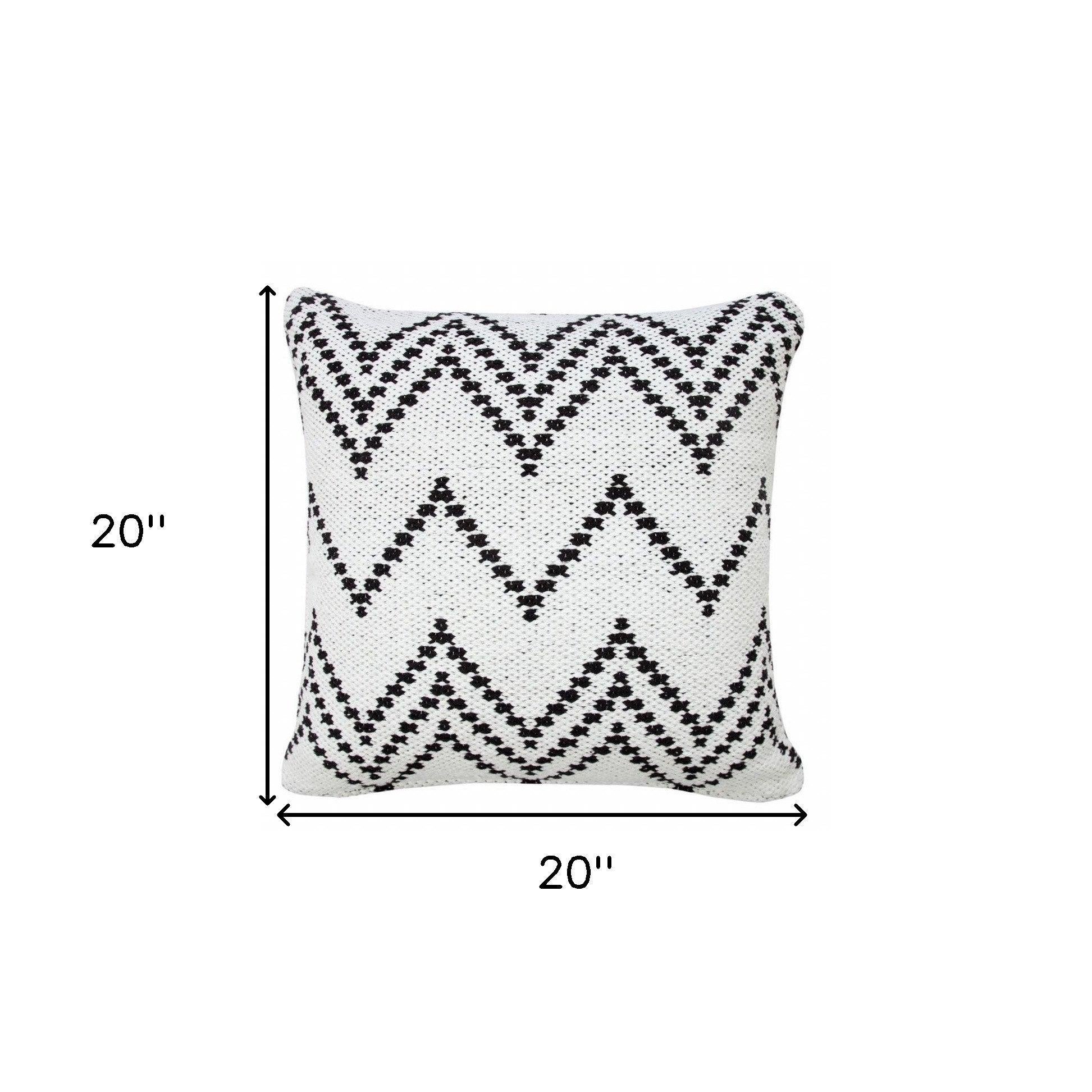 20" X 20" White And Black 100% Cotton Chevron Zippered Pillow