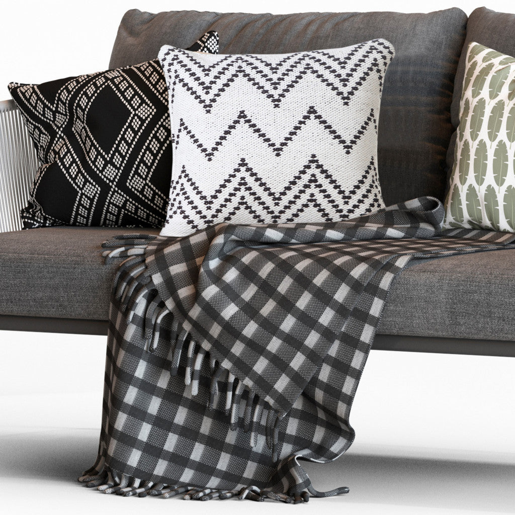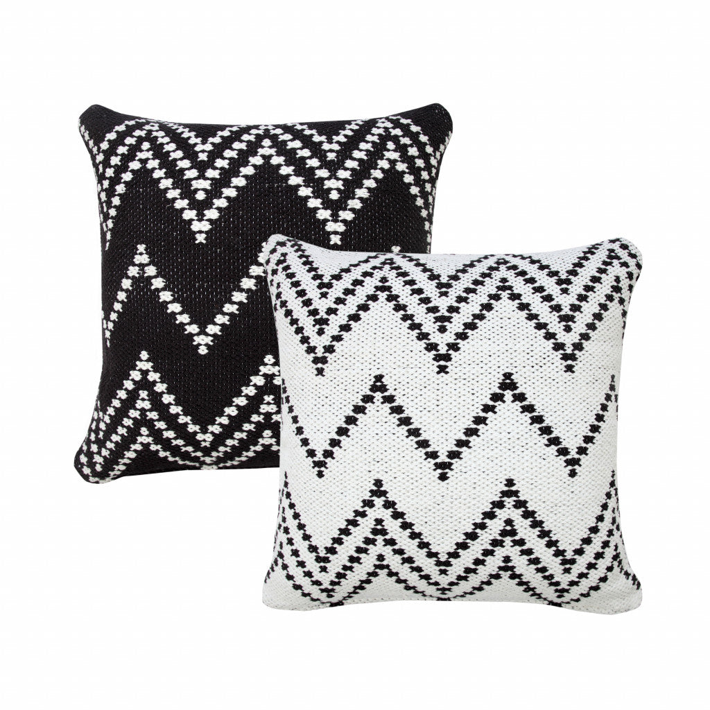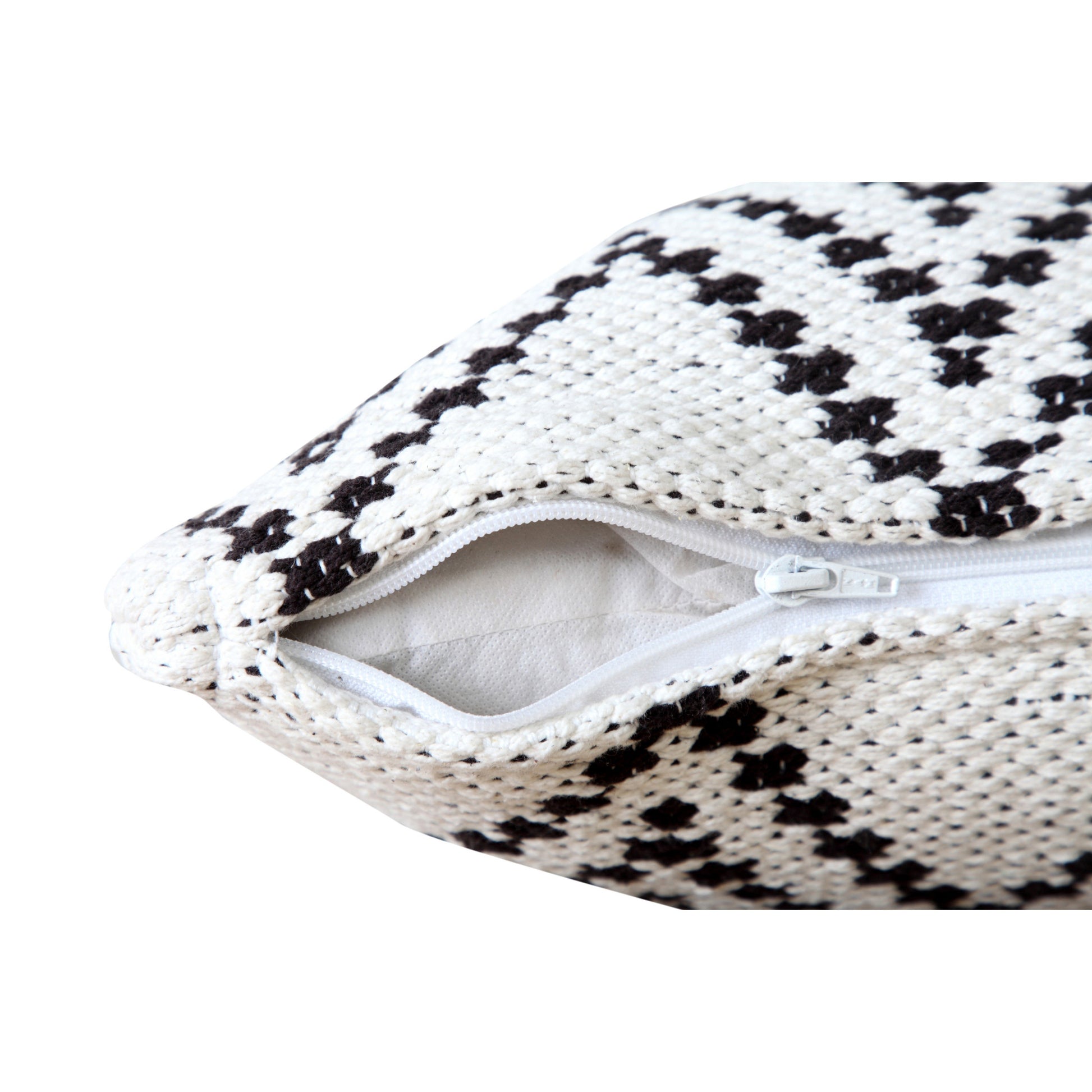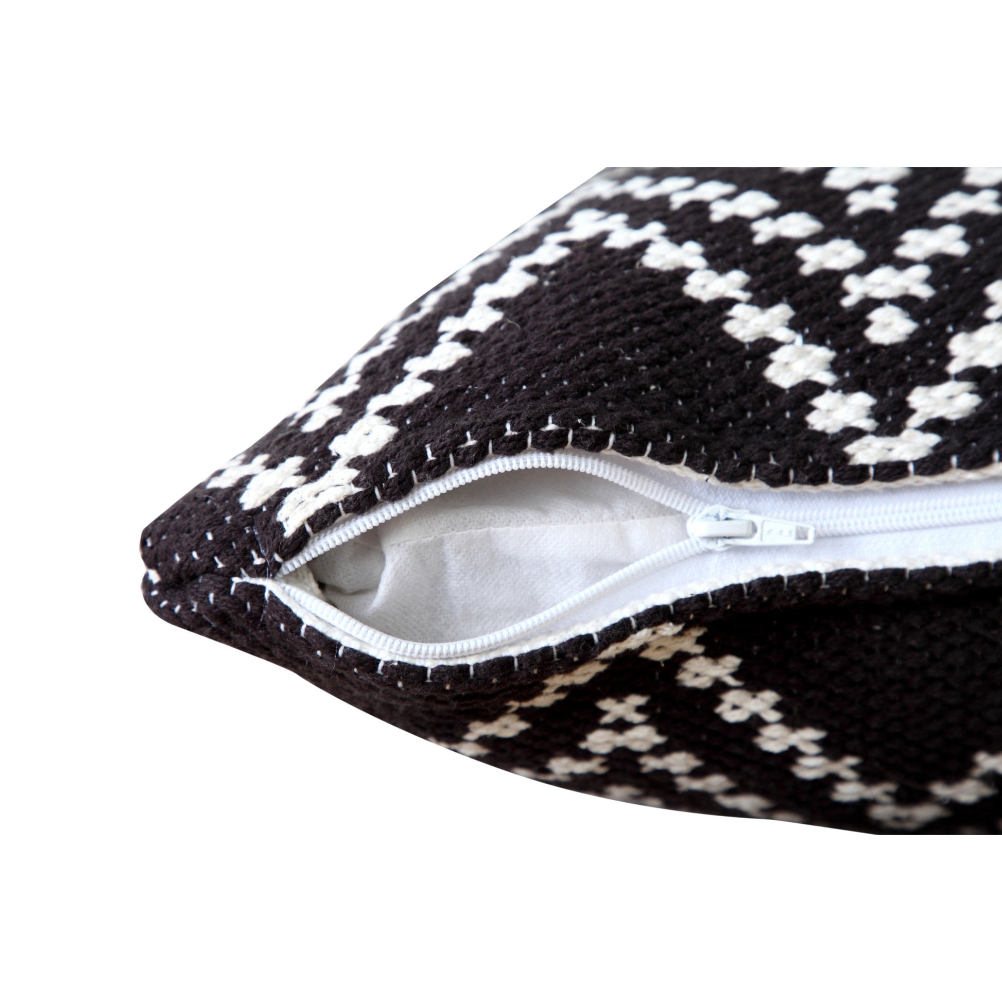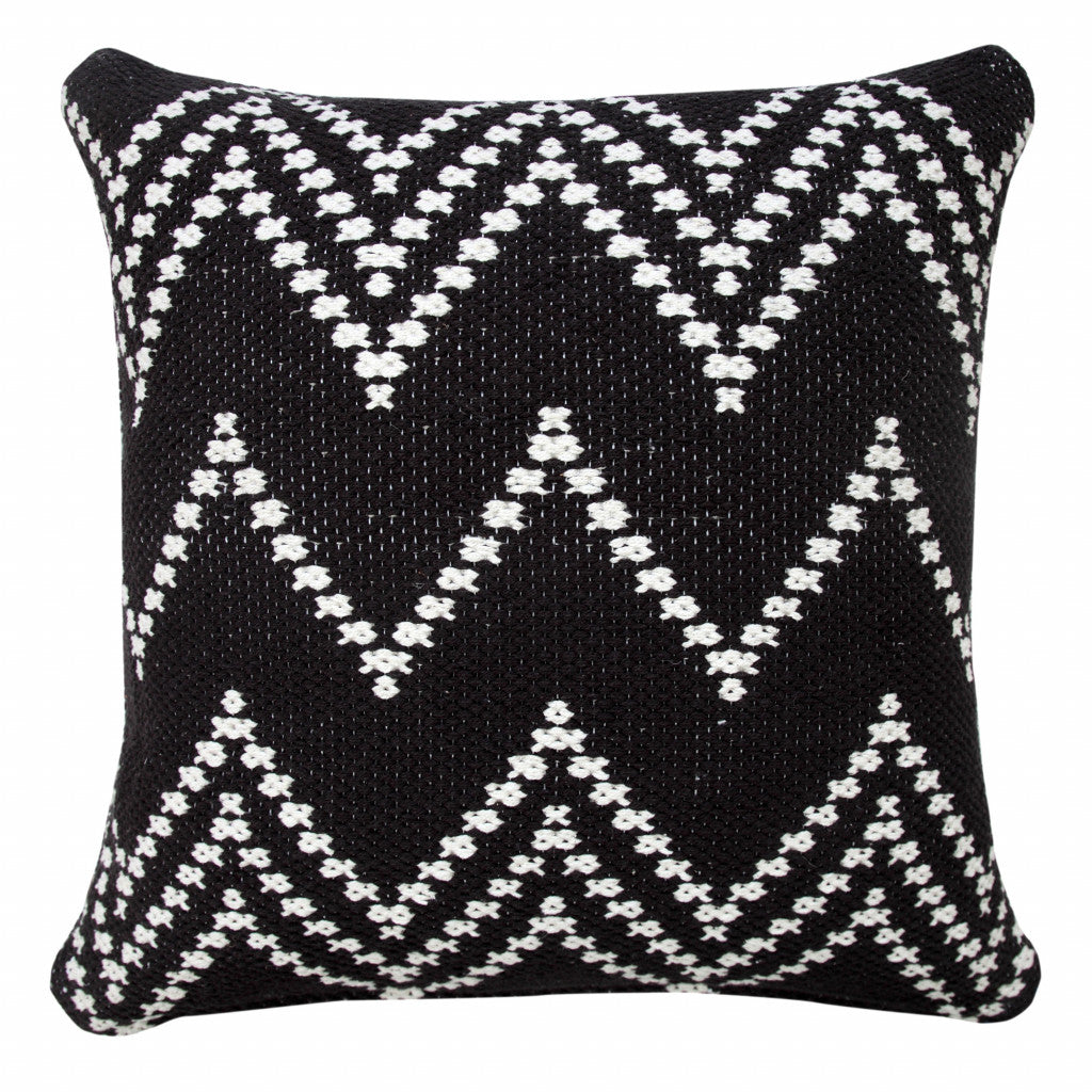Bring a bit of fashion and zip to your space with this eye-catching and comfy 20" x 20" white and black 100% cotton chevron zippered pillow. This white and black hued piece represents quality construction, expertly made from premium 100% cotton that is not only long lasting but super soft to the touch as well. Great to use on its own or mix with other decorations for the perfect look. Decorative pillows are a great way to change up the look and feel of your space easily and quickly. 4" H x 20" W x 20" D