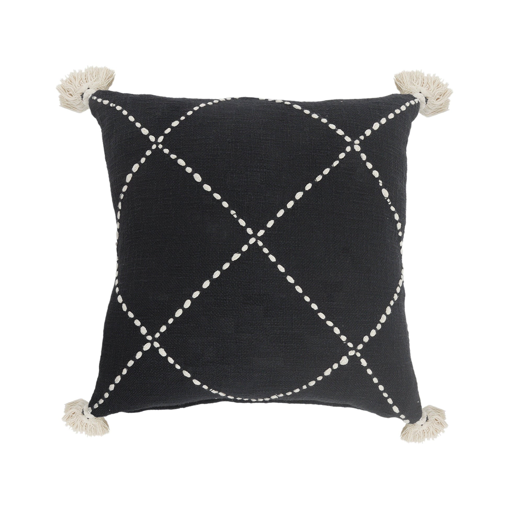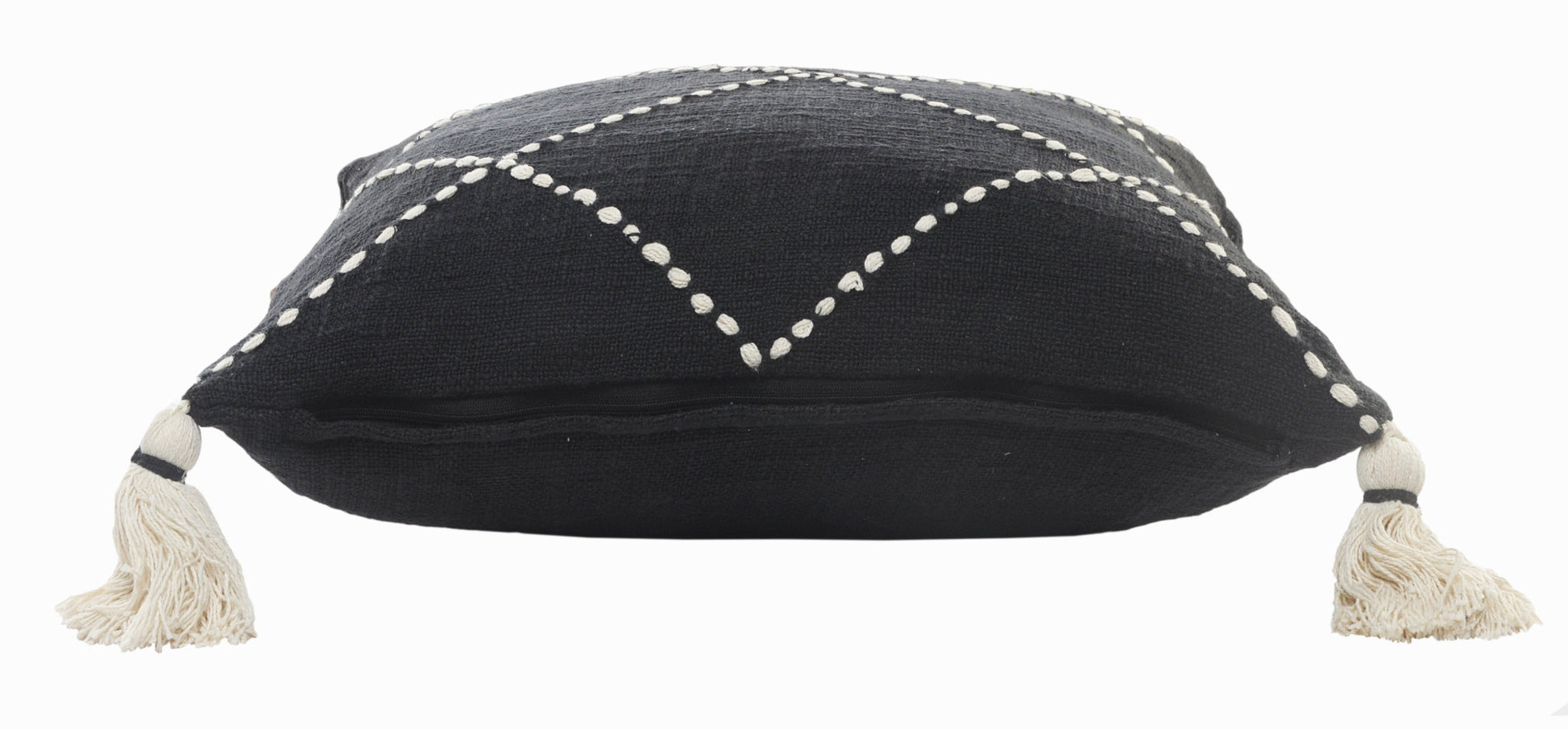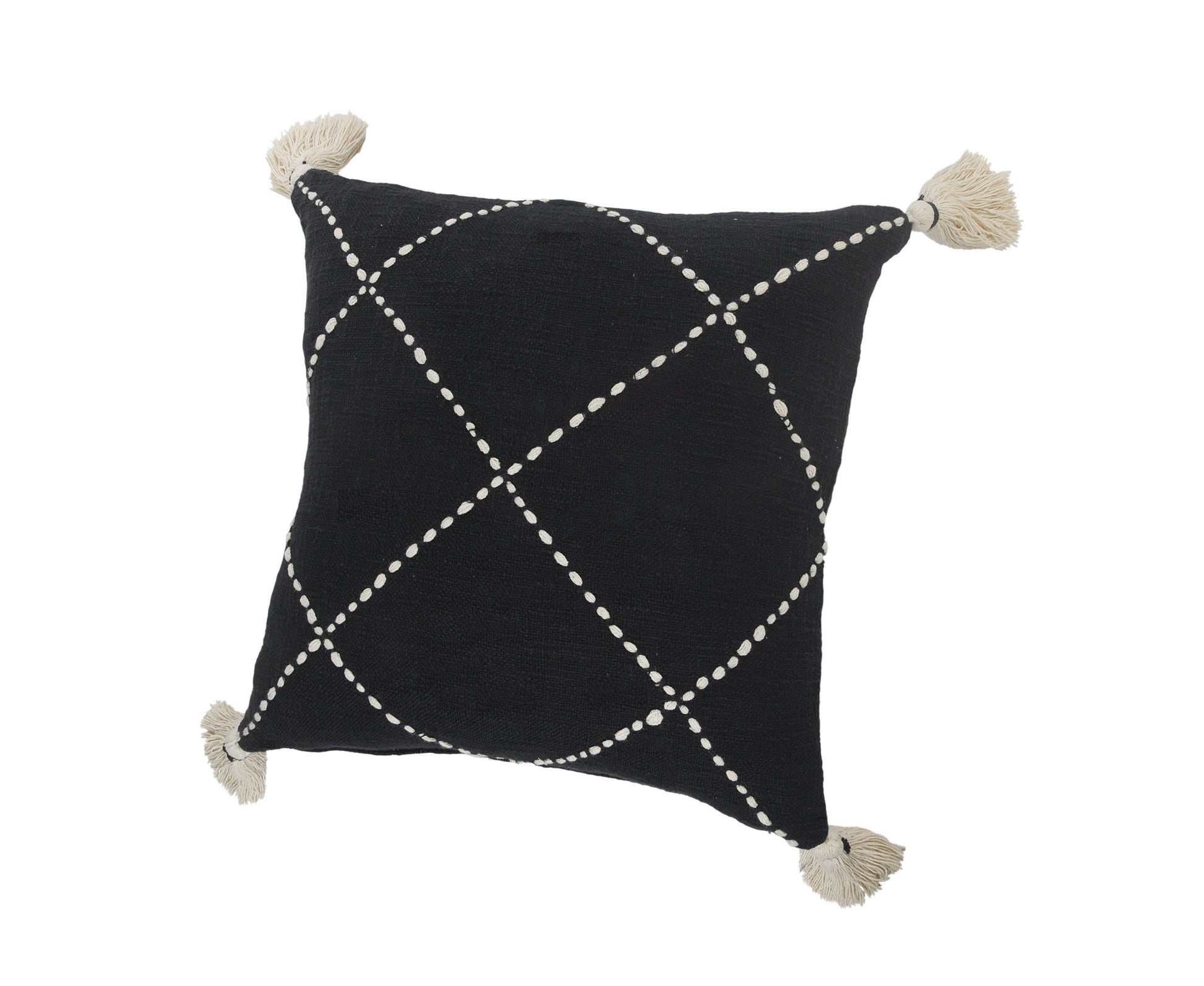 Unique and decorative, this comfortable 20" x 20" white and black 100% cotton geometric zippered pillow will leave a lasting impression. The white and black coloring of the soft and long lasting 100% cotton will add dimension and texture to your space. Decorative throw pillows not only add color and dimension to your space but can be comfy and supportive when you are lounging and cuddling as well. A great decorative accessory for your favorite chair, to accent your sofa, or to use as part of your bed ensemble. 4" H x 20" W x 20" D