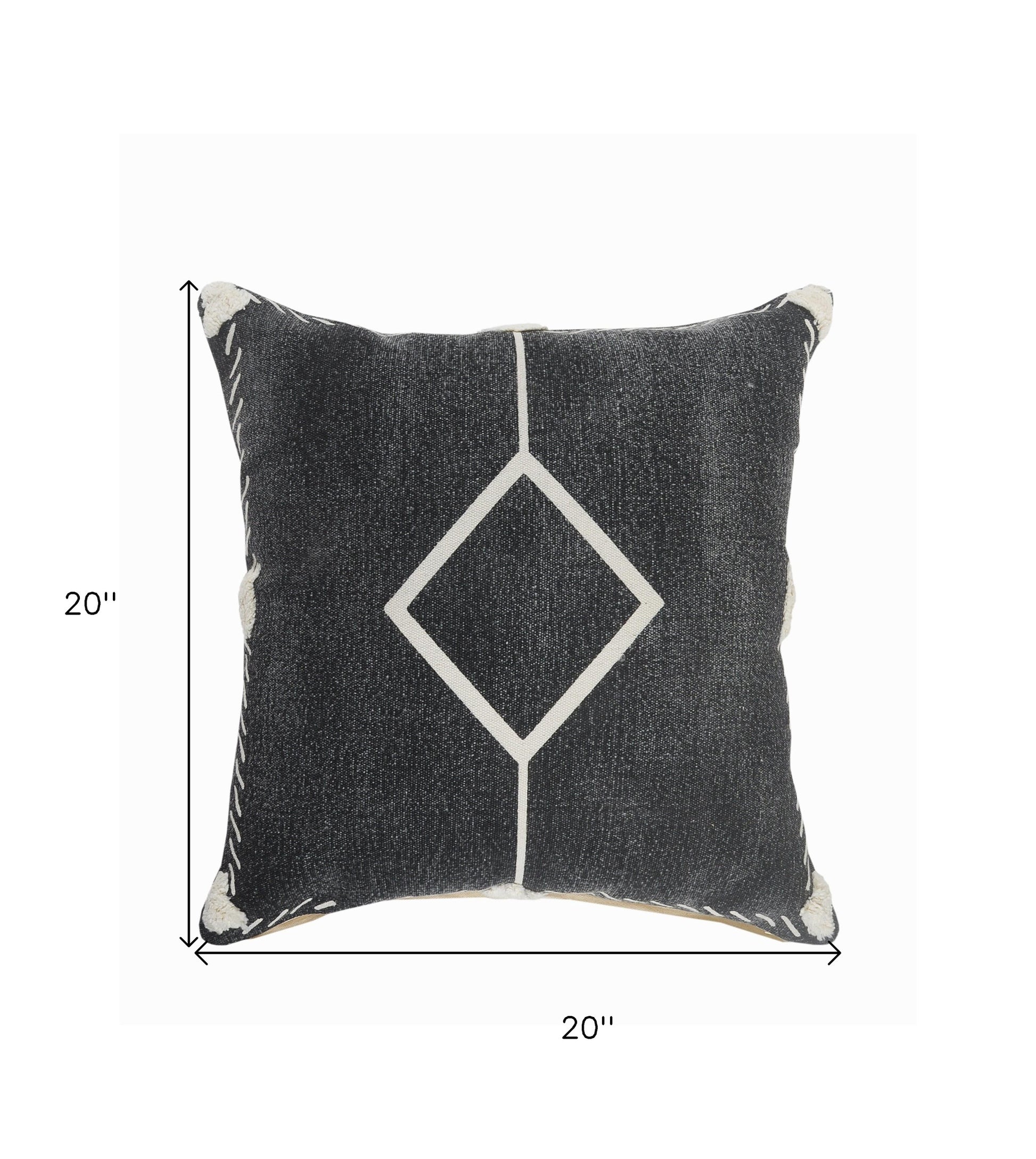 20" X 20" White And Black 100% Cotton Geometric Zippered Pillow