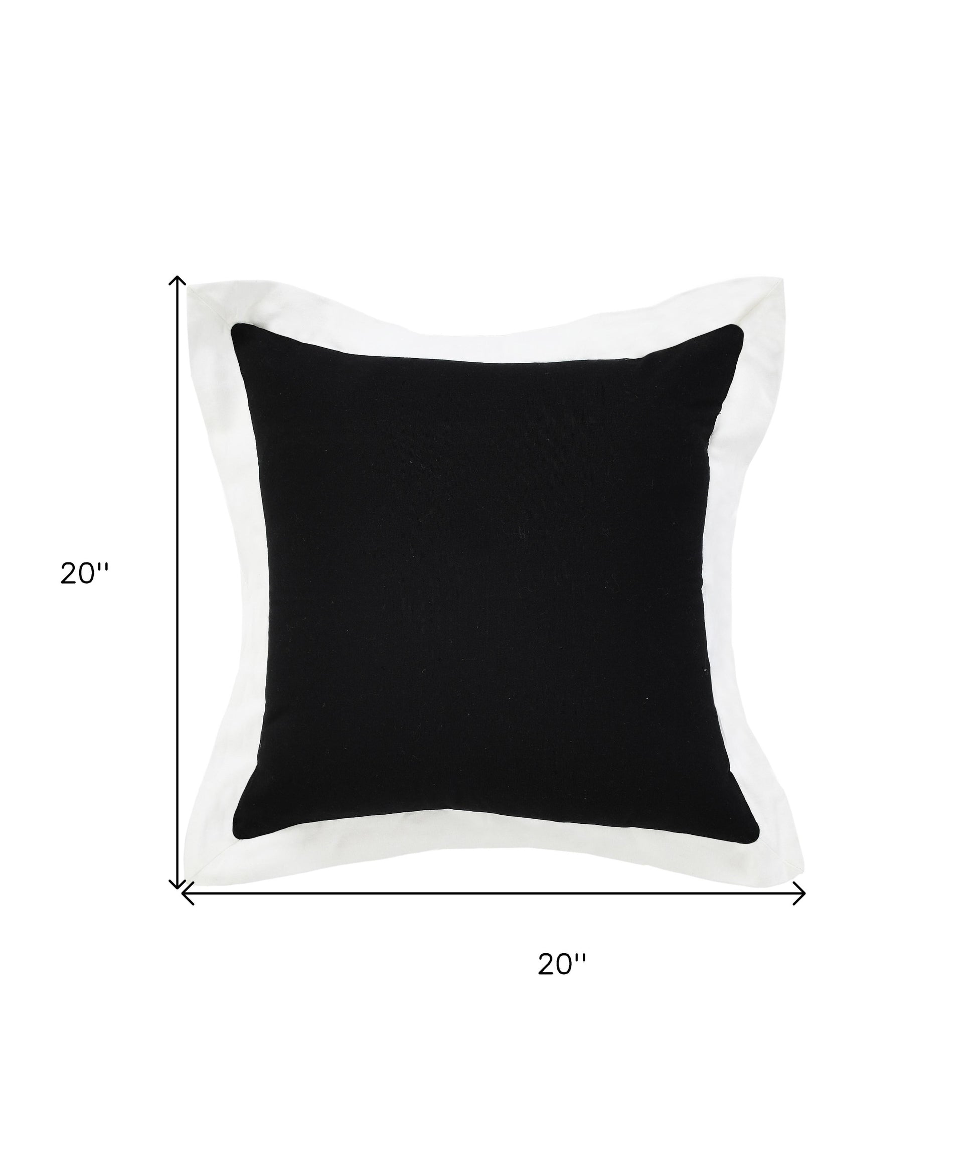 20" X 20" White And Black 100% Cotton Geometric Zippered Pillow