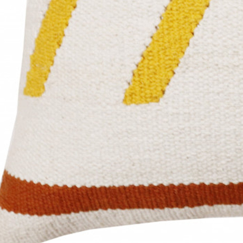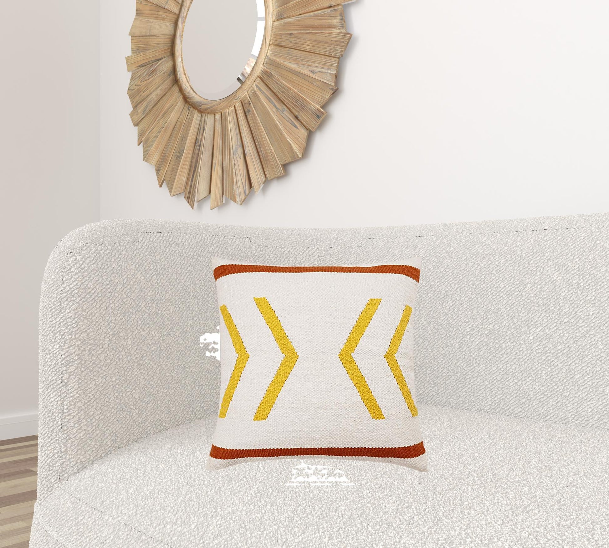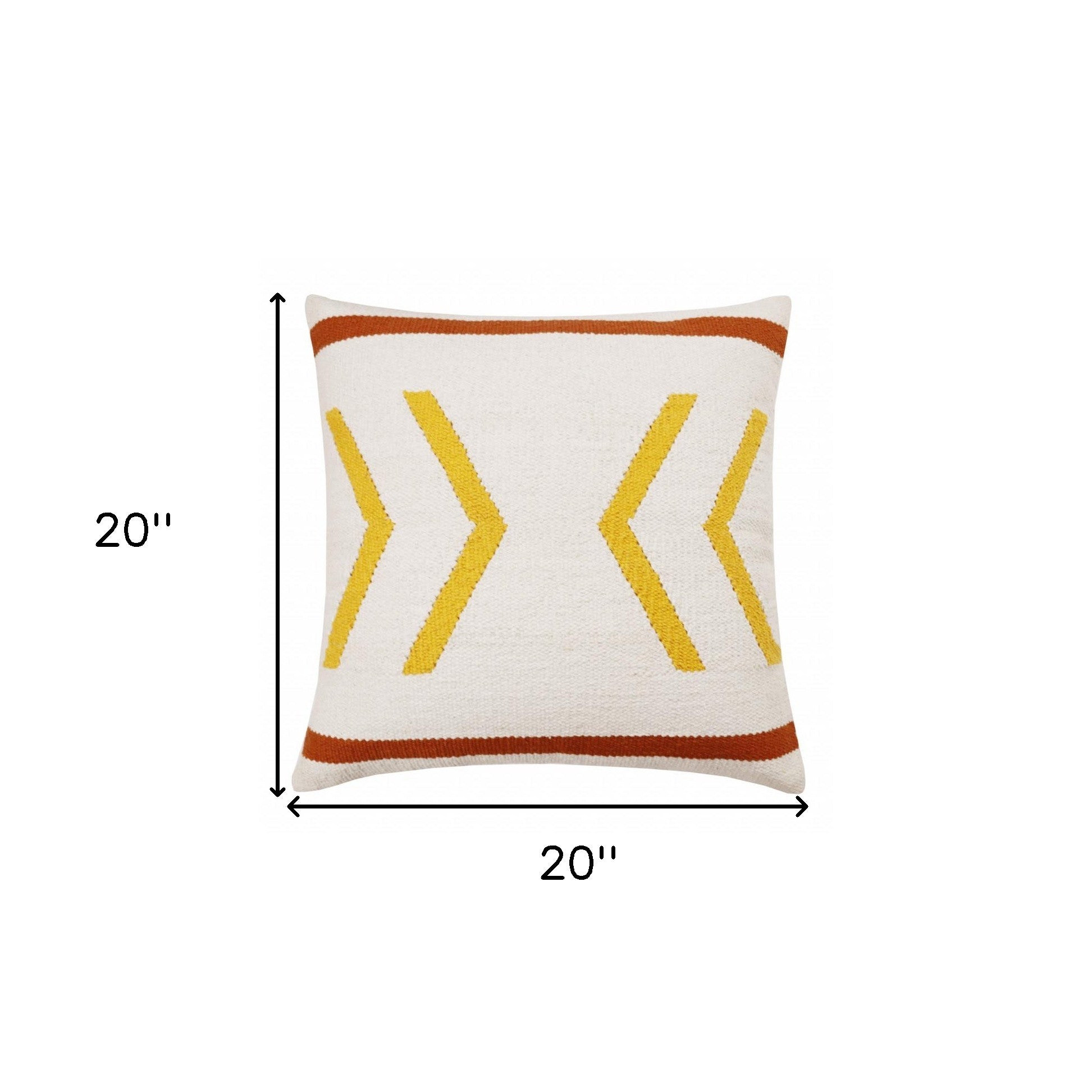 20" X 20" White Yellow And Red Orange 100% Cotton Chevron Zippered Pillow