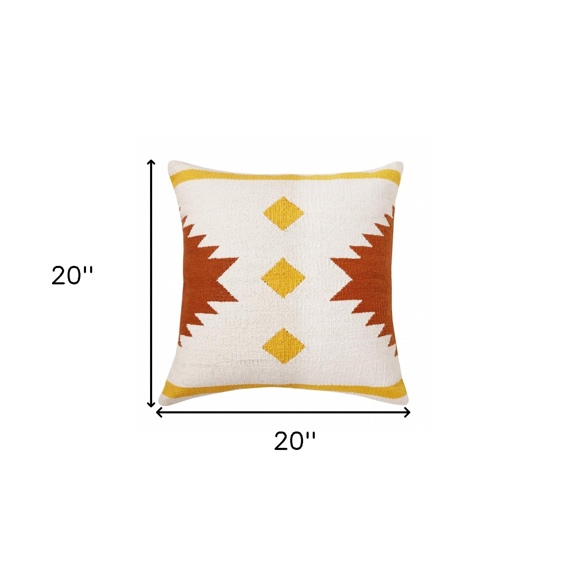 20" X 20" White Yellow And Red Orange 100% Cotton Geometric Zippered Pillow