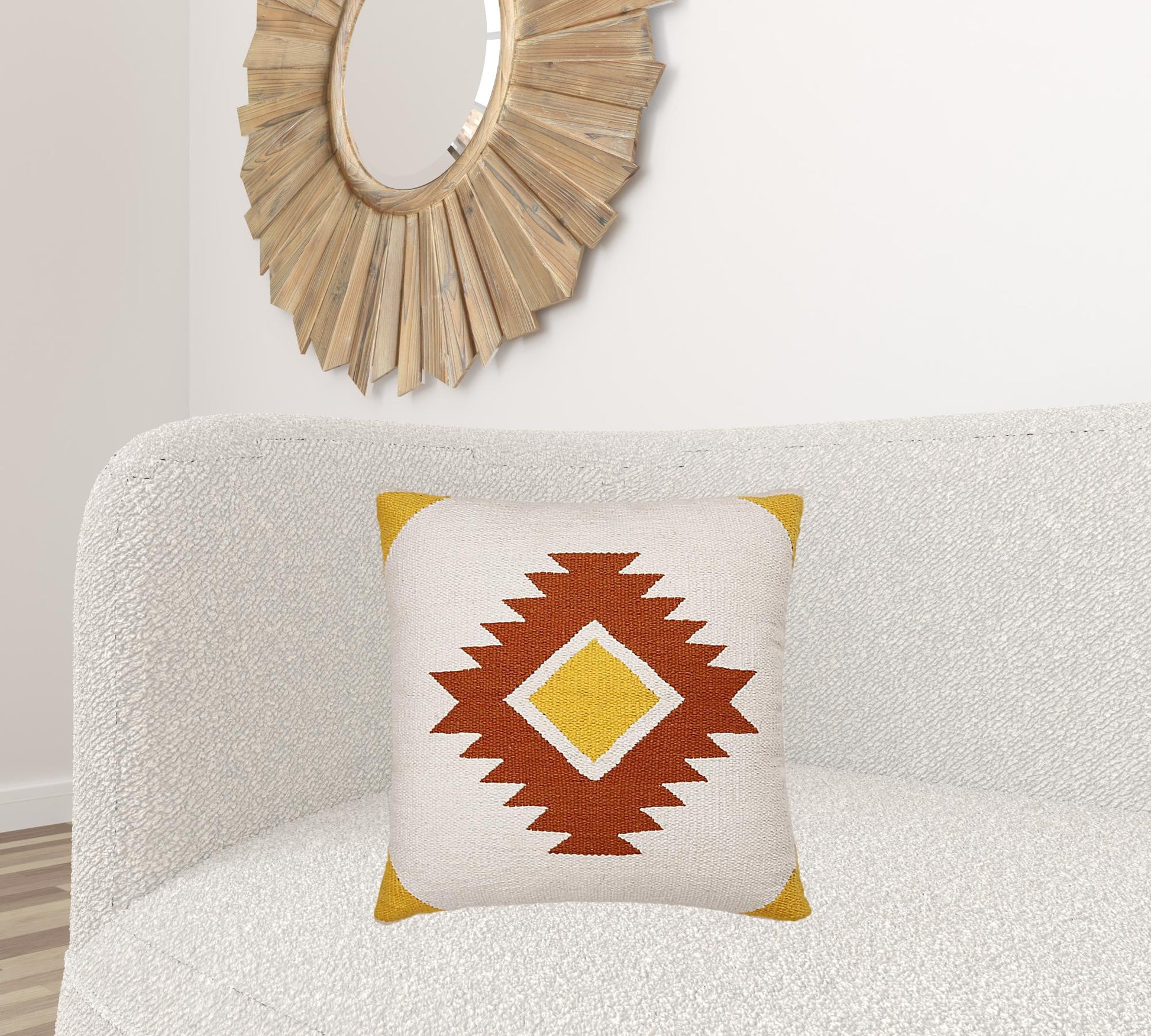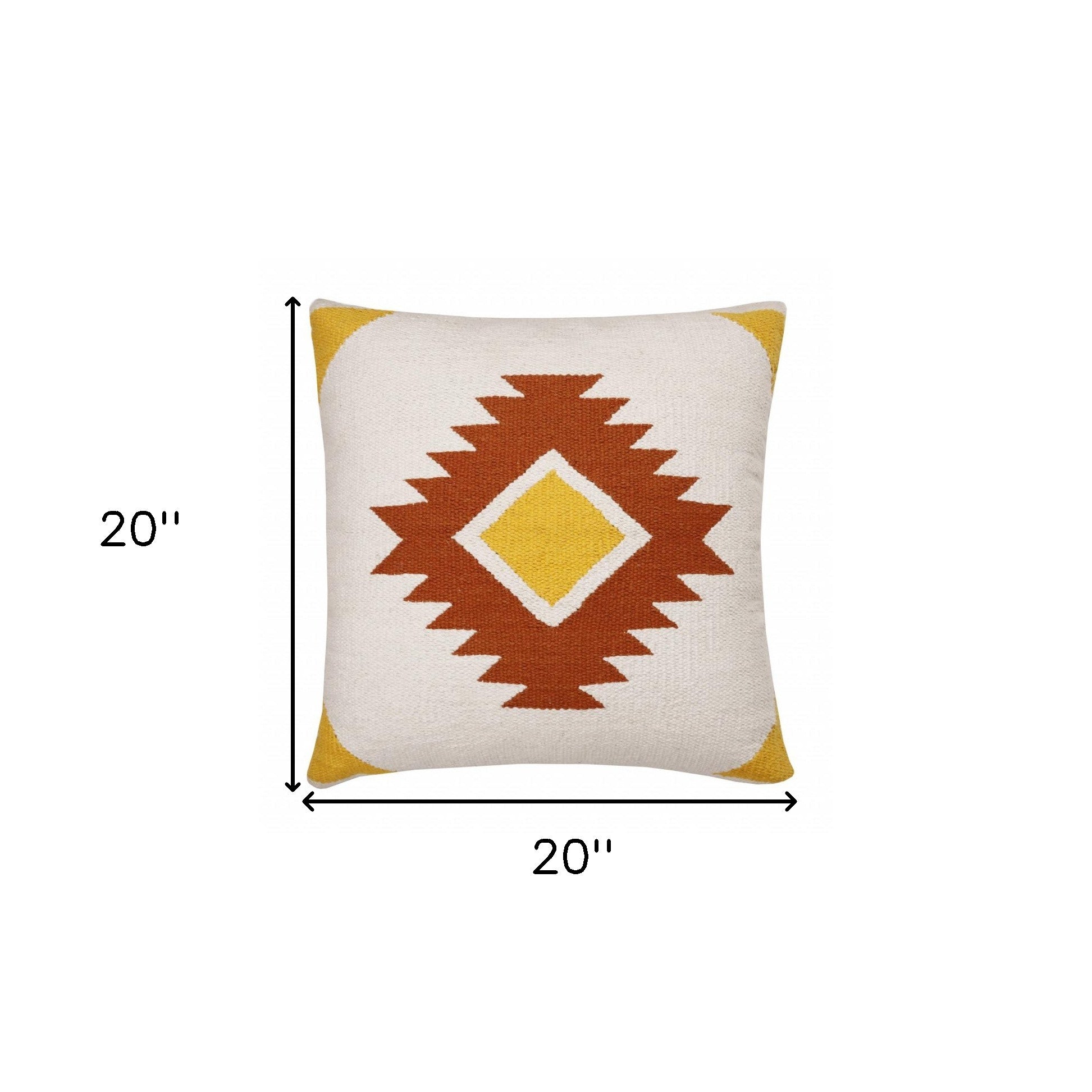 Bring a bit of fashion and zip to your space with this eye-catching and comfy 20" x 20" white yellow and red orange 100% cotton geometric zippered pillow. This white yellow and red orange colored decorative pillow is made from high grade 100% cotton that makes it super soft to the touch and long lasting. For anyone that loves to decorate or accent their space with color and texture. A great decorative accessory for your favorite chair, to accent your sofa, or to use as part of your bed ensemble. 4" H x 20" W x 20" D