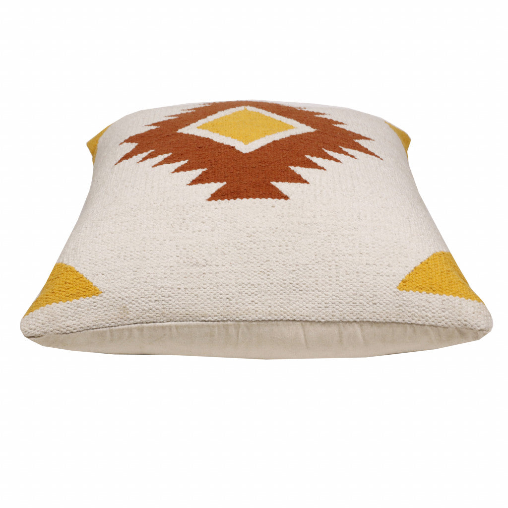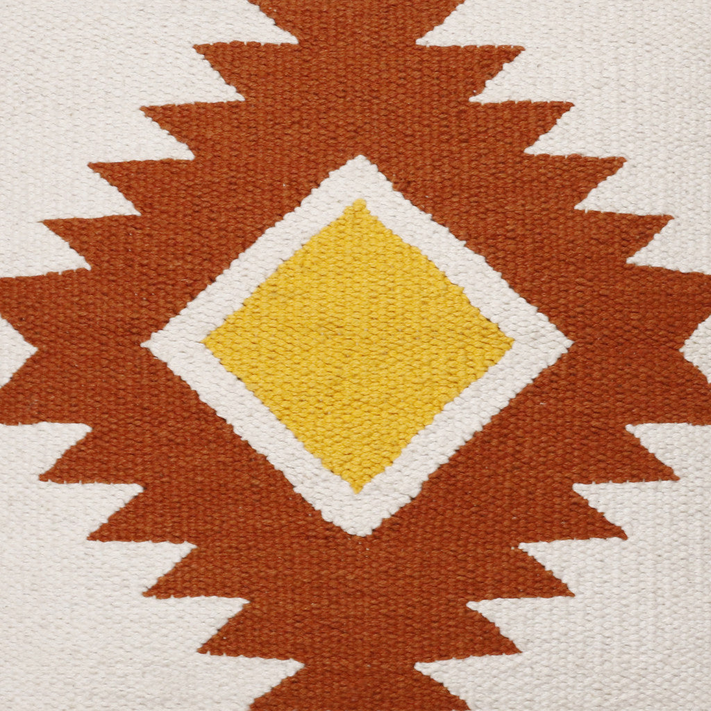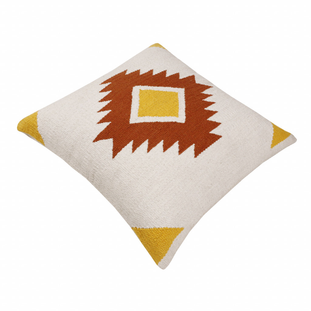 20" X 20" White Yellow And Red Orange 100% Cotton Geometric Zippered Pillow