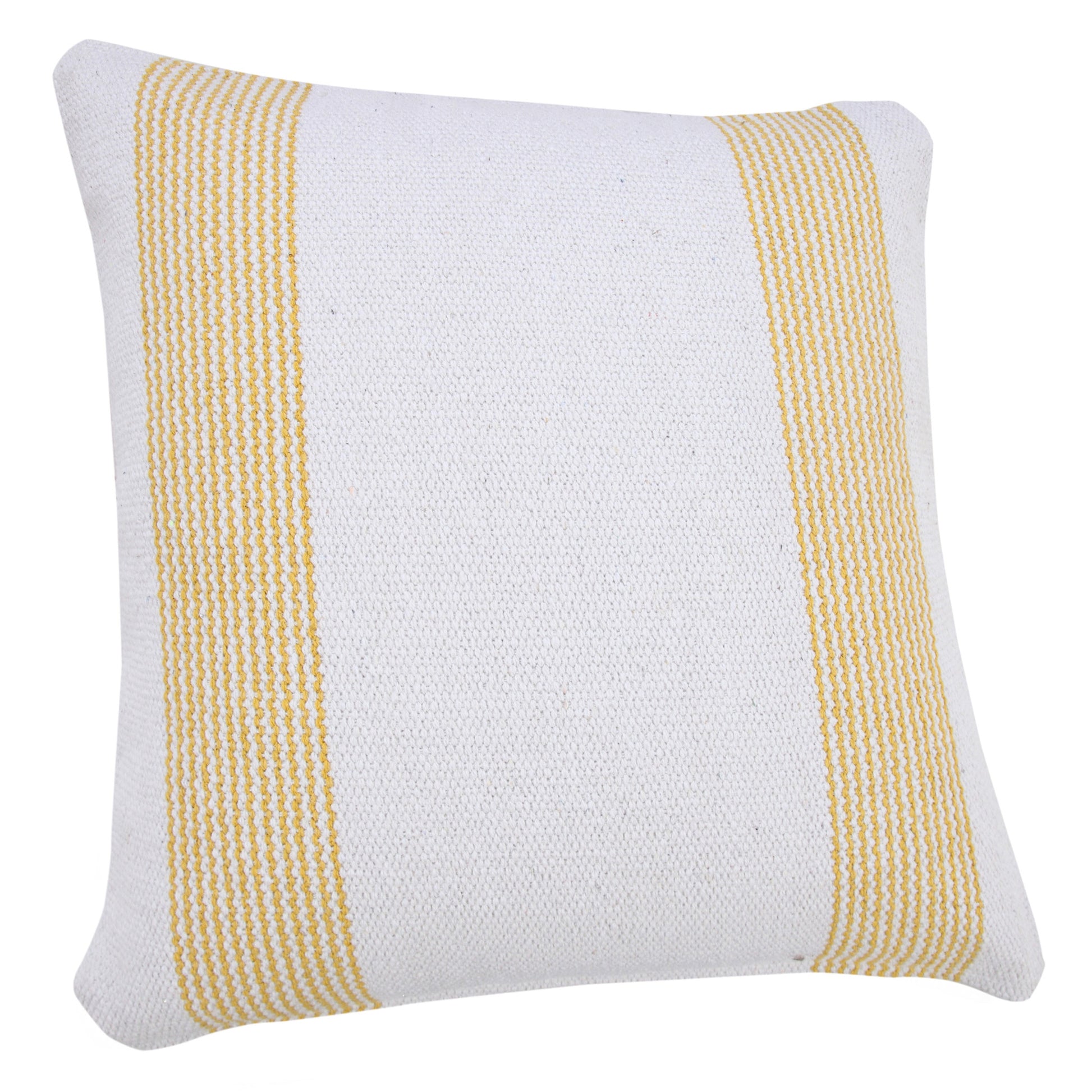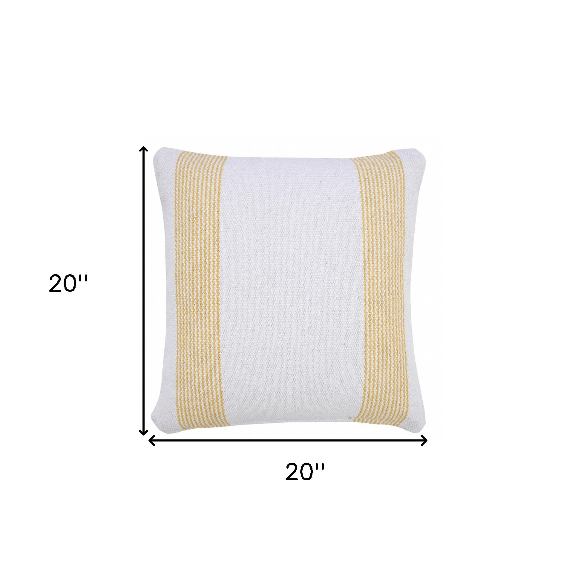 20" X 20" Yellow And White 100% Cotton Geometric Zippered Pillow
