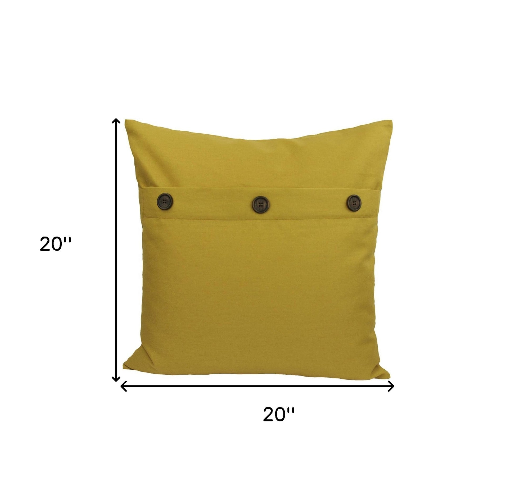 20" X 20" Yellow Linen Blend Zippered Pillow With Buttons
