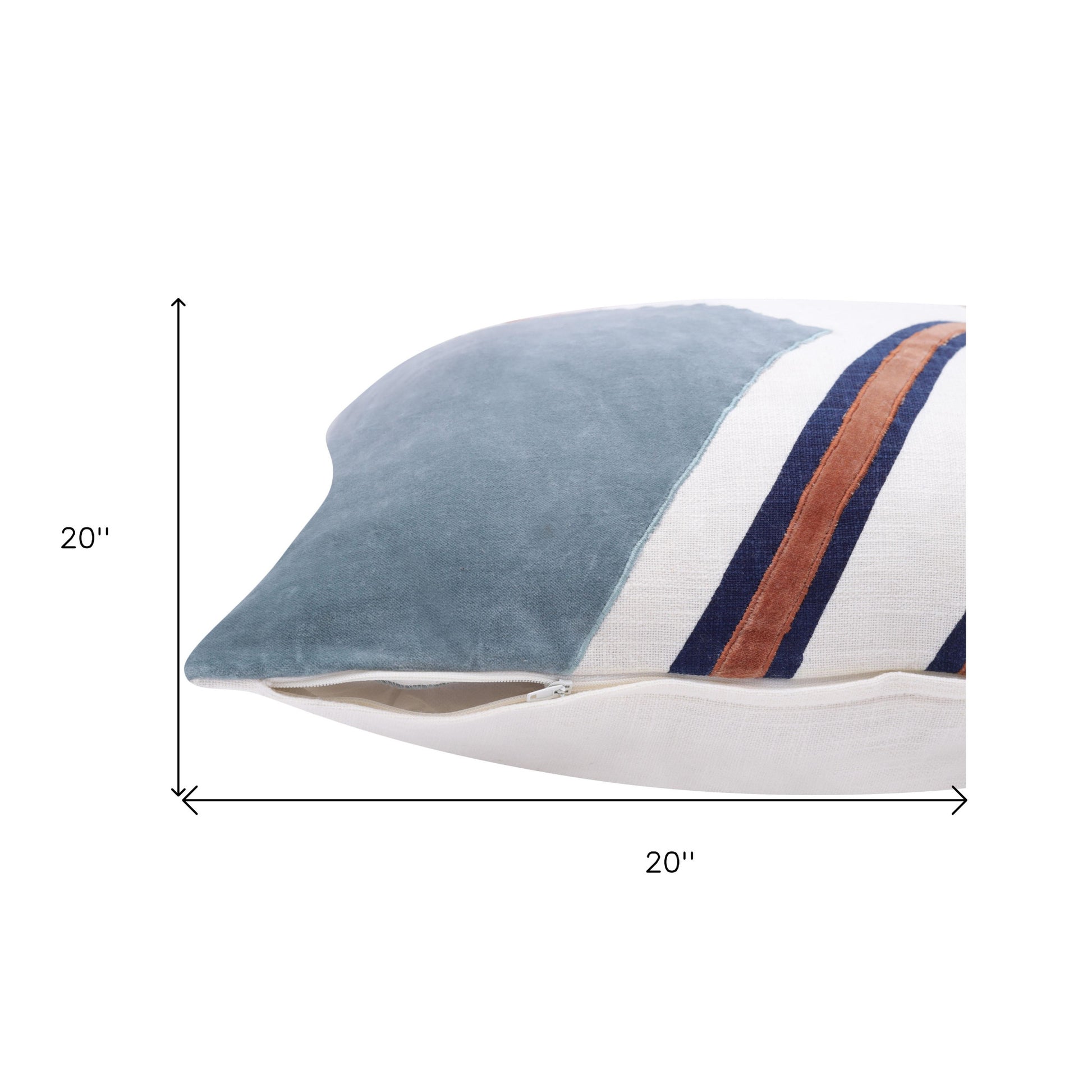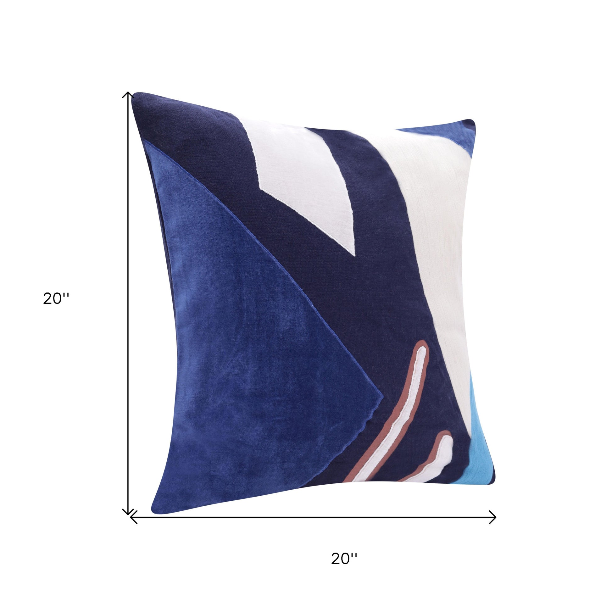 20" X 20" Cobalt Blue And Navy 100% Cotton Abstract Zippered Pillow