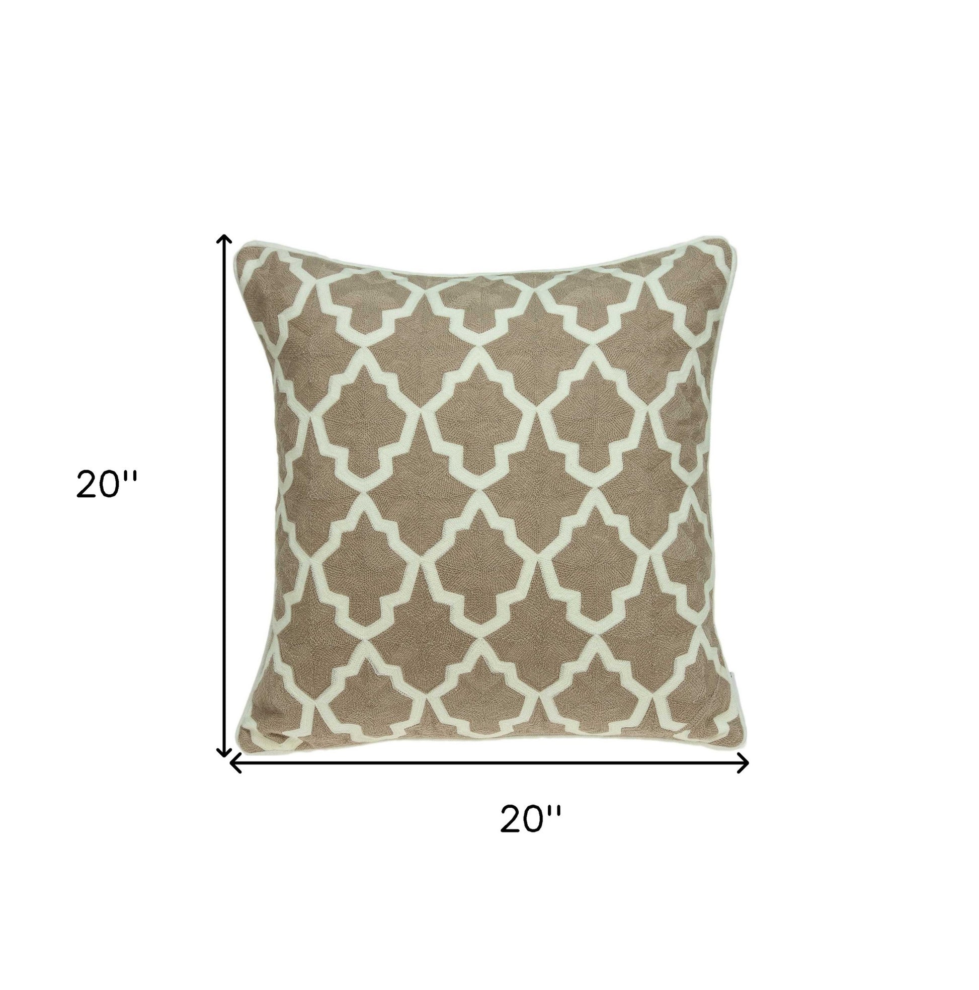 20" X 7" X 20" Transitional Beige And White Pillow Cover With Poly Insert