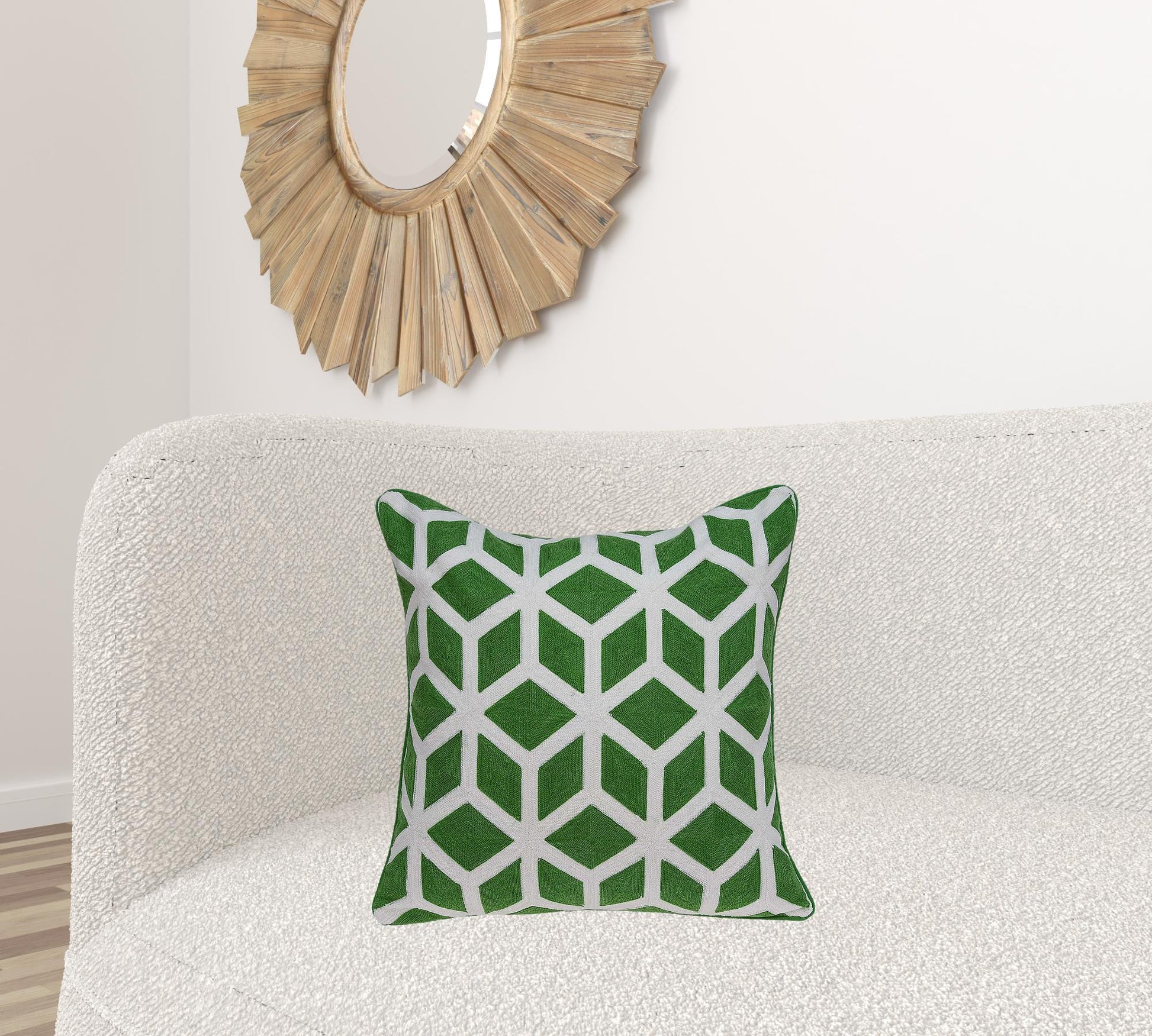 20" X 7" X 20" Transitional Green And White Pillow Cover With Poly Insert