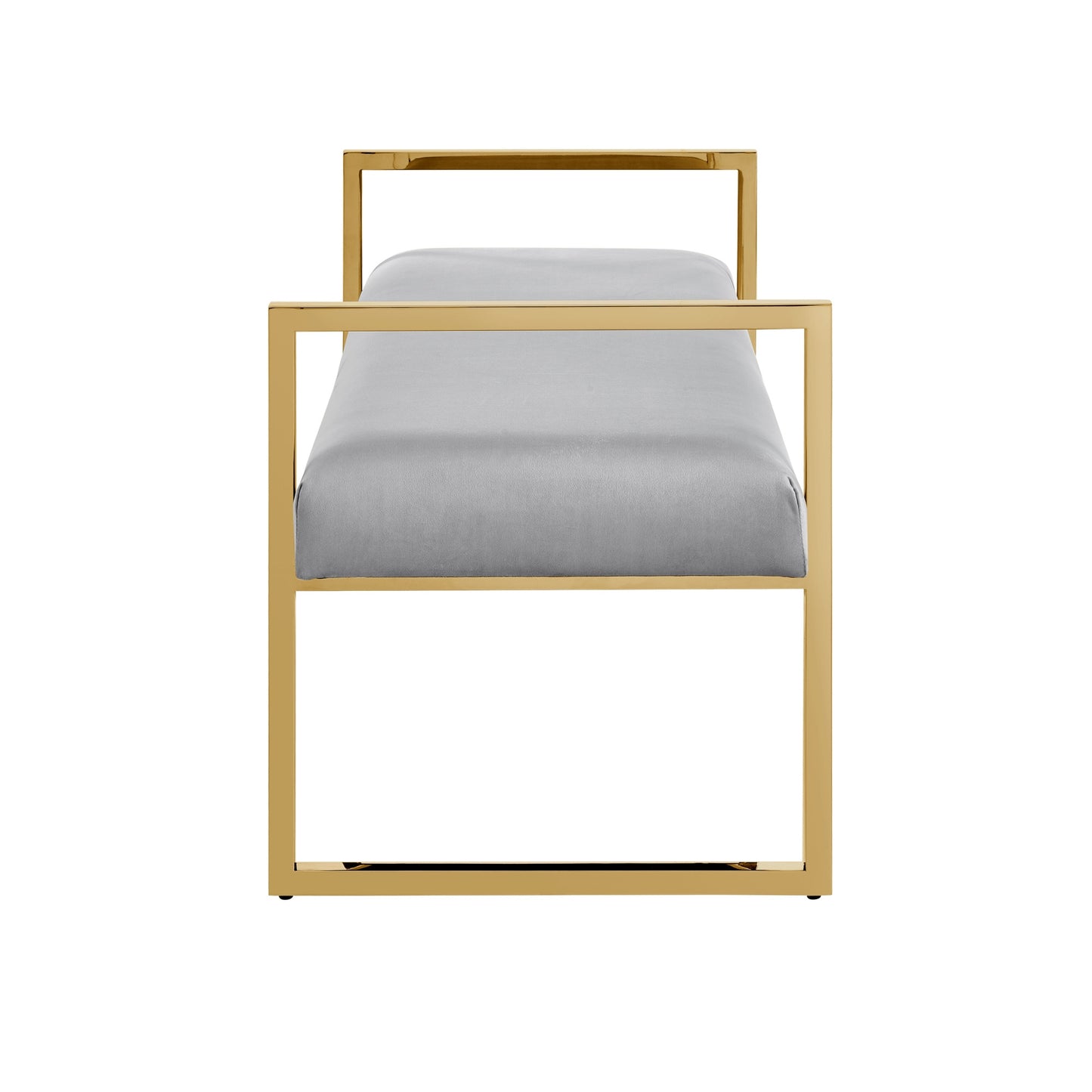 Add a good looking decorative accent to your space that is also practical for seating. The black upholstery top of this bench is a nice contrast to the high quality, silver steel of the base. Expertly upholstered with padding in a soft solid color velvet, this bench is as comfortable as it is good looking. Arms anchor this bench on either side for your comfort stability. Adding this bench to the end of your bed is a great idea to help you get ready in the morning. Easy to blend into most any room, a bench is a way to add a good looking accent to your space that can also be practical and useful. . 23-inch H x 48-inch W x 20.5-inch D