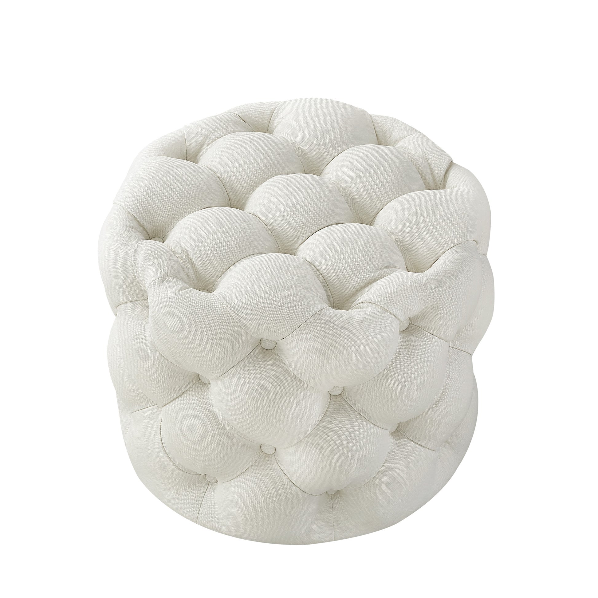 Get ready to relax with this 21" blush velvet tufted round ottoman. Expertly upholstered with padding in a soft solid color velvet, this ottoman is as comfortable as it is good looking. Fine detailing such as nailhead trim give this ottoman a rich and elegant look Easy to blend into most any room, a ottoman is a way to add a good looking accent to your space that can also be practical and useful. . 17" H x 20.5" W x 20.5" D