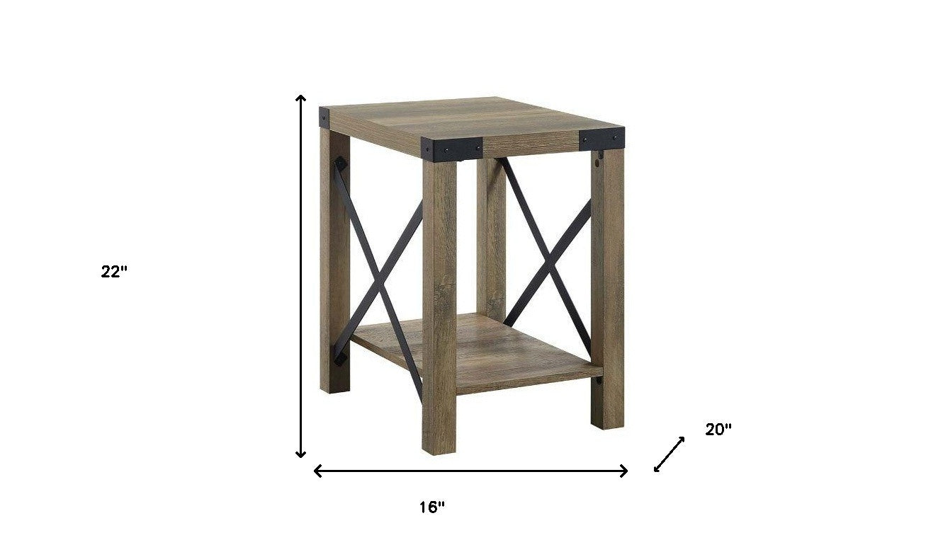 Distinctive in style the 22" rustic oak manufactured wood rectangular end table with shelf radiates a versatile charm. This table is made from manufactured wood in a rustic oak color throughout the base and top. Help to keep your space organized with the included single shelf. A great accent on either side of the sofa or bed, this adorable end or side table is just what you need. This versatile table is a great accent for most any room. 22" H x 16" W x 20" D