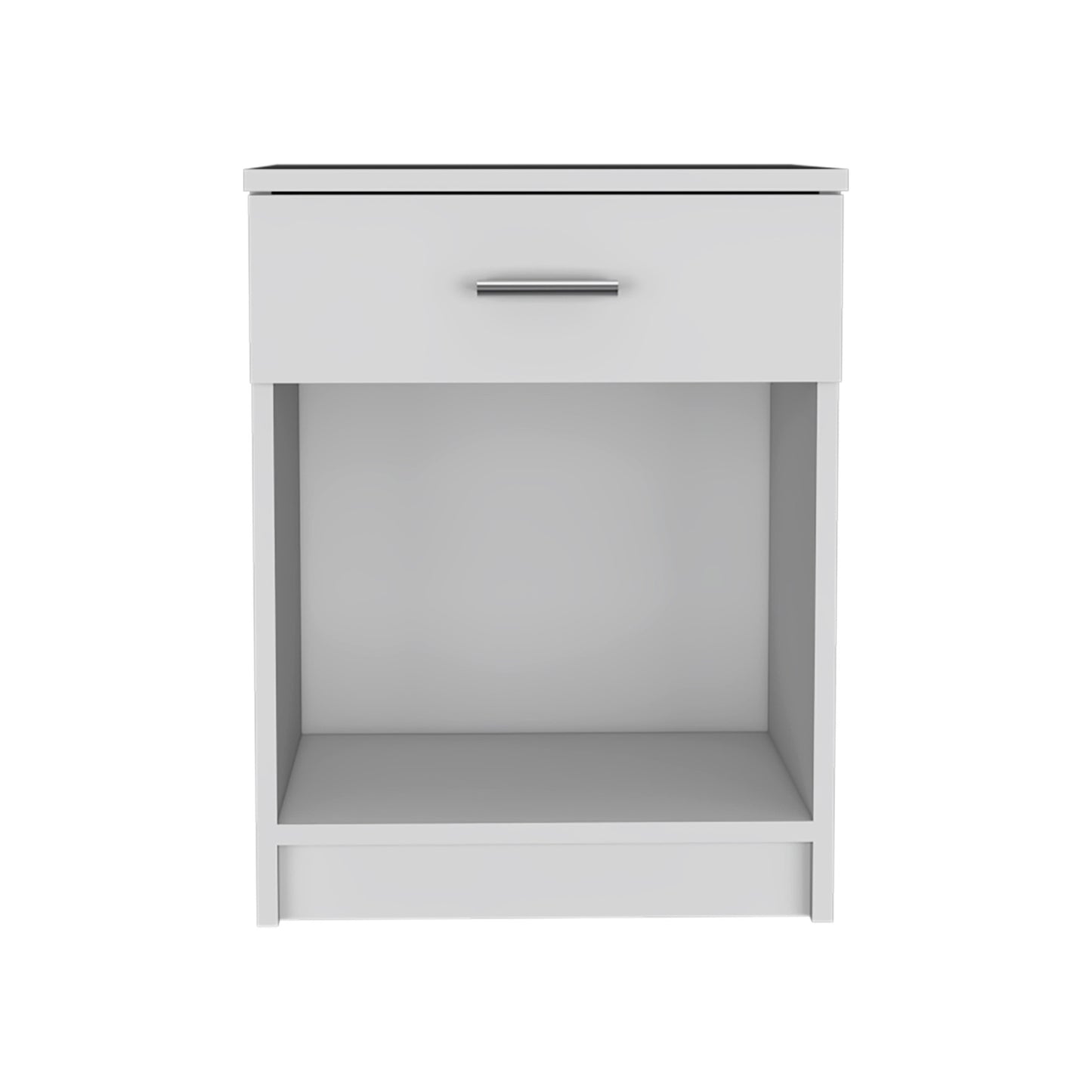 Good looking design and practical styling meet to form this 22-inch white one drawer nightstand. Made of high quality manufactured wood that is built to last. The easy open drawer allows you hidden storage to keep your essentials close at hand. An easy-access shelf gives you additional storage and display space. The unsung hero of the bedroom, this nightstand is perfect for keeping a glass of water, lamp, alarm clock, jewelry, and more, close by and easily accessible. Look no further than this nightstand to accommodate all your needs and upgrade the style of your bedroom. 21.73-inch H x 16.69-inch W x 13.58-inch D