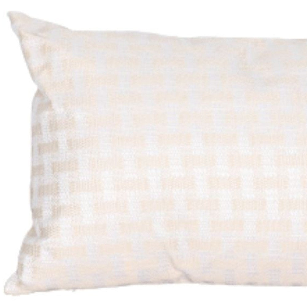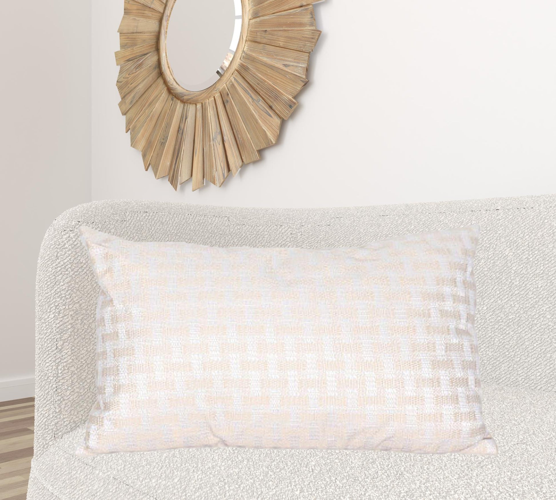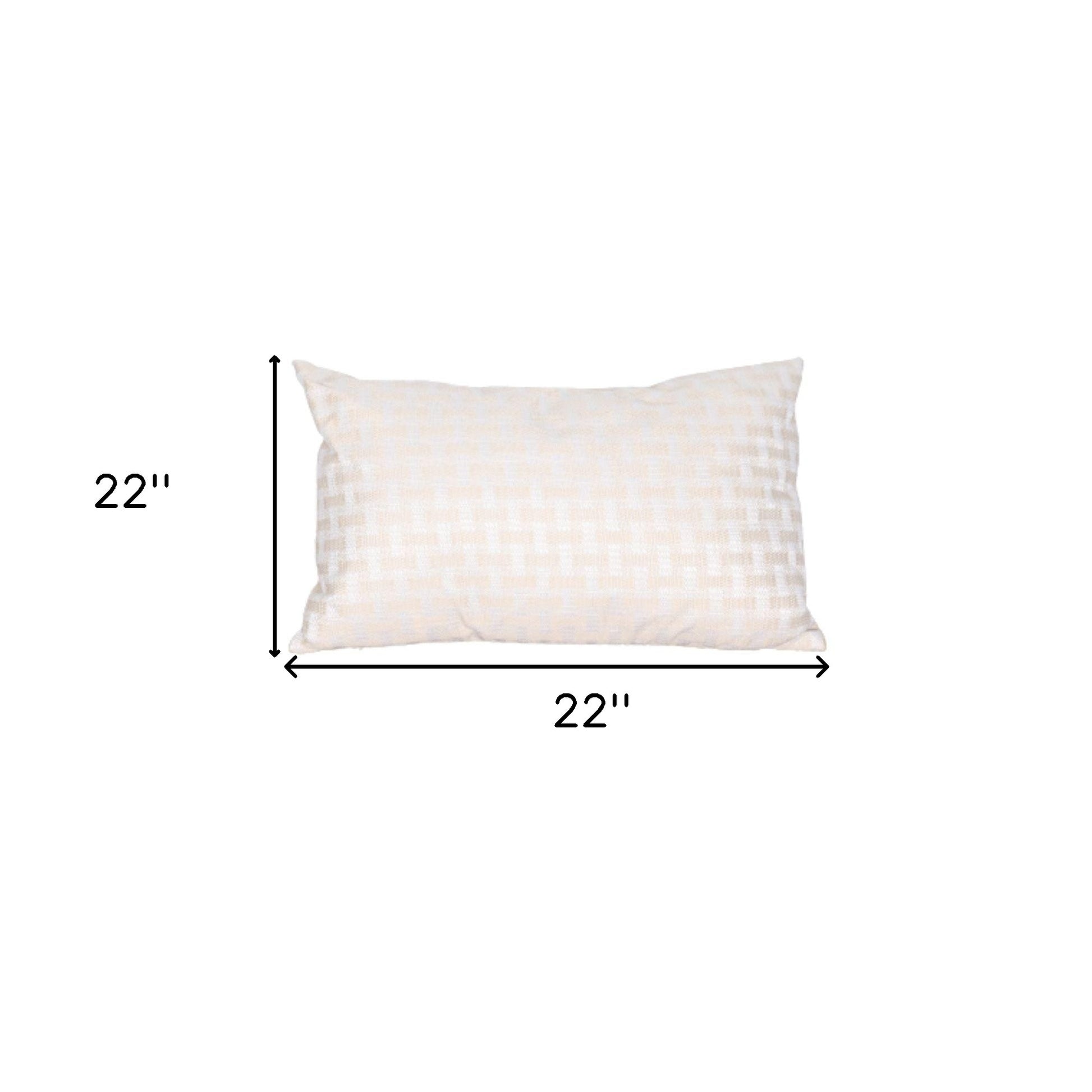22" X 22" Beige and White Checkered Polyester Zippered Pillow