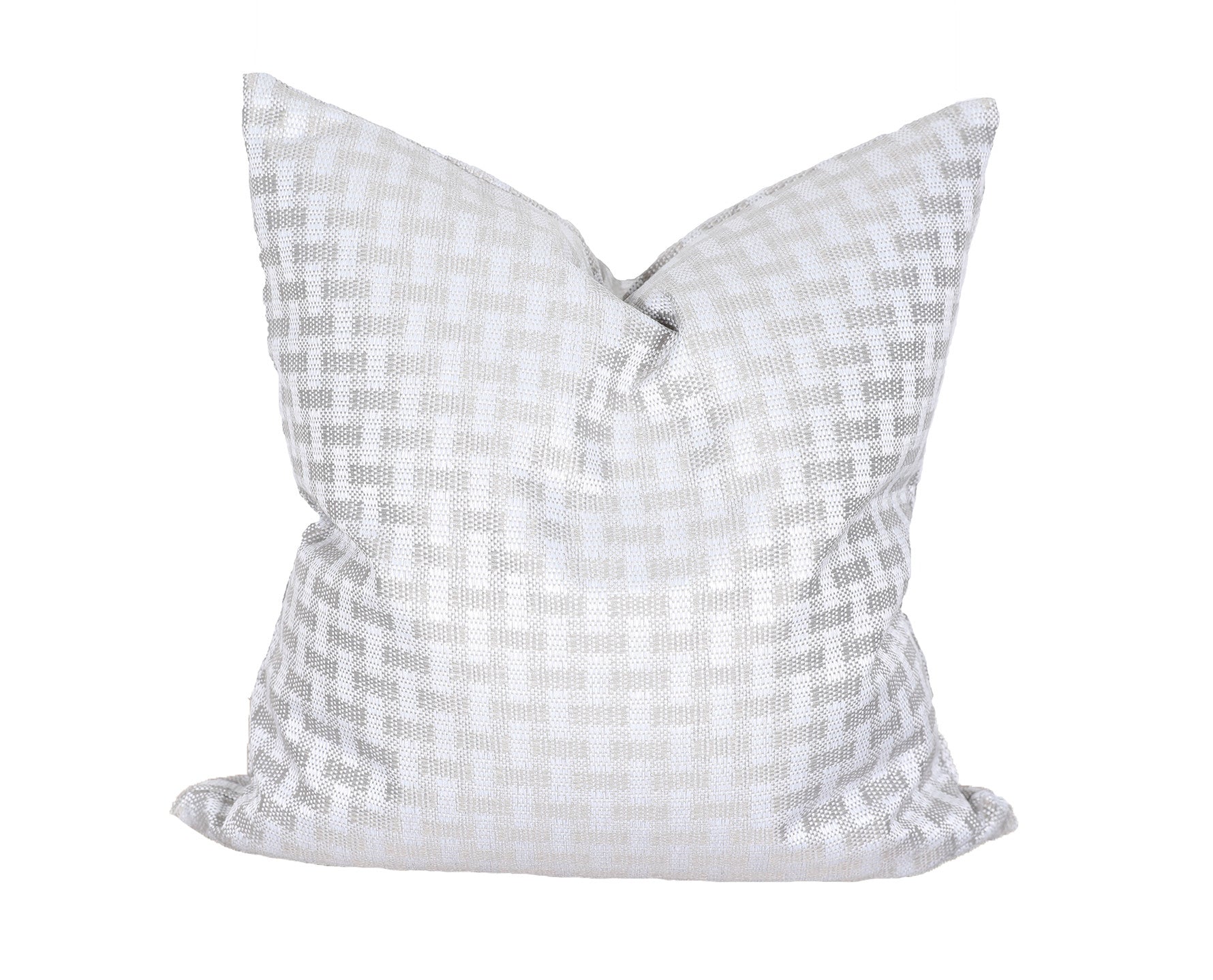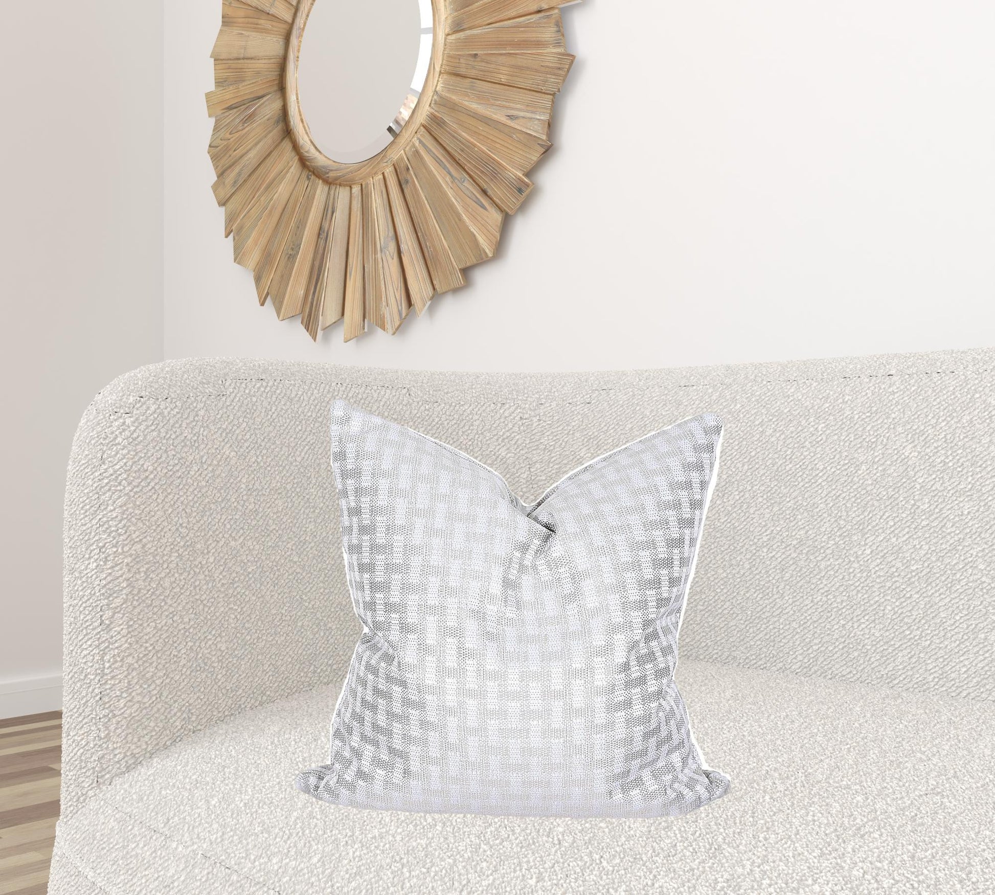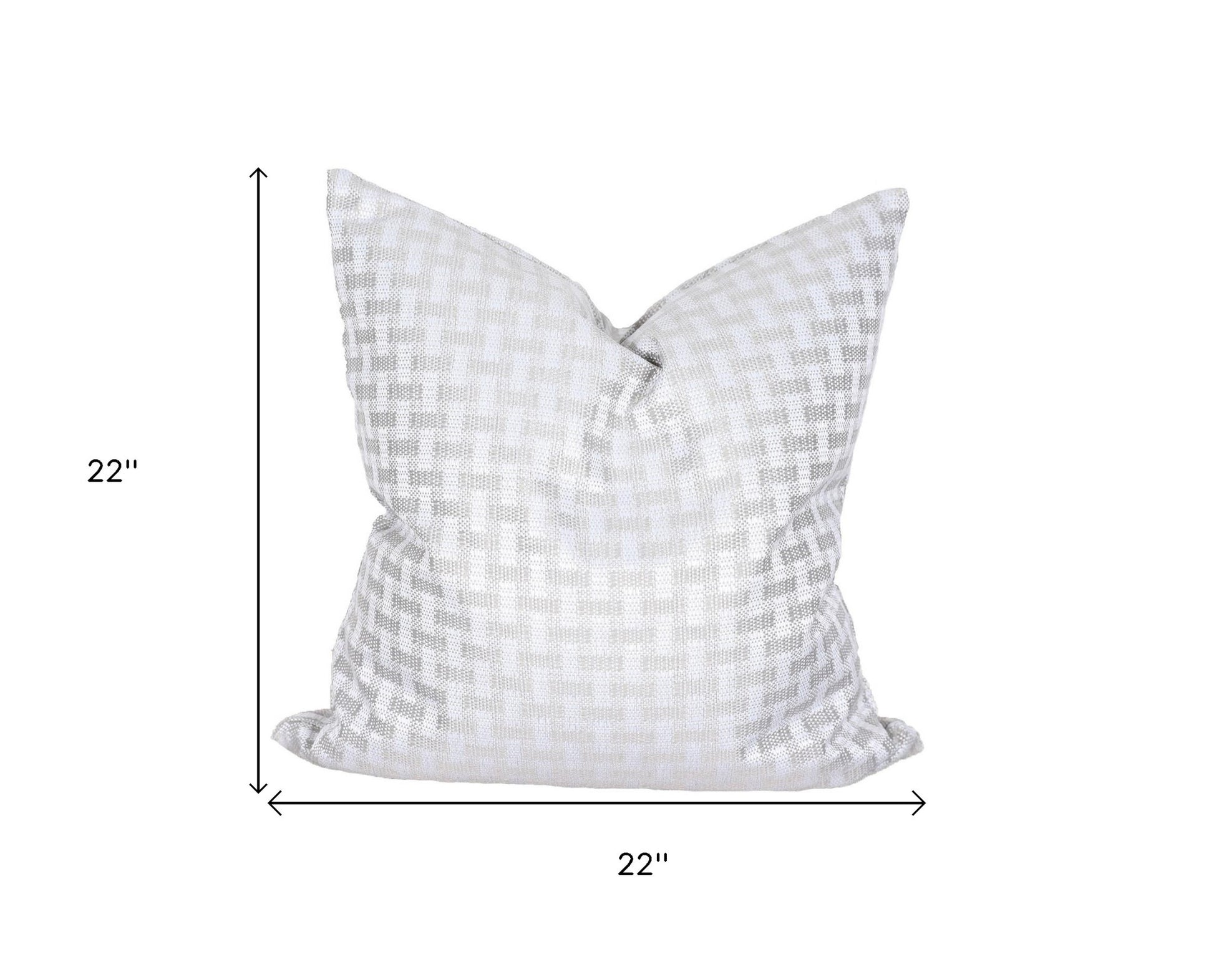 22" X 22" Gray and White Checkered Polyester Zippered Pillow