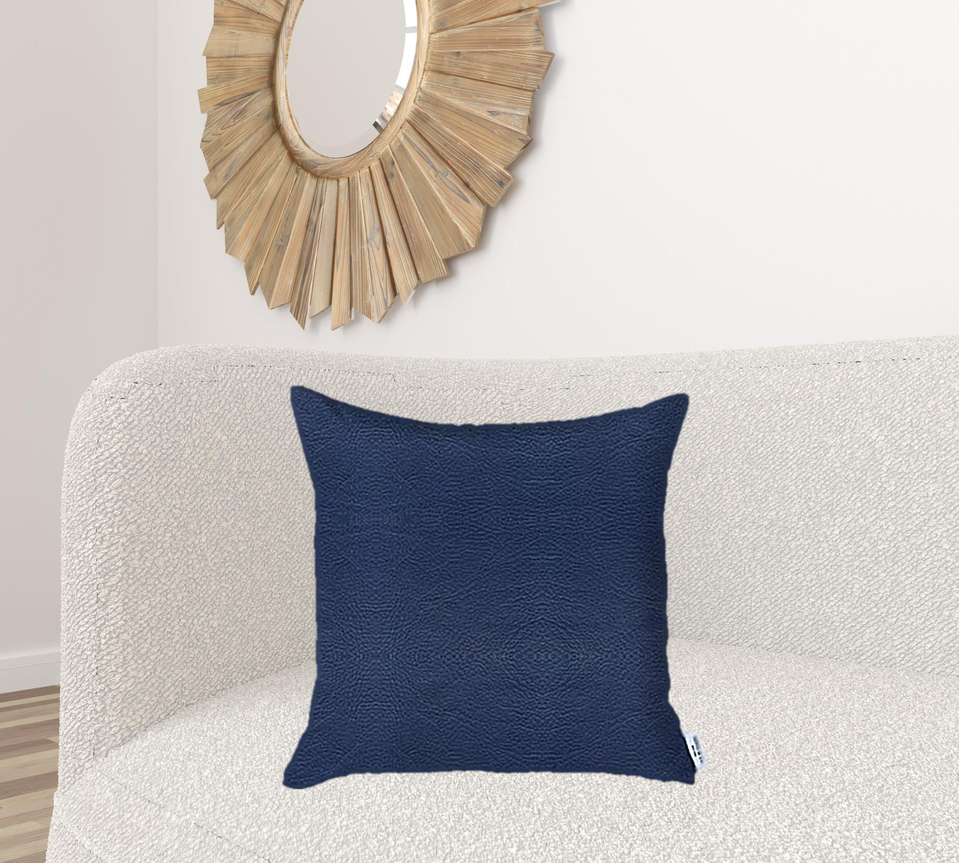 22" X 22" Navy Blue Solid Color Handmade Faux Leather Throw Pillow Cover