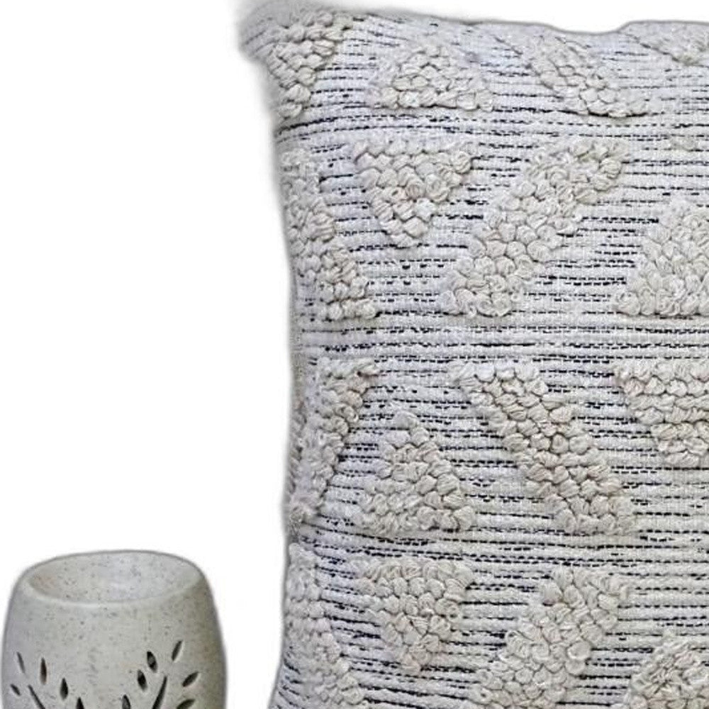 This 22" x 22" off white geometric zippered handmade cotton blend throw pillow with tassels will add a beautiful decorative accent to your decor. Charming decorative tassels give this design texture along with a hand-crafted look and feel. For anyone that loves to decorate or accent their space with color and texture. Decorative pillows are a great way to change up the look and feel of your space easily and quickly. 10" H x 22" W x 22" D