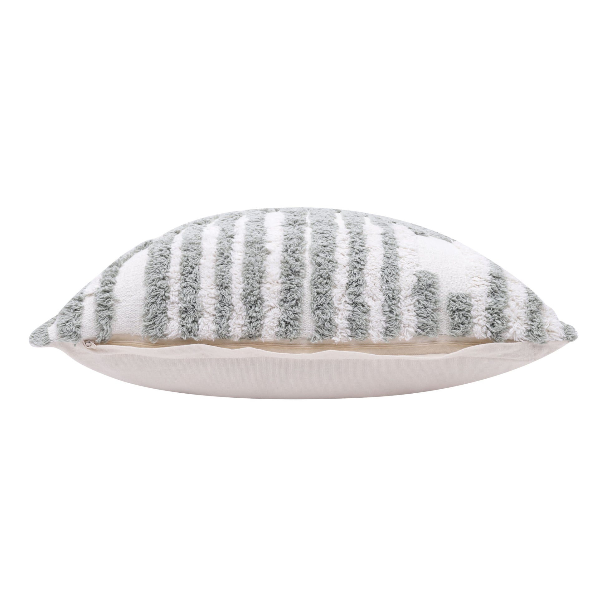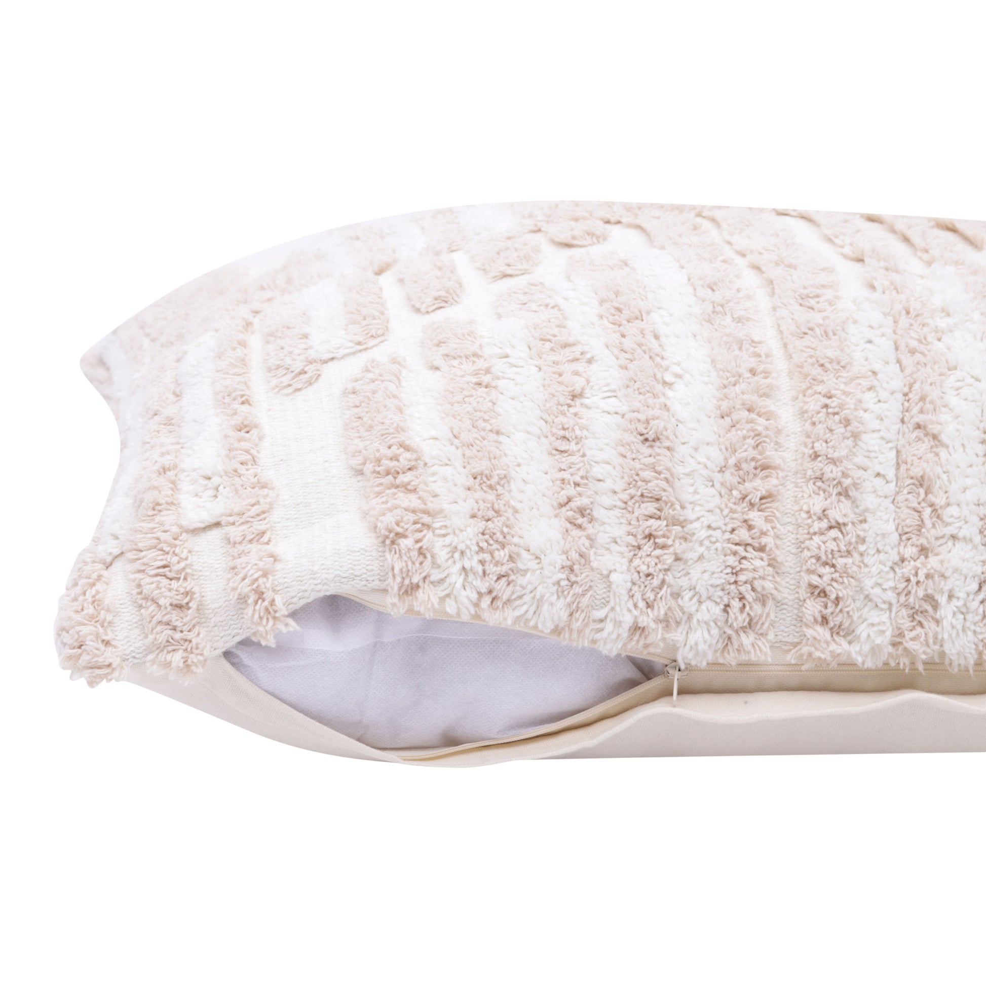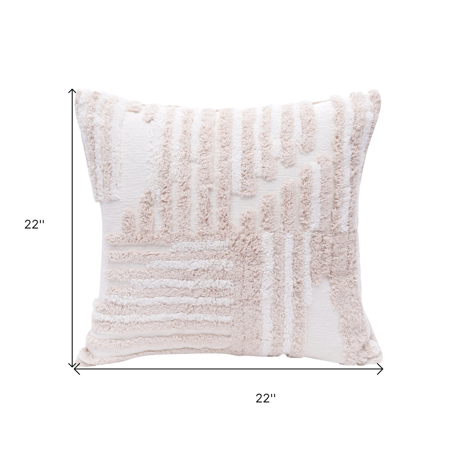 Add an air of fashion to your room and rejuvenate the space with this cute and fashionable 22" x 22" cream and white 100% cotton striped zippered pillow. The cream and white coloring of the soft and long lasting 100% cotton will add dimension and texture to your space. Decorative throw pillows not only add color and dimension to your space but can be comfy and supportive when you are lounging and cuddling as well. A great decorative accessory for your favorite chair, to accent your sofa, or to use as part of your bed ensemble. 4" H x 22" W x 22" D